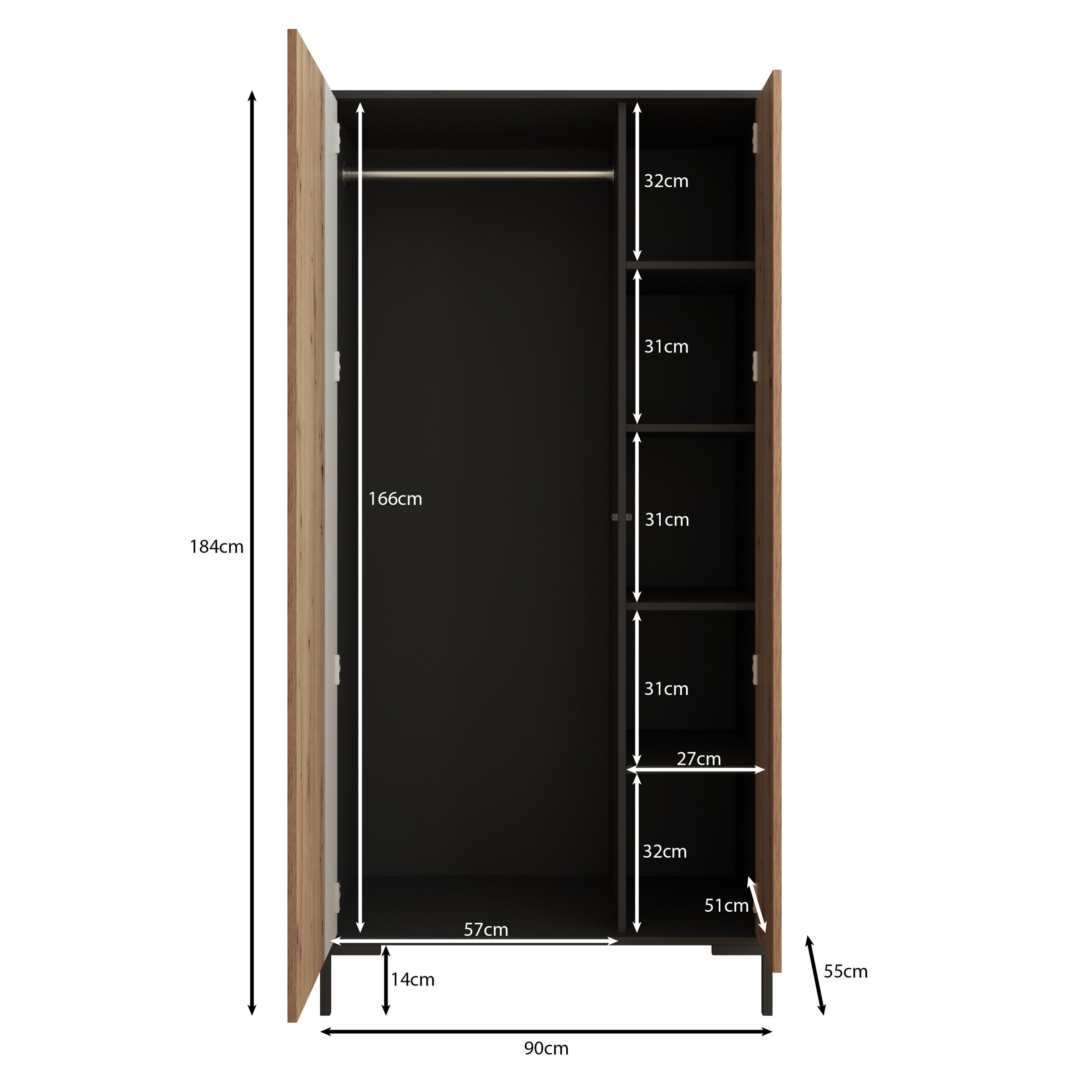 Meubella - Kledingkast Molina - Eiken - 90 cm