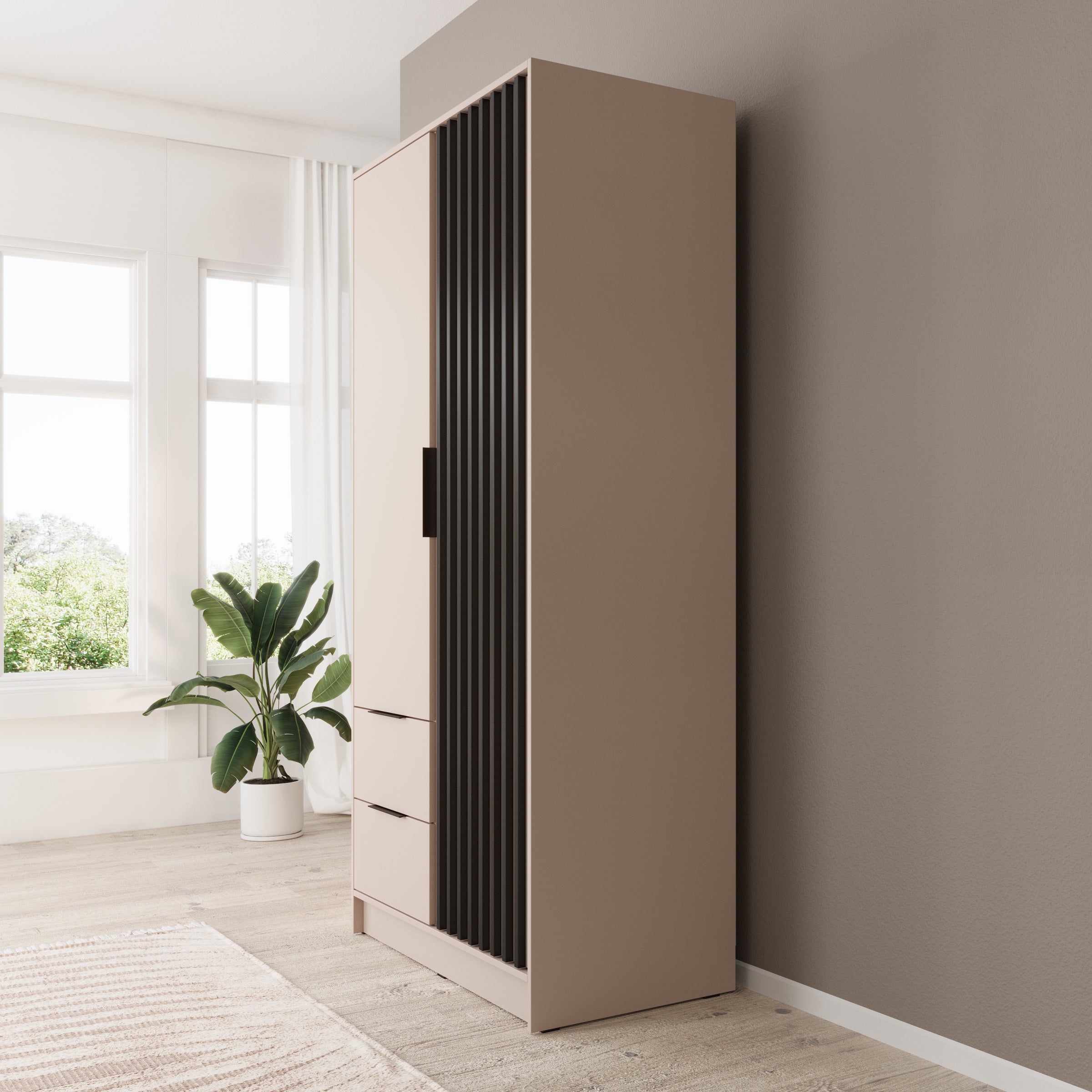 Meubella - Kledingkast Nairobi - Beige - Zwart - 105 cm