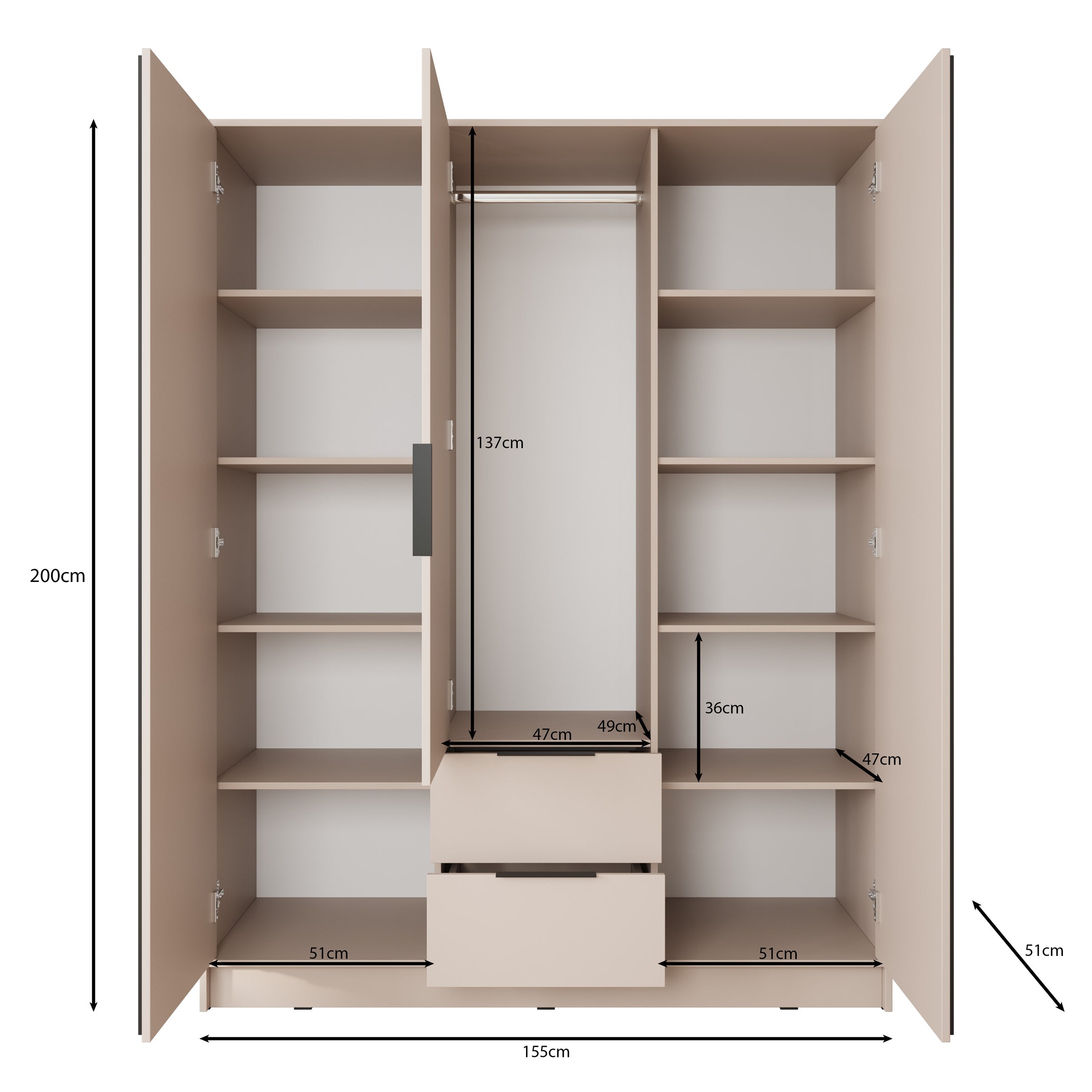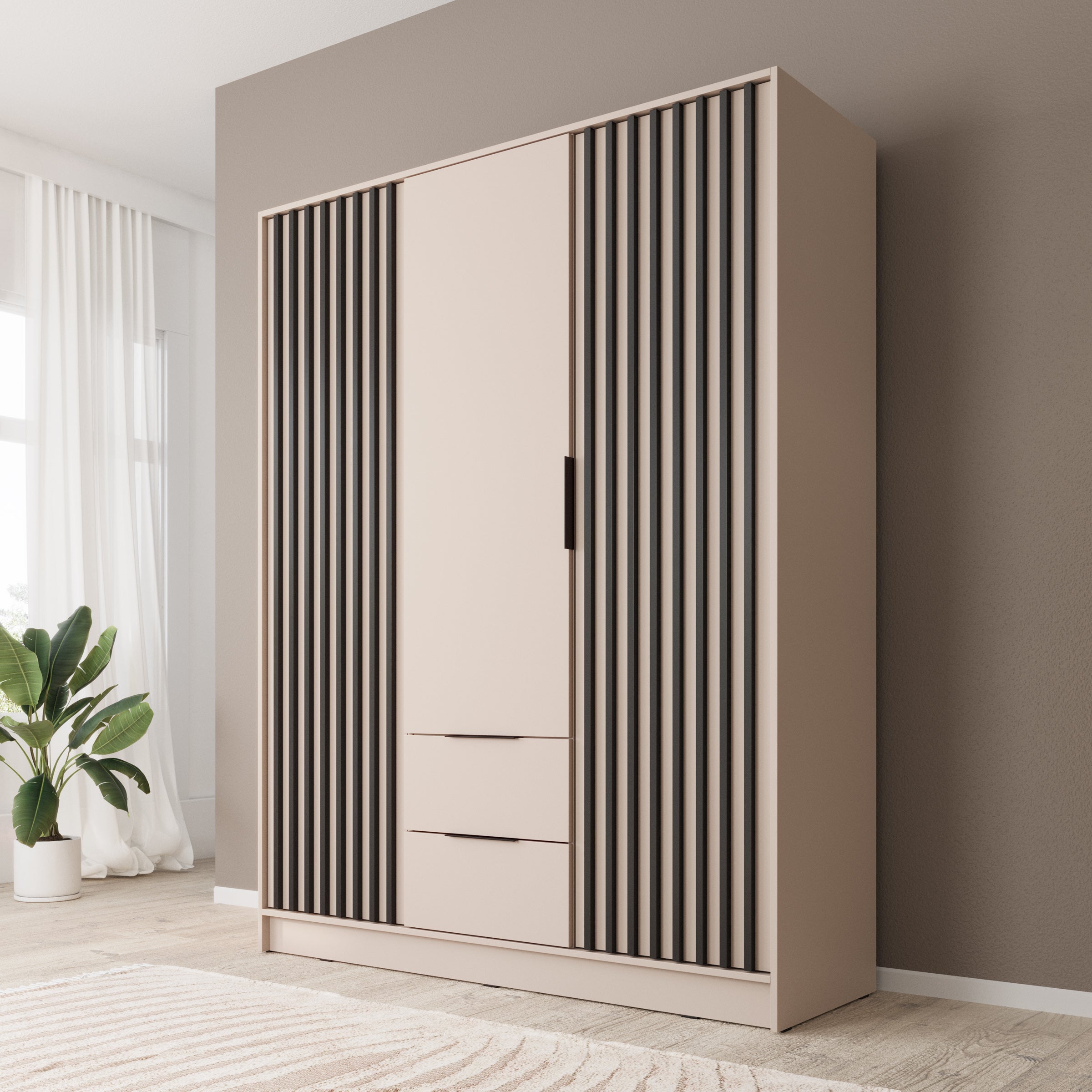 Meubella - Kledingkast Nairobi - Beige - Zwart - 155 cm