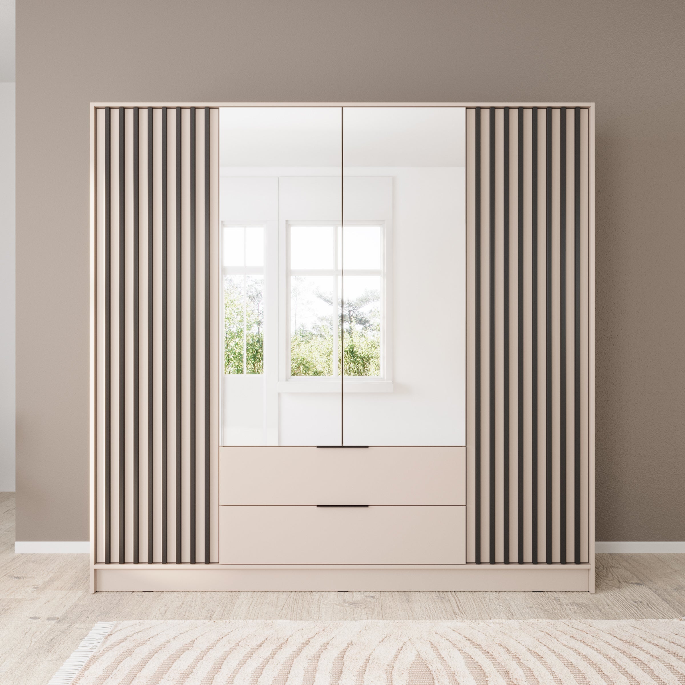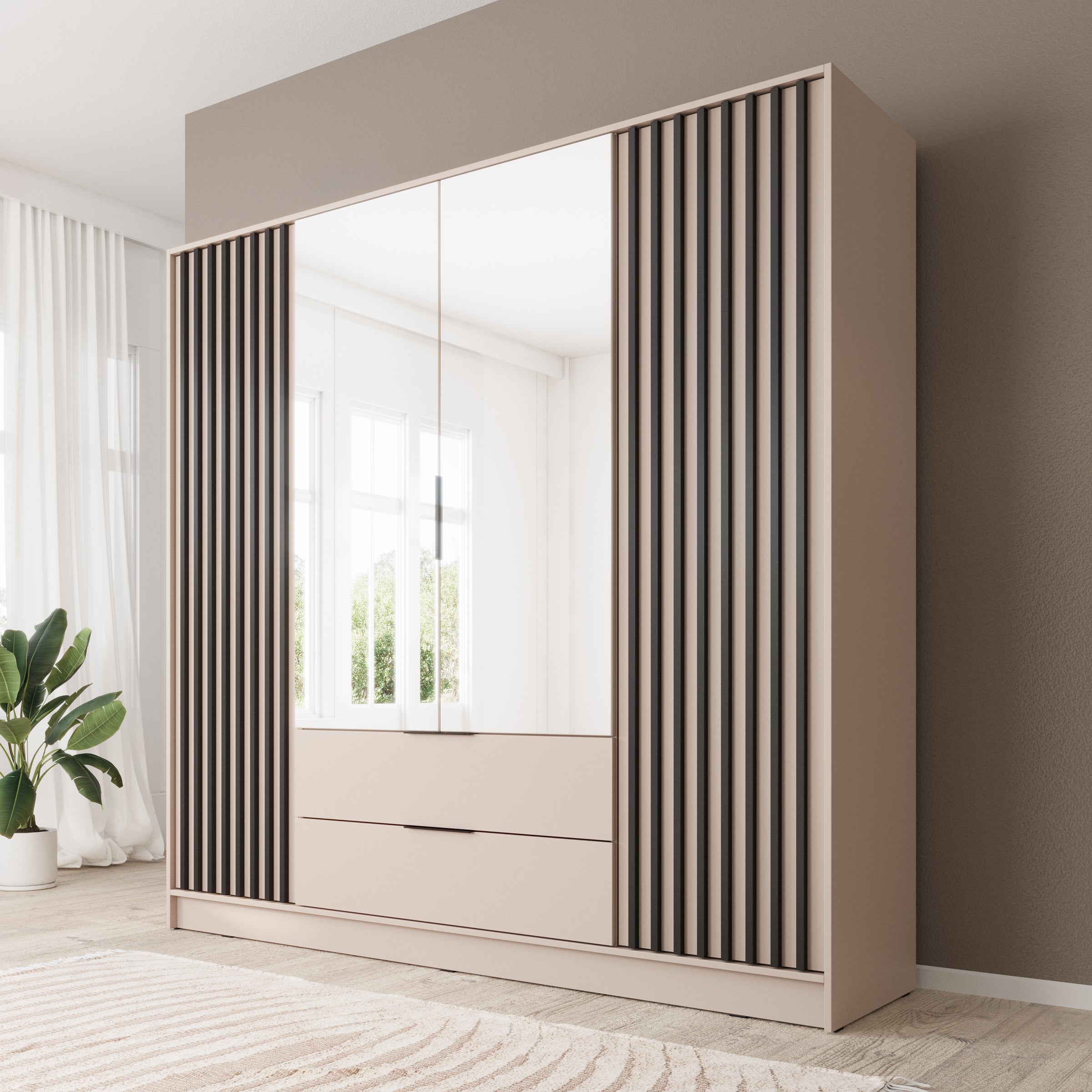 Meubella - Kledingkast Nairobi - Beige - Zwart - 206 cm - met spiegel
