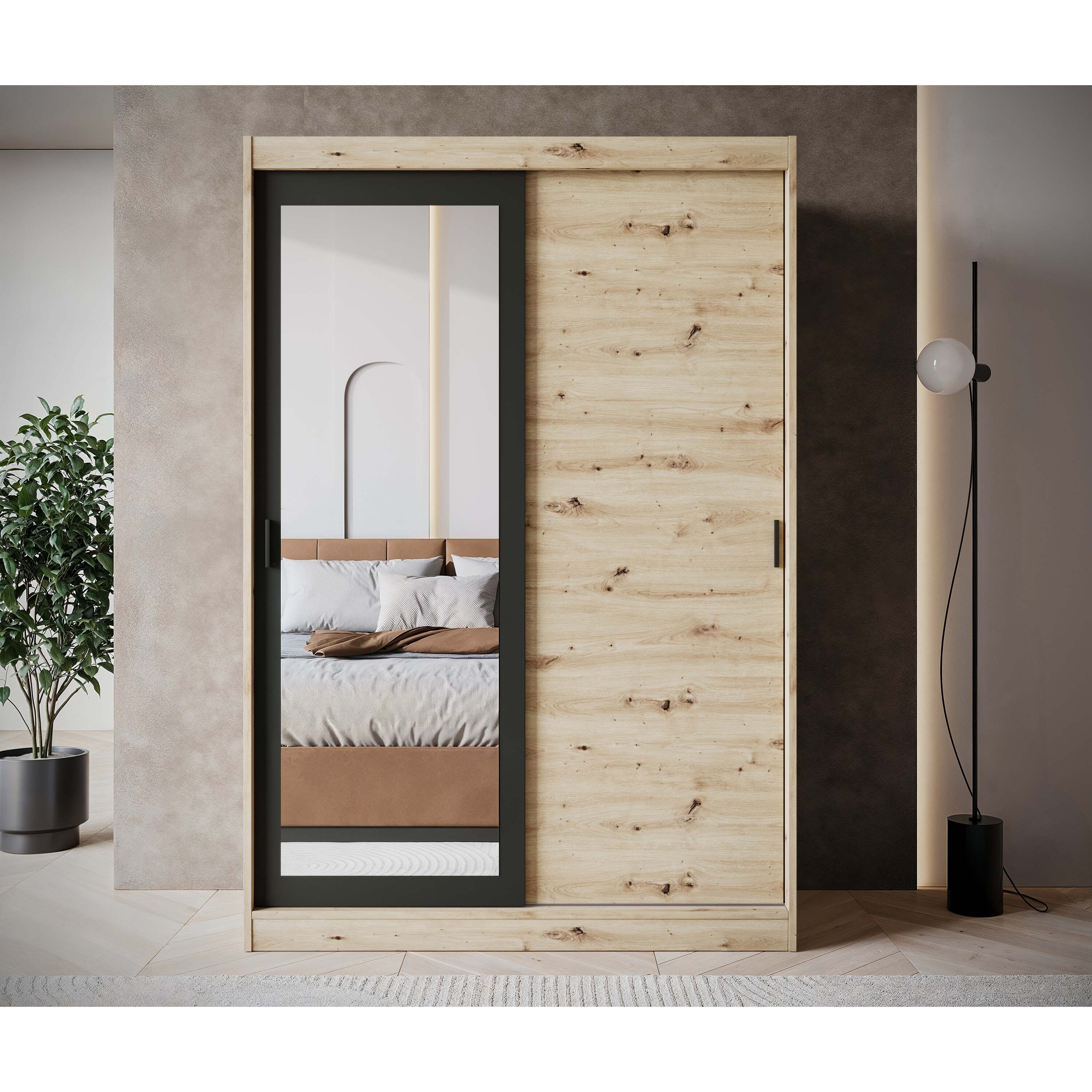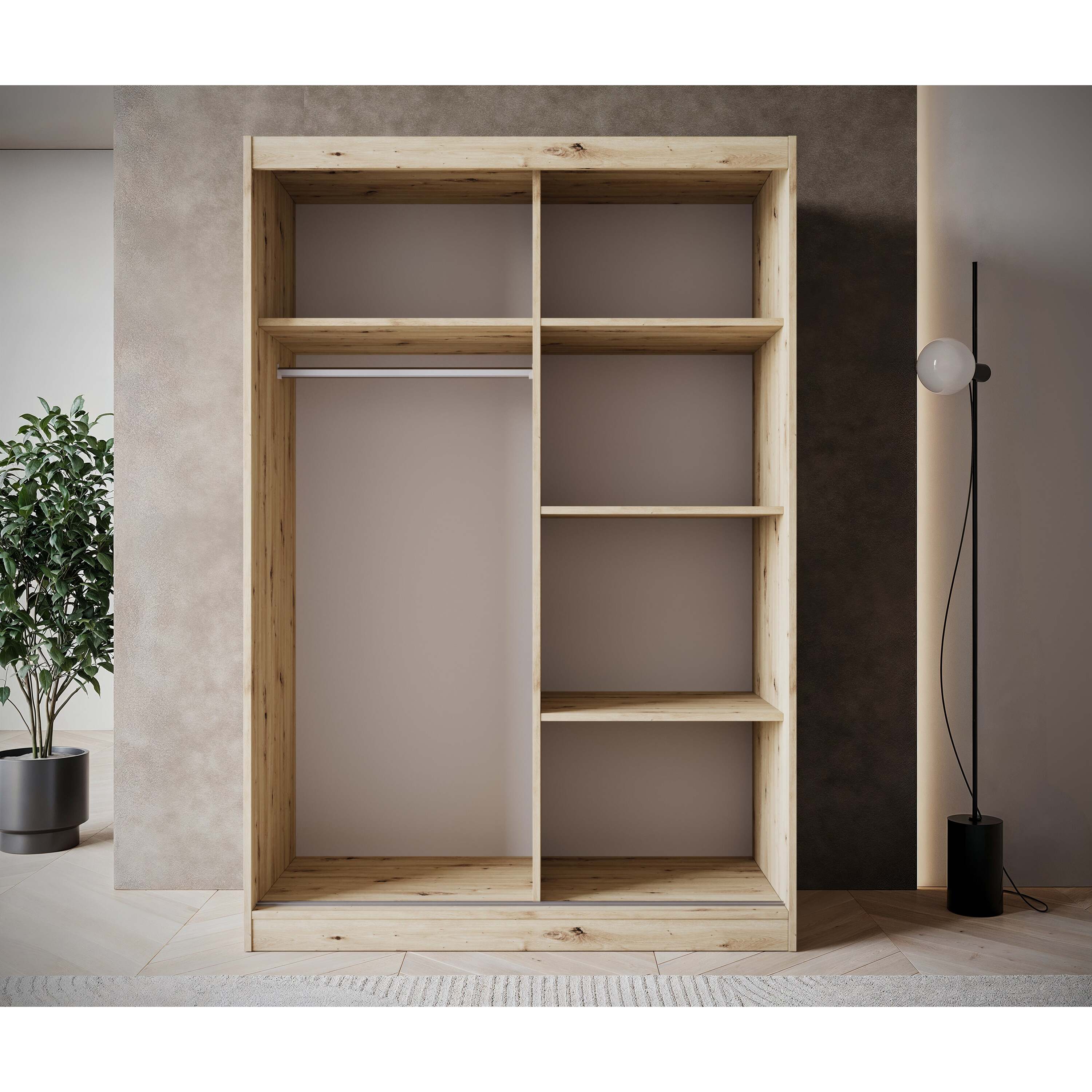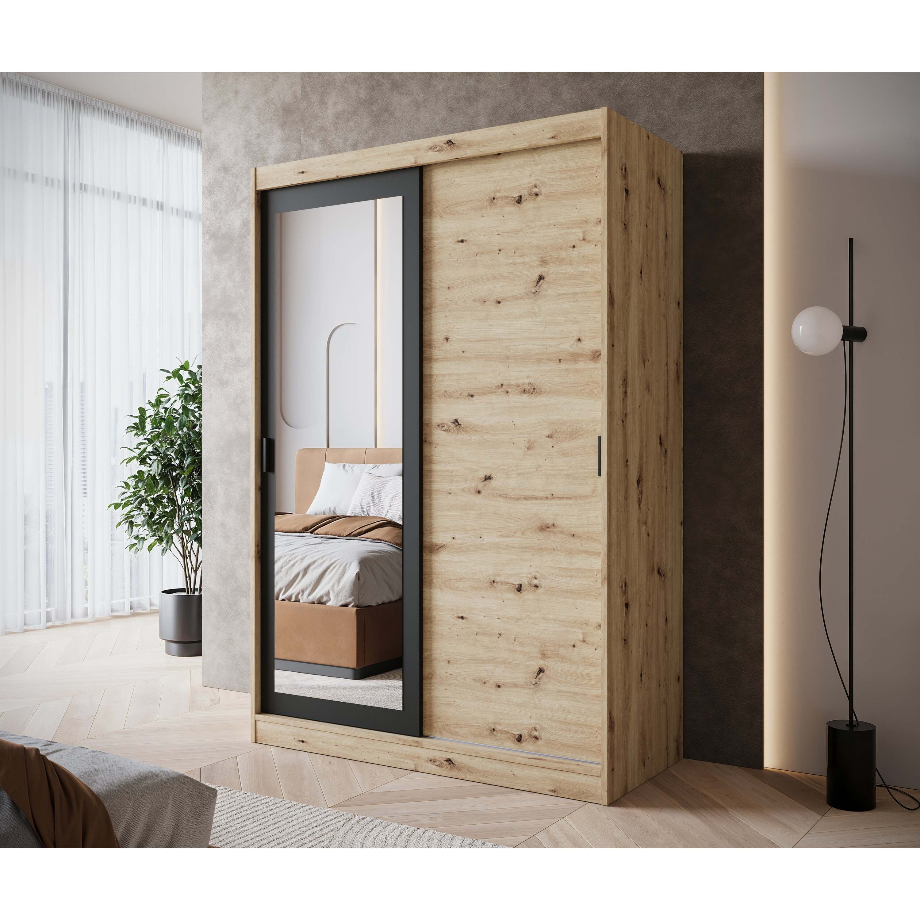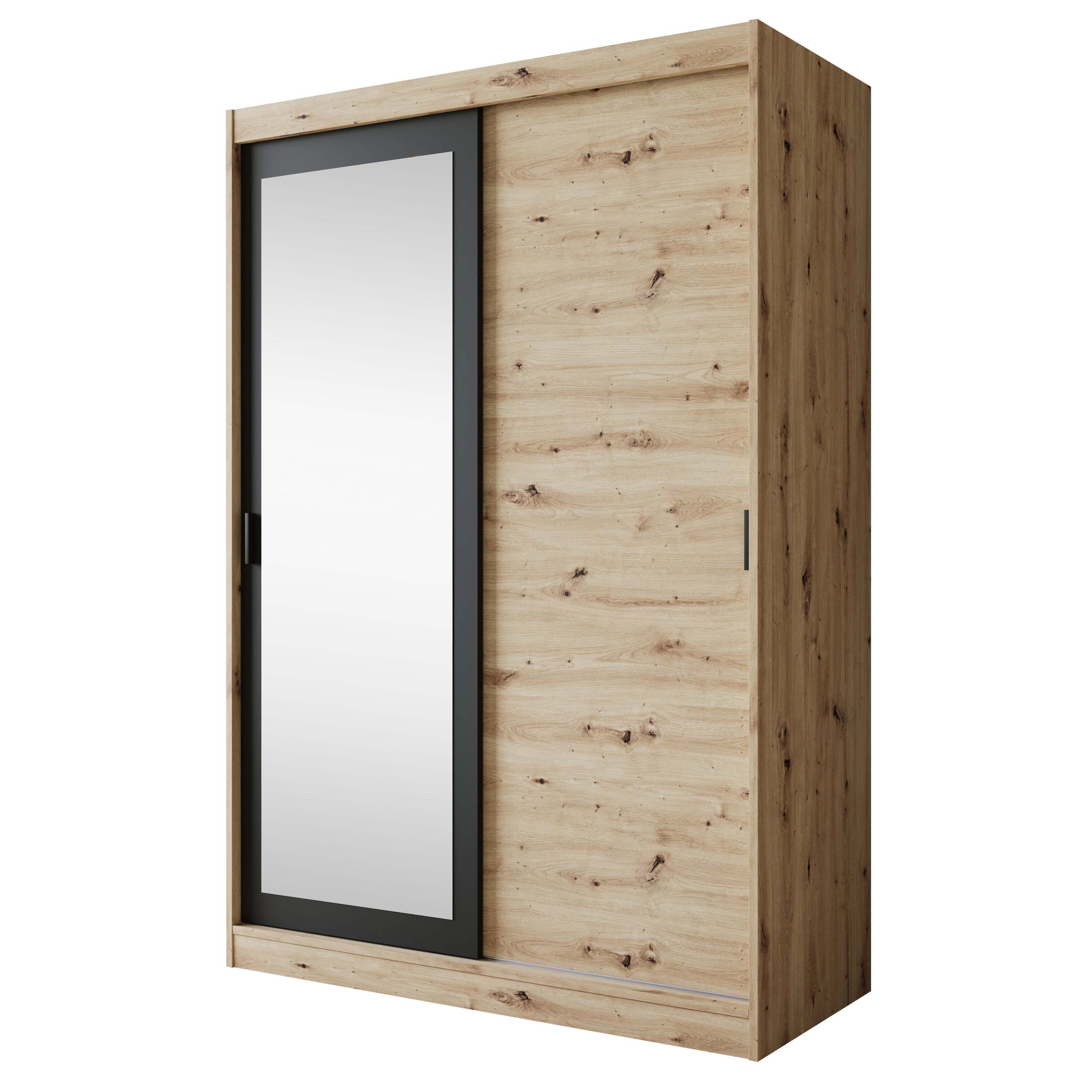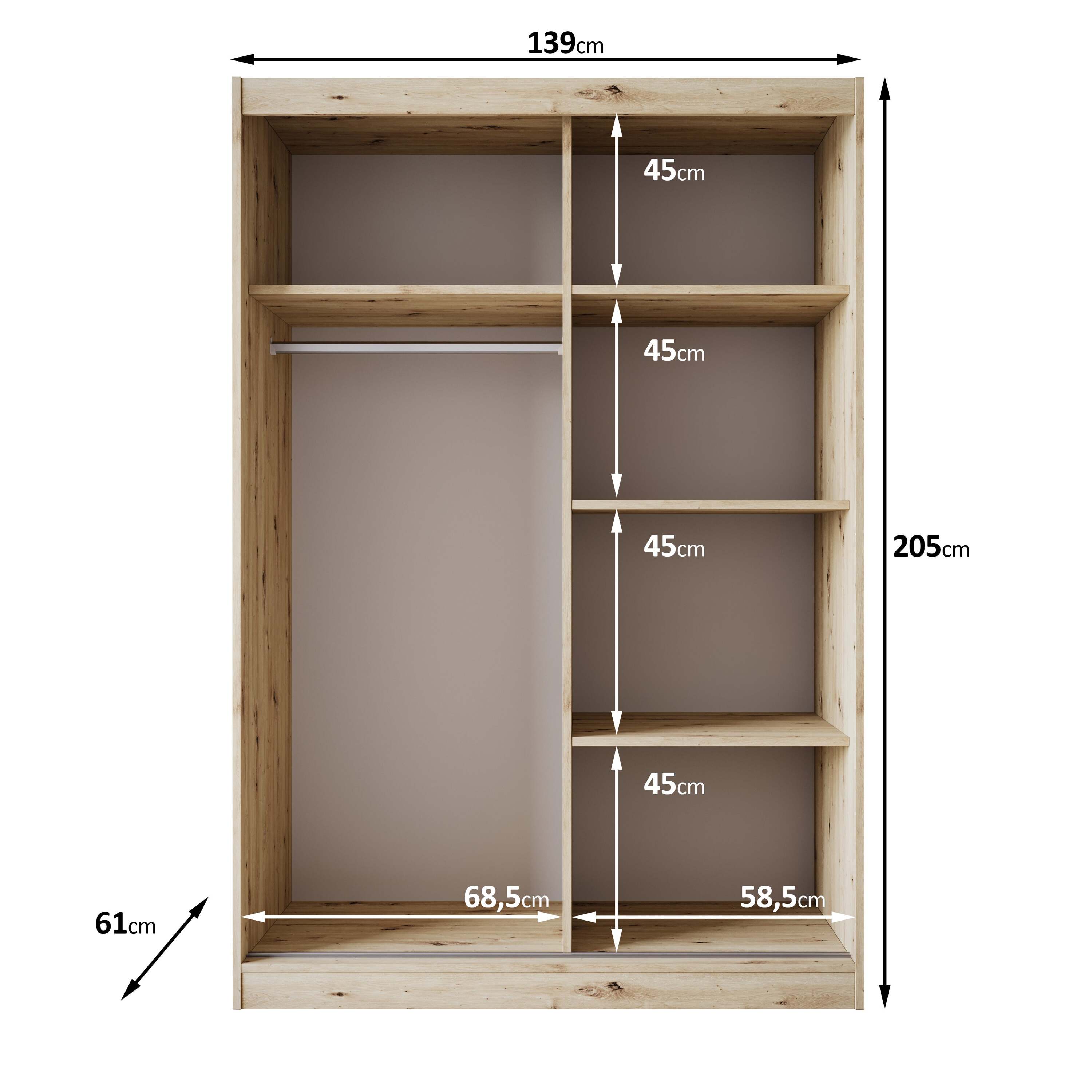 Meubella - Kledingkast Olly - Eiken - 139 cm - Met spiegel