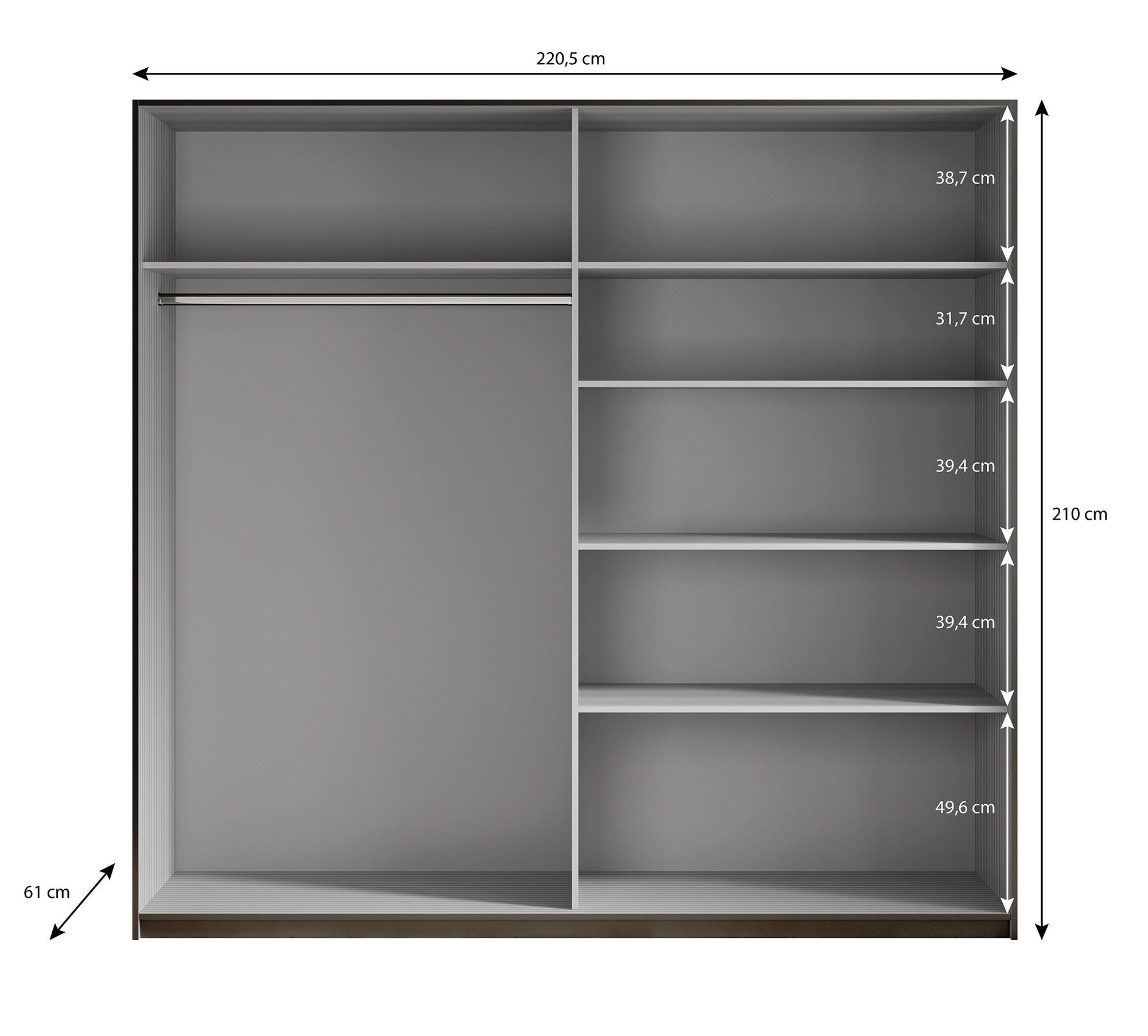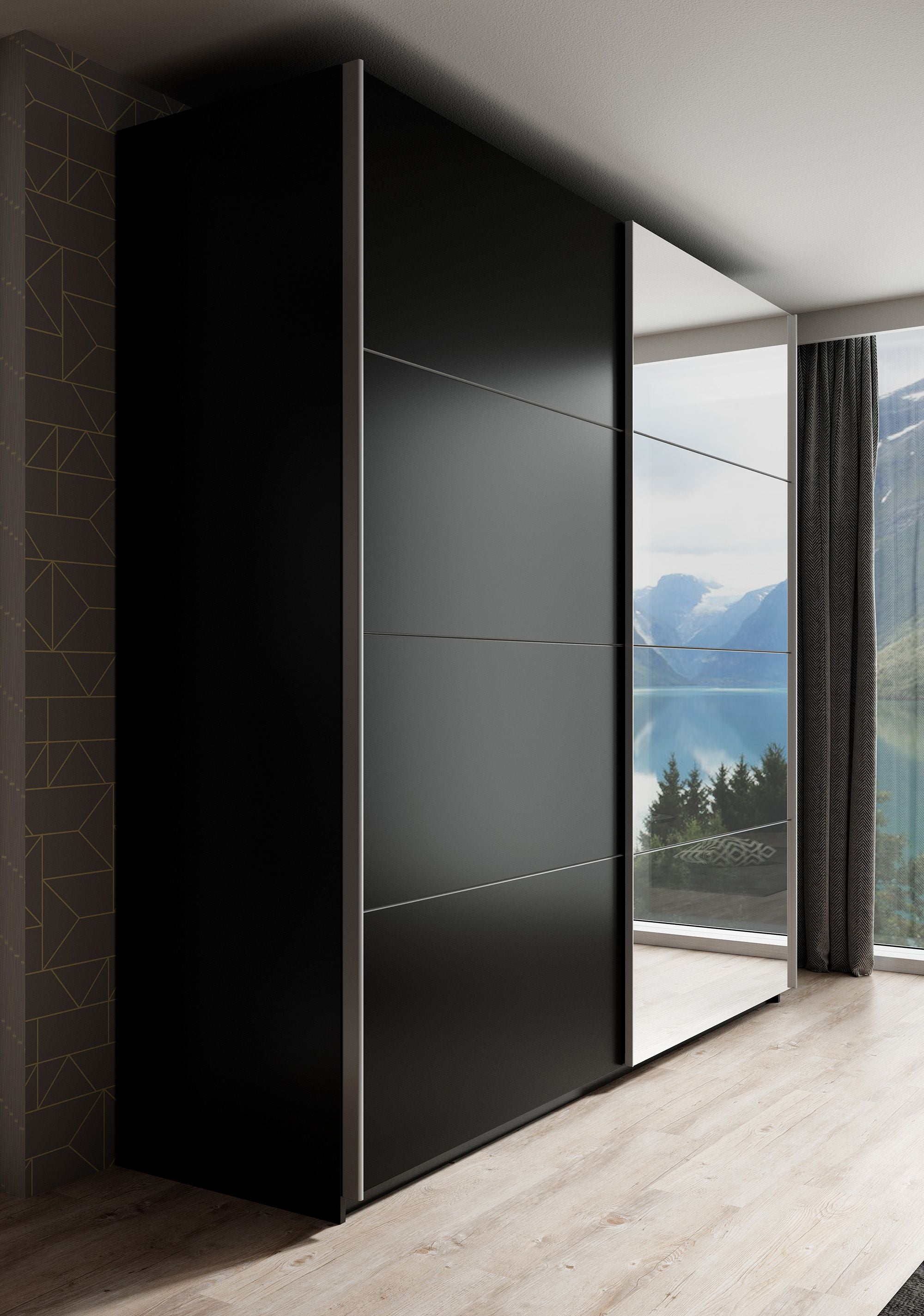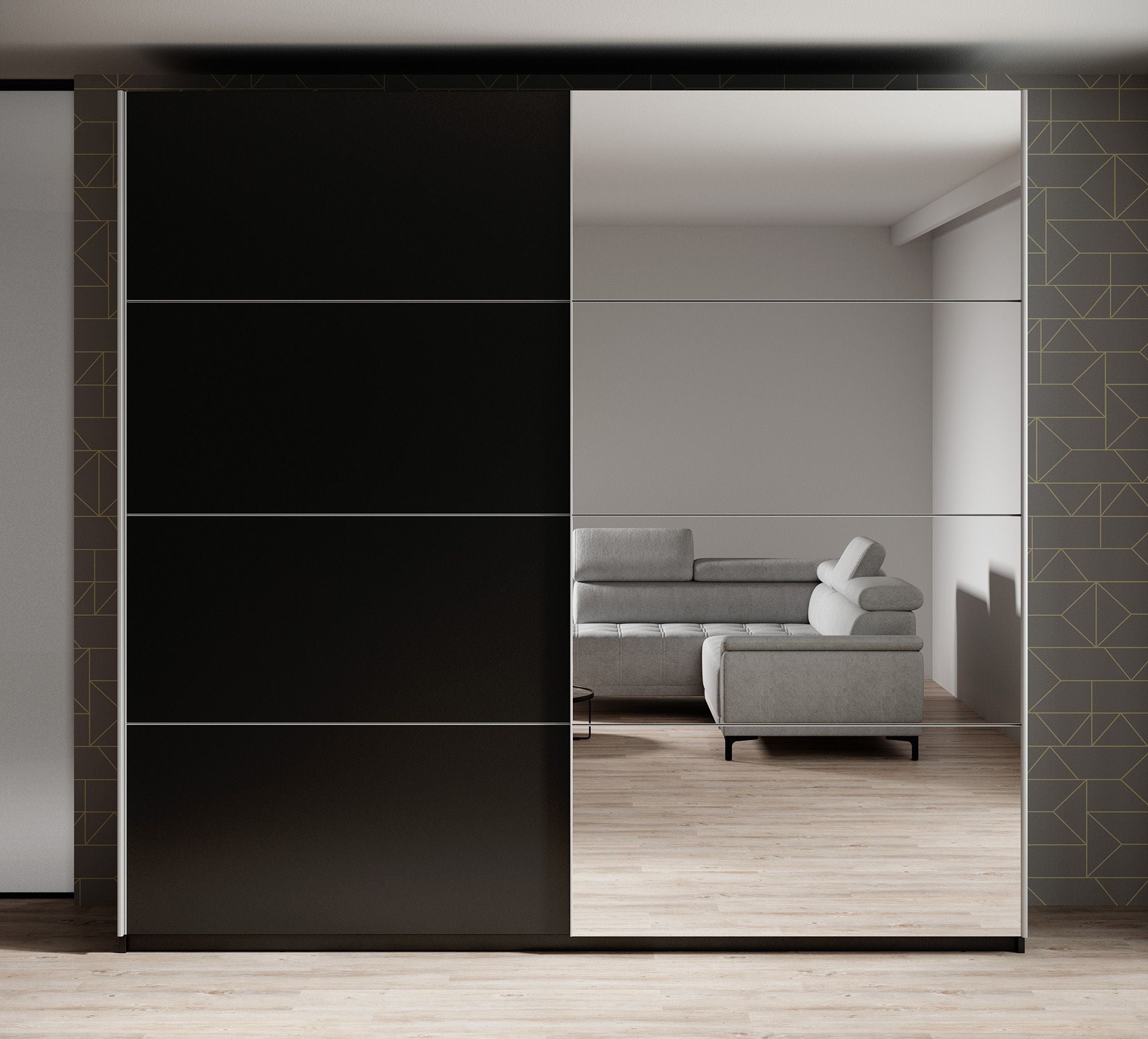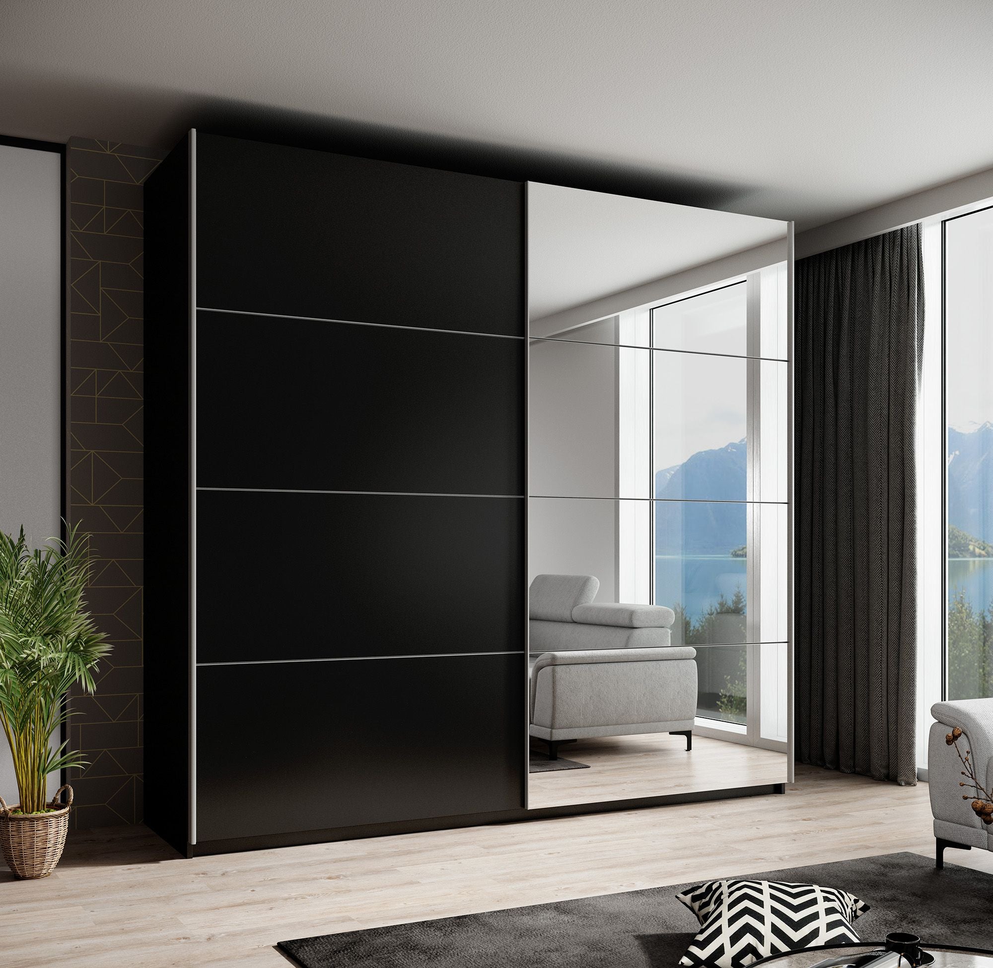 Meubella - Kledingkast Oscar - Zwart - 221 cm - Met spiegel