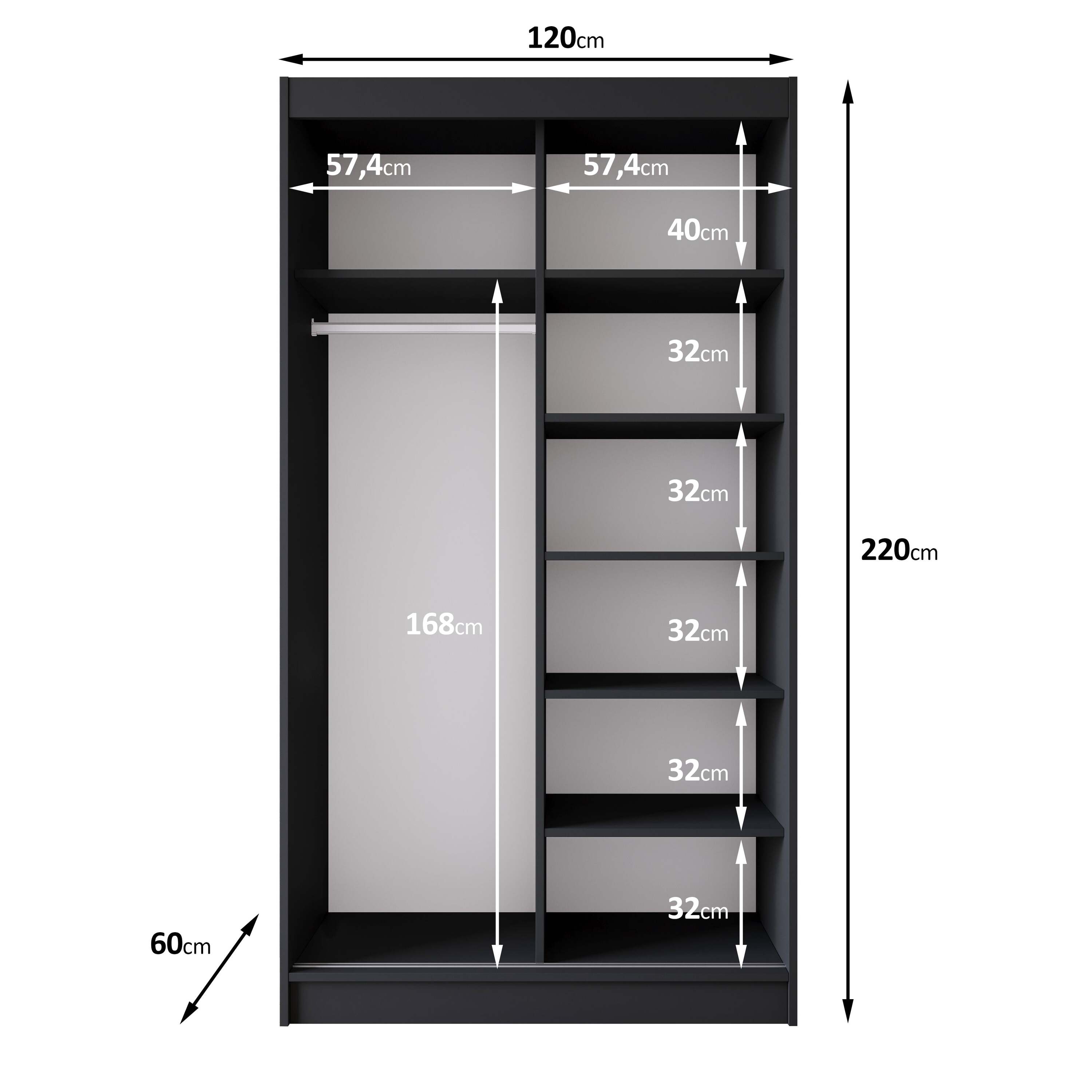 | Maat | H 220 x B 120 x D 60 cm |