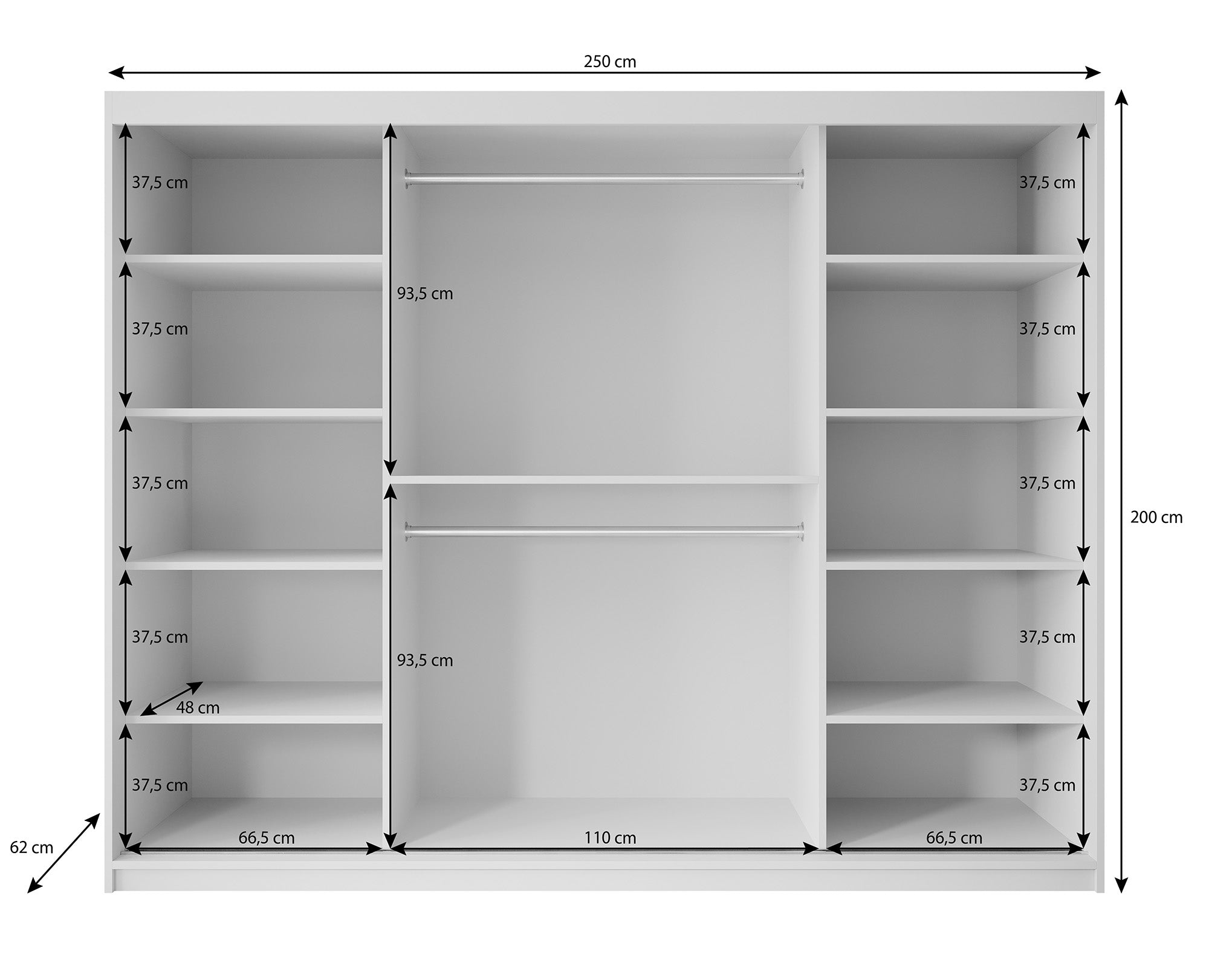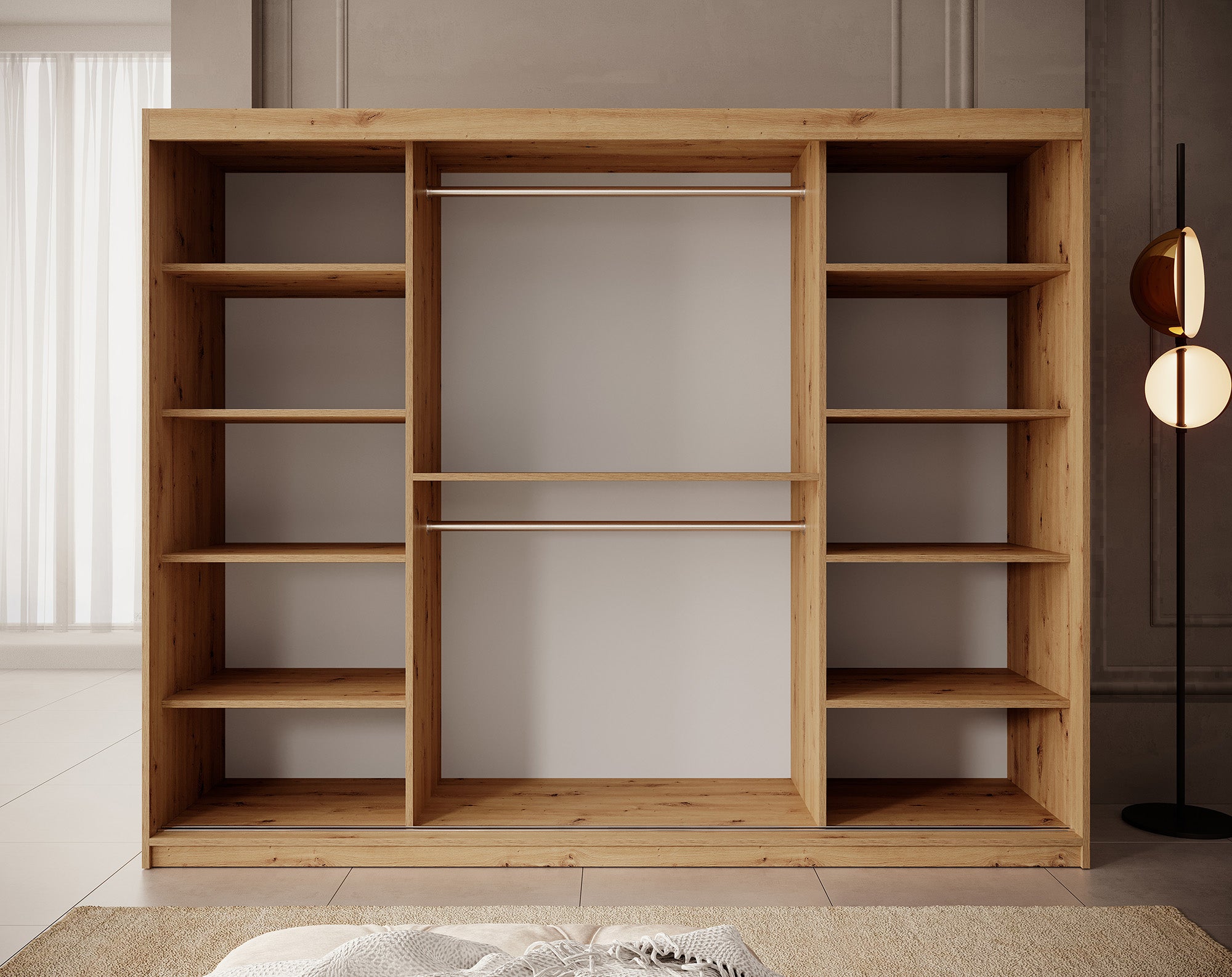 Meubella Kledingkast Pete - Eiken - 250 cm - Met spiegel