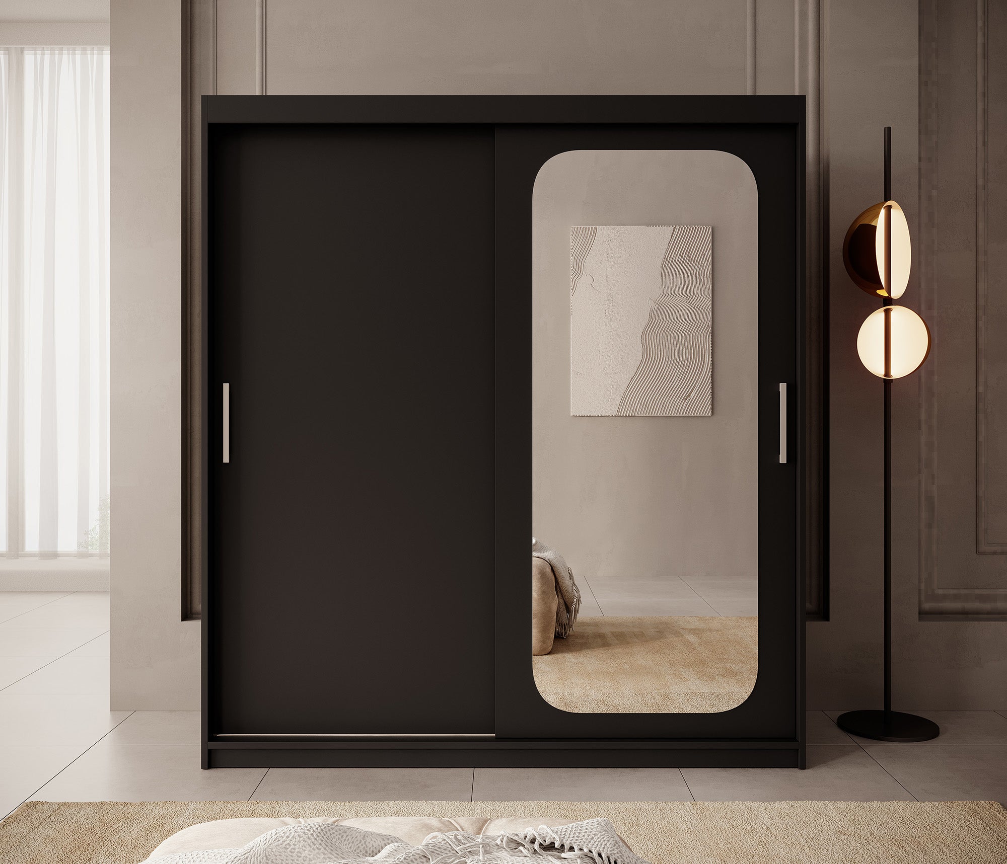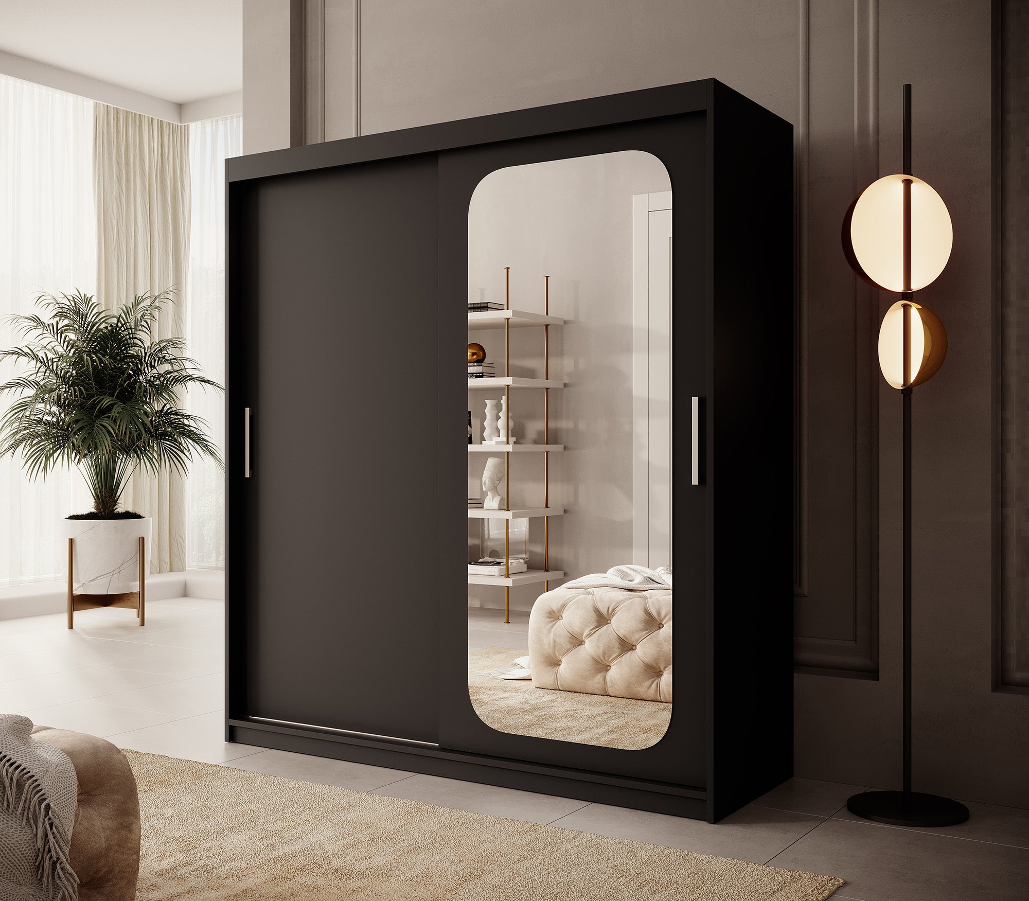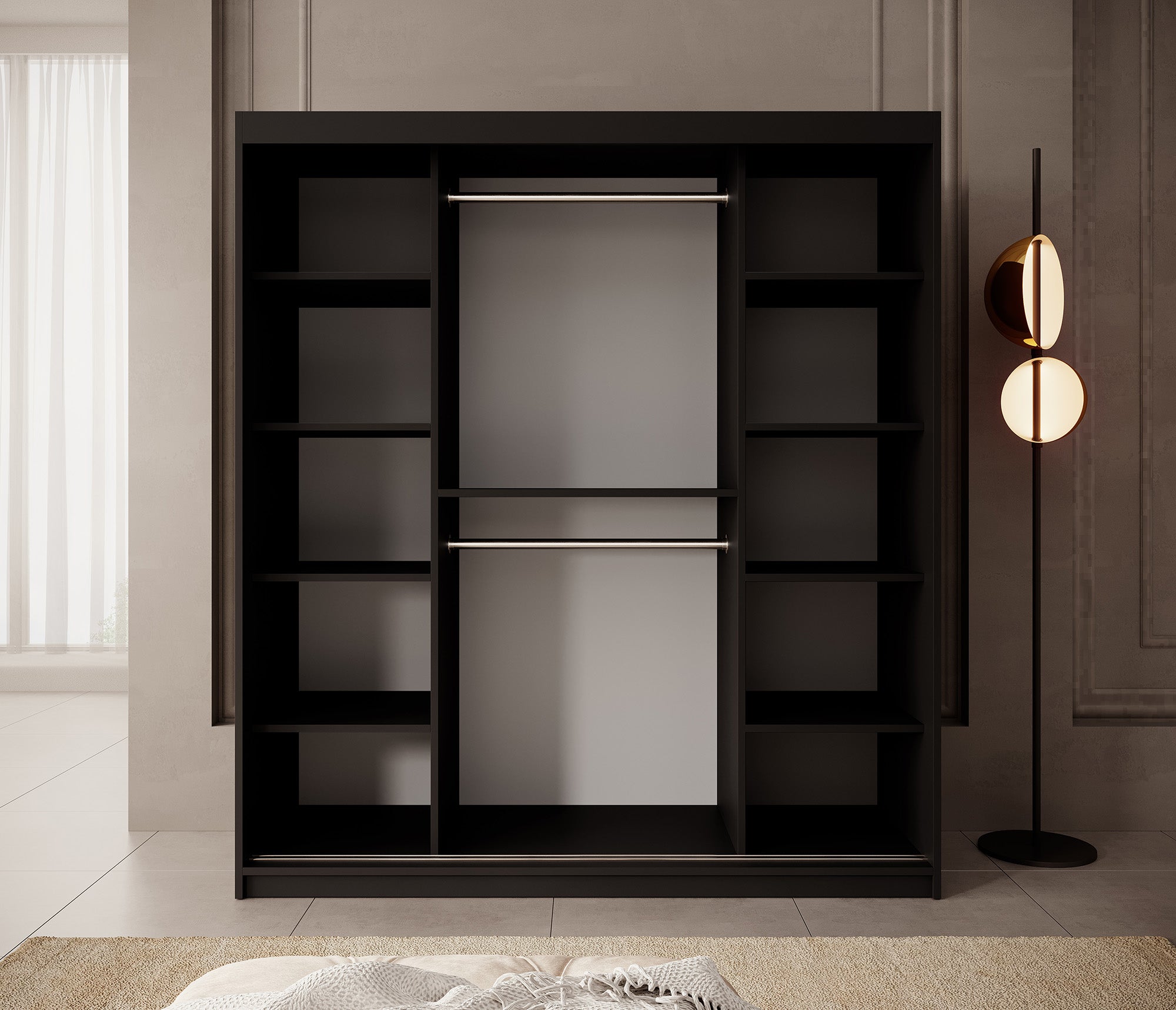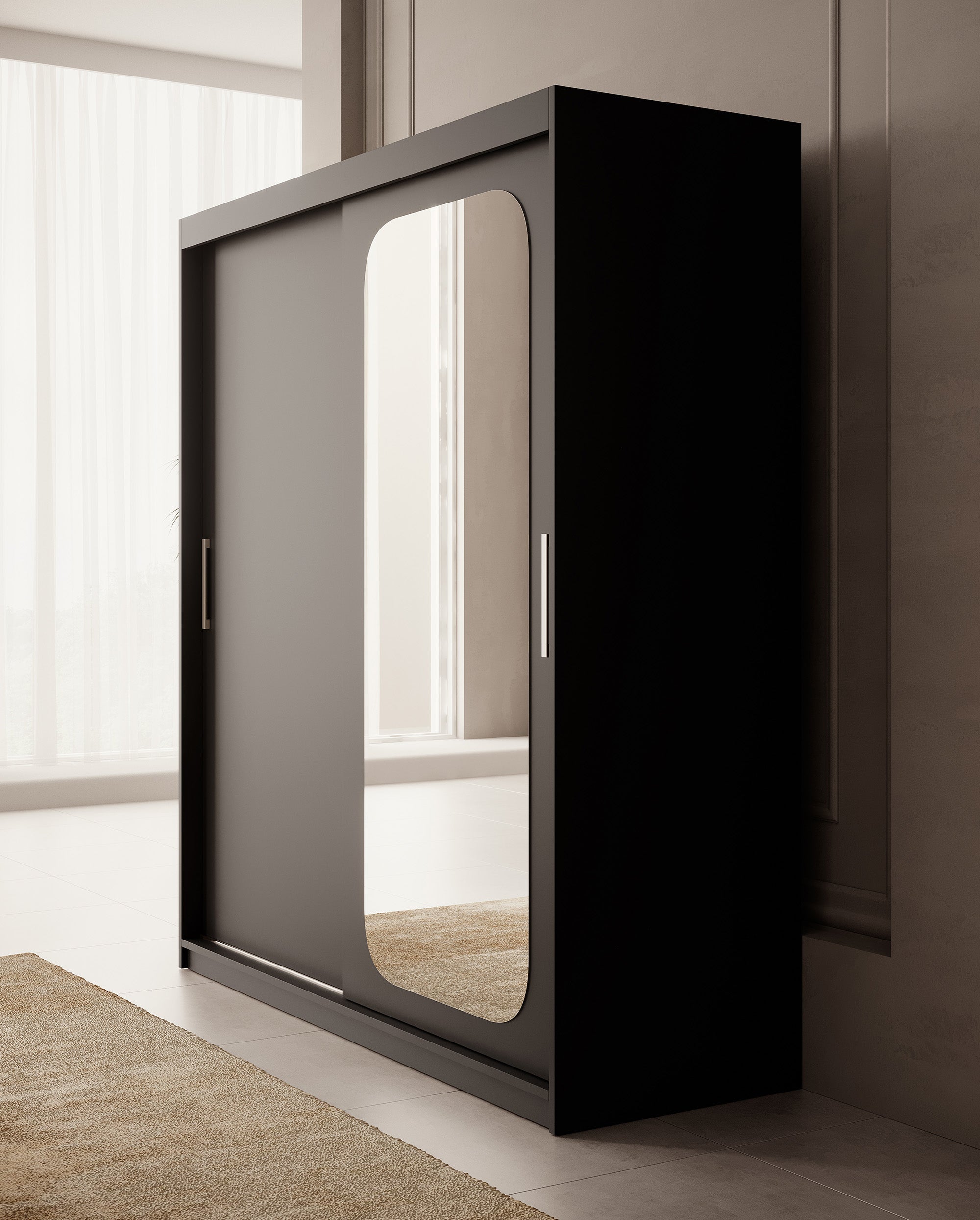 Meubella - Kledingkast Pete - Zwart - 180 cm - Met spiegel