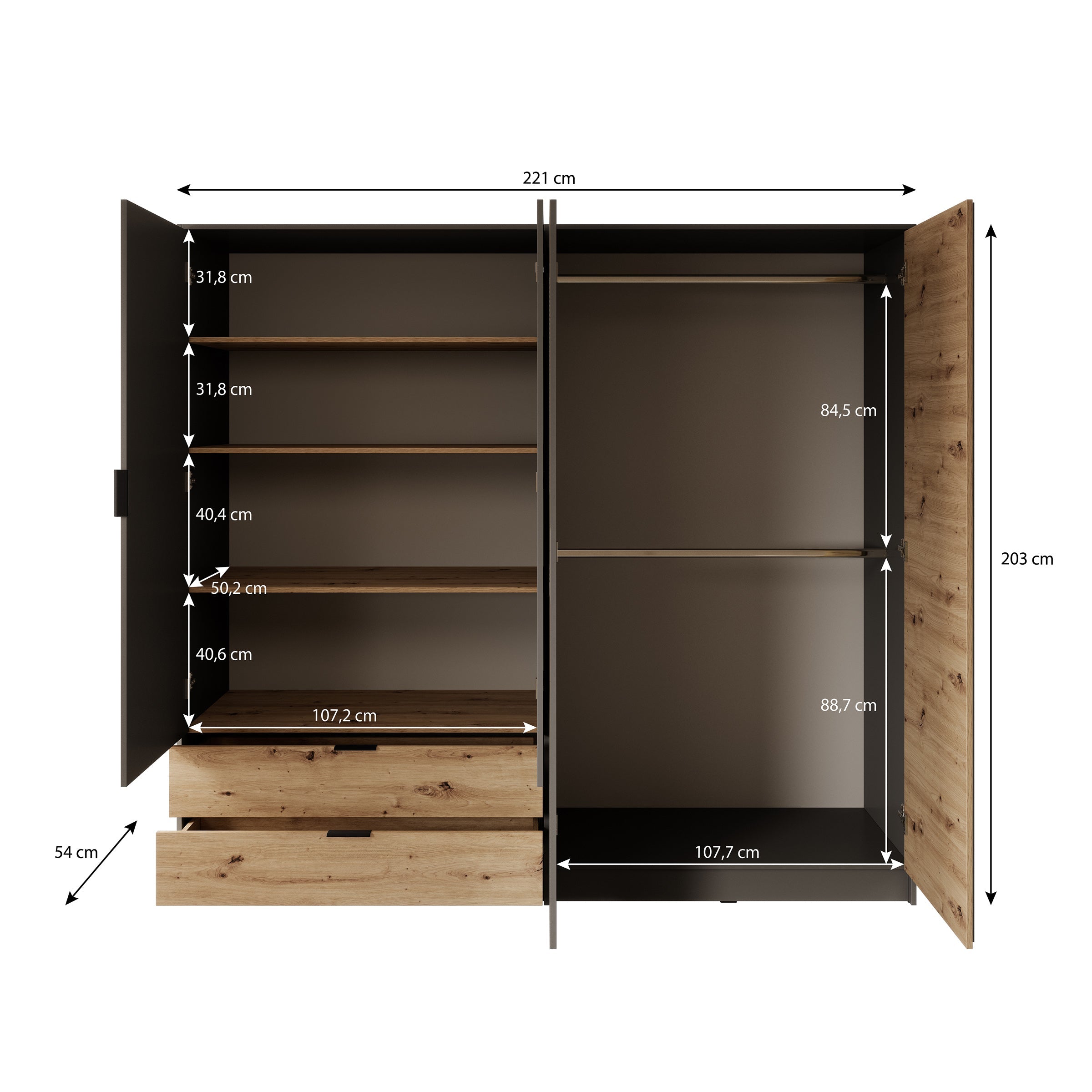 | Maat | H 203 x B 221 x D 54 cm |