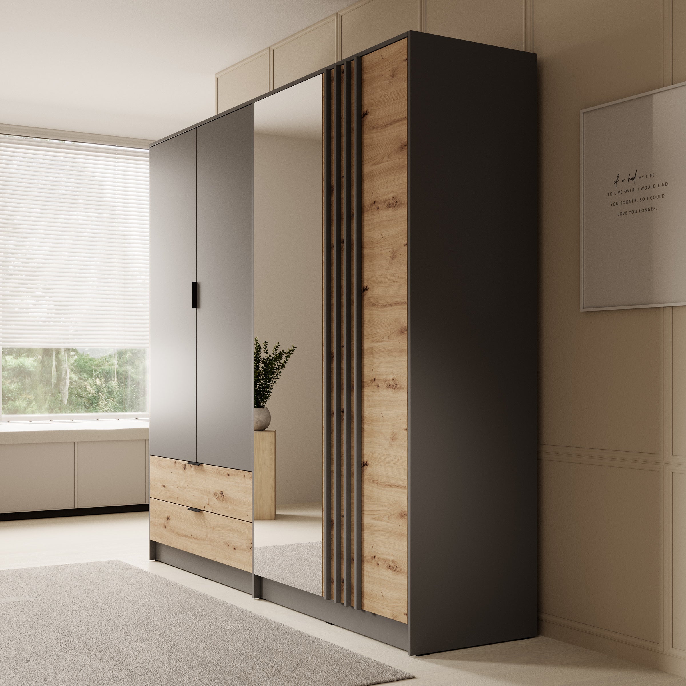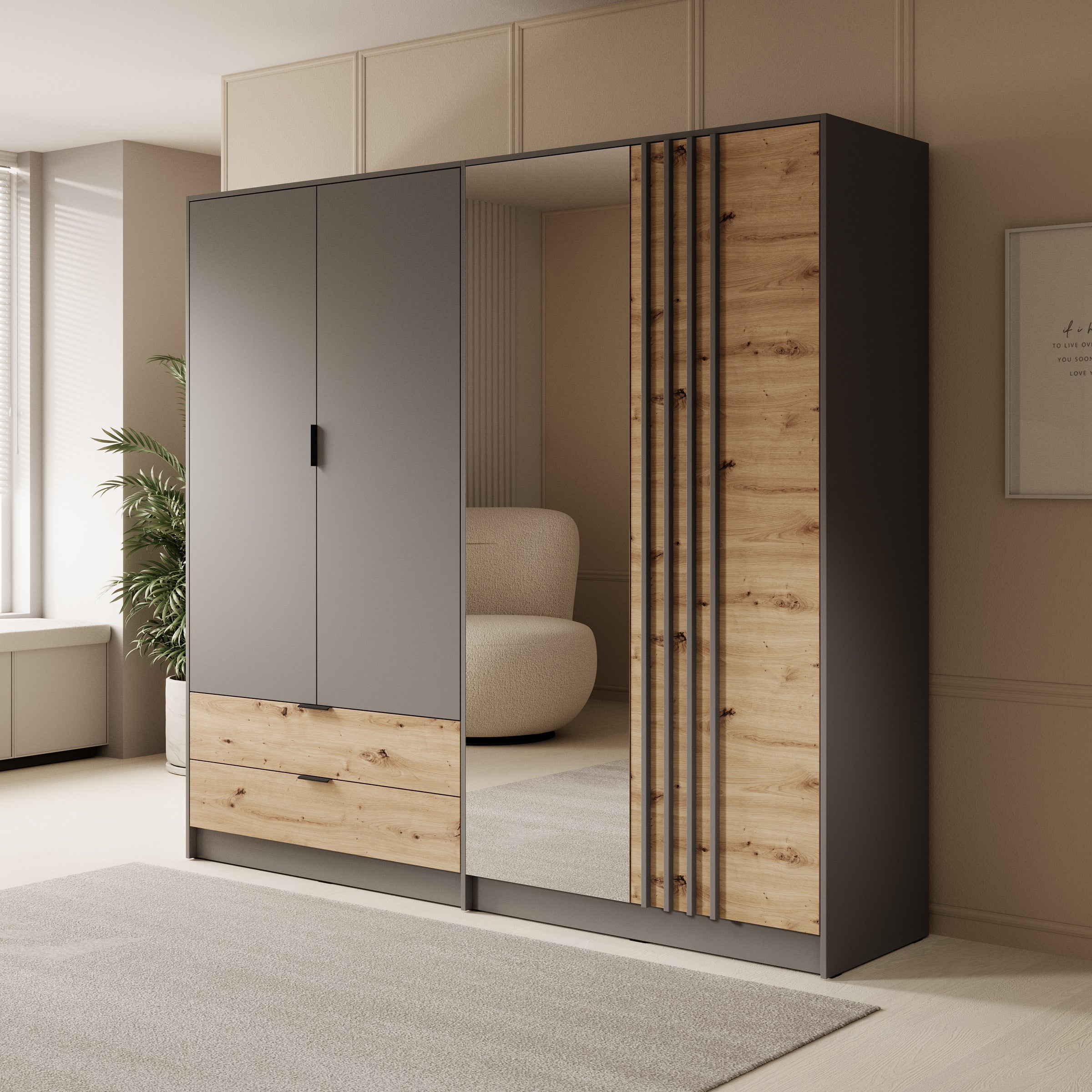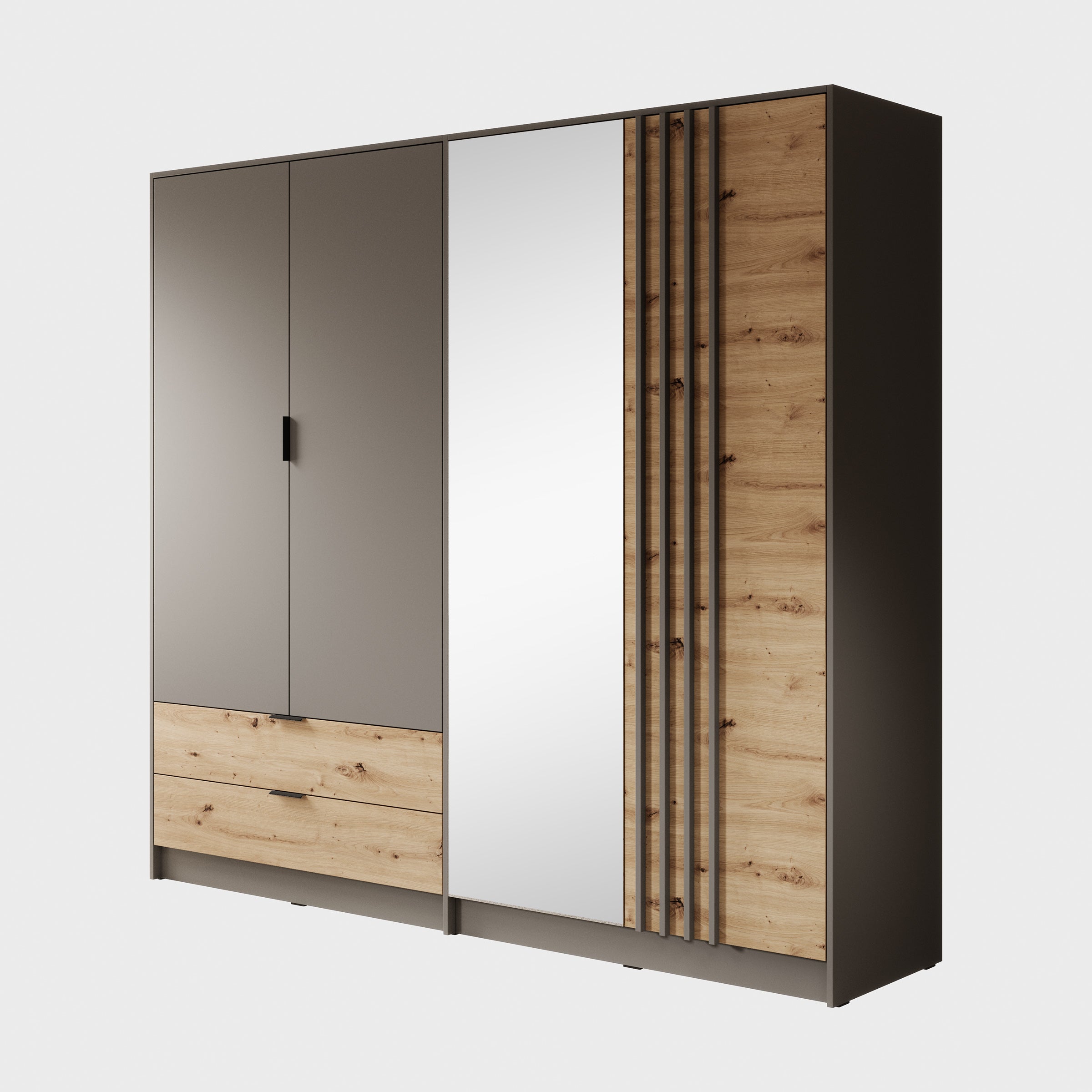 Meubella - Kledingkast Roma - Grijs - Eiken - 221 cm - Met spiegel