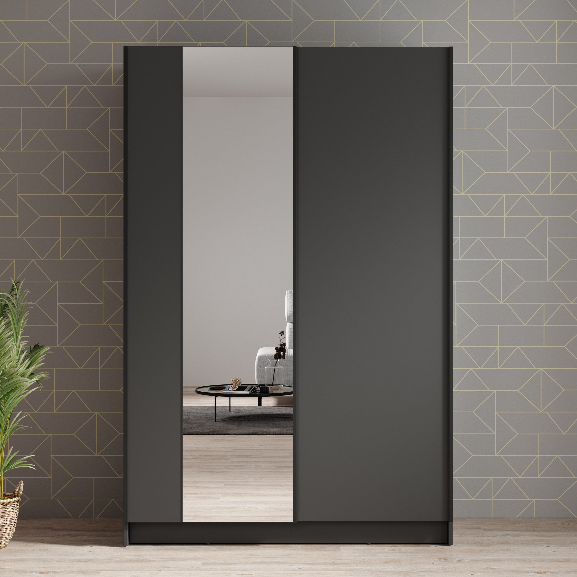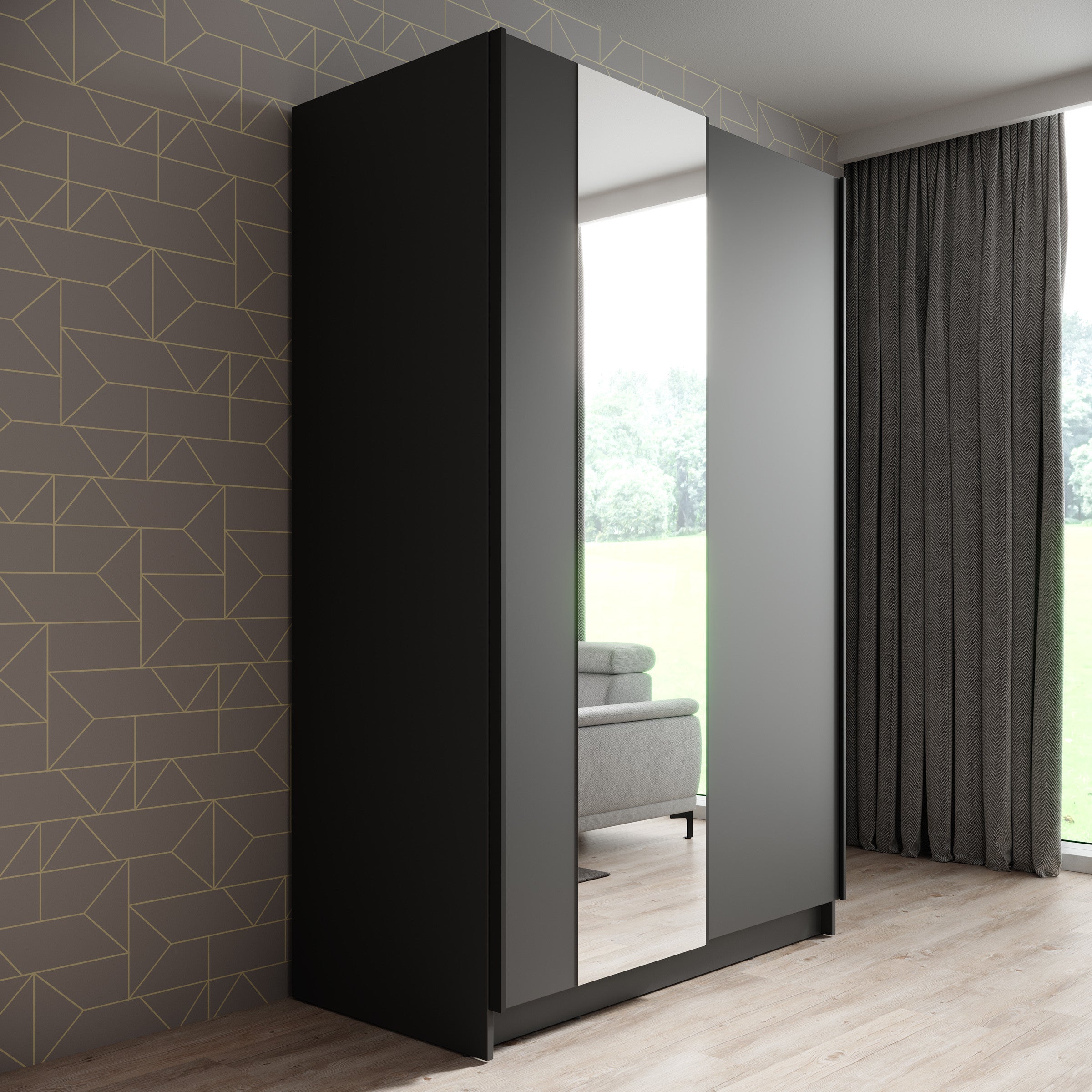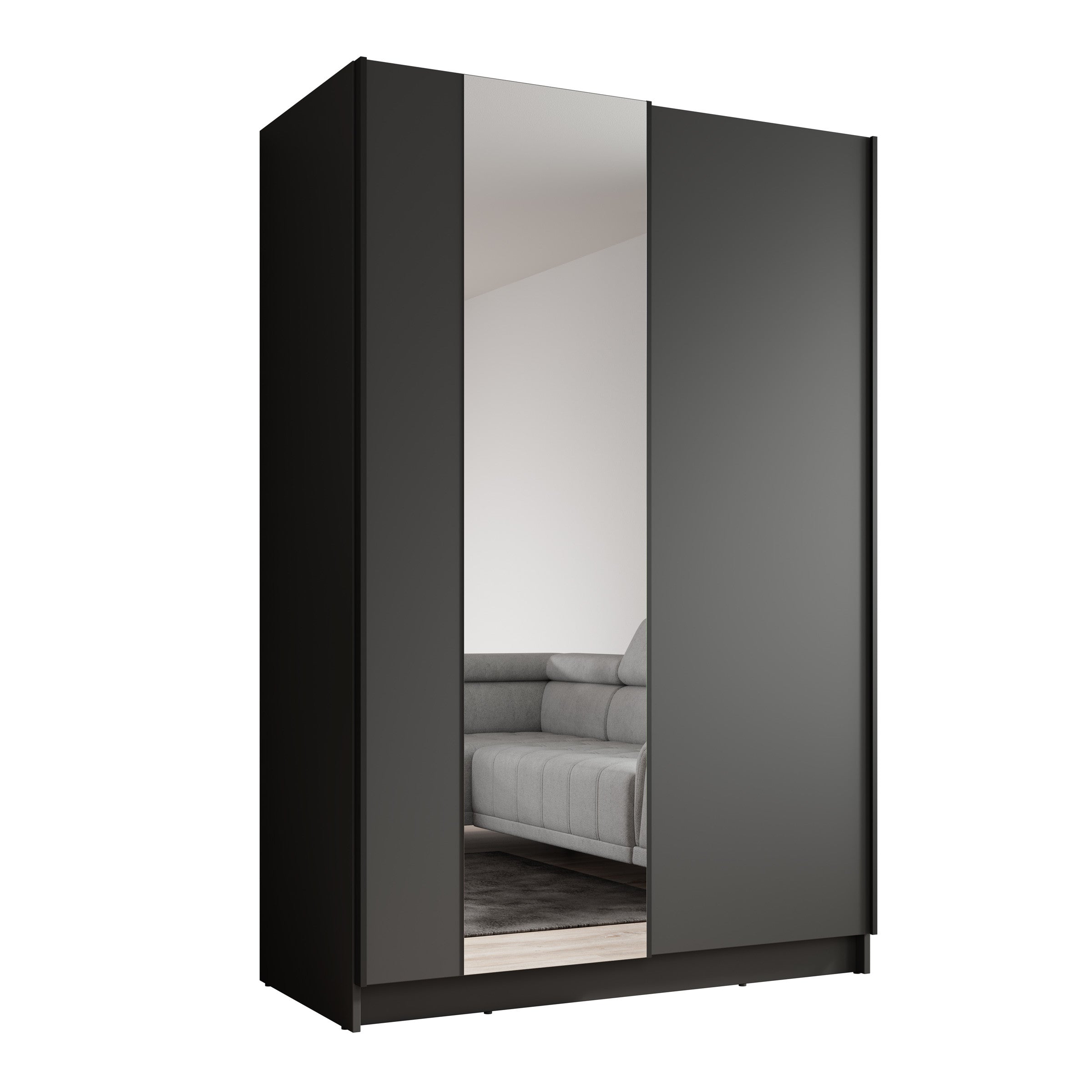 Meubella - Kledingkast Salta - Zwart - 120 cm - Met spiegel