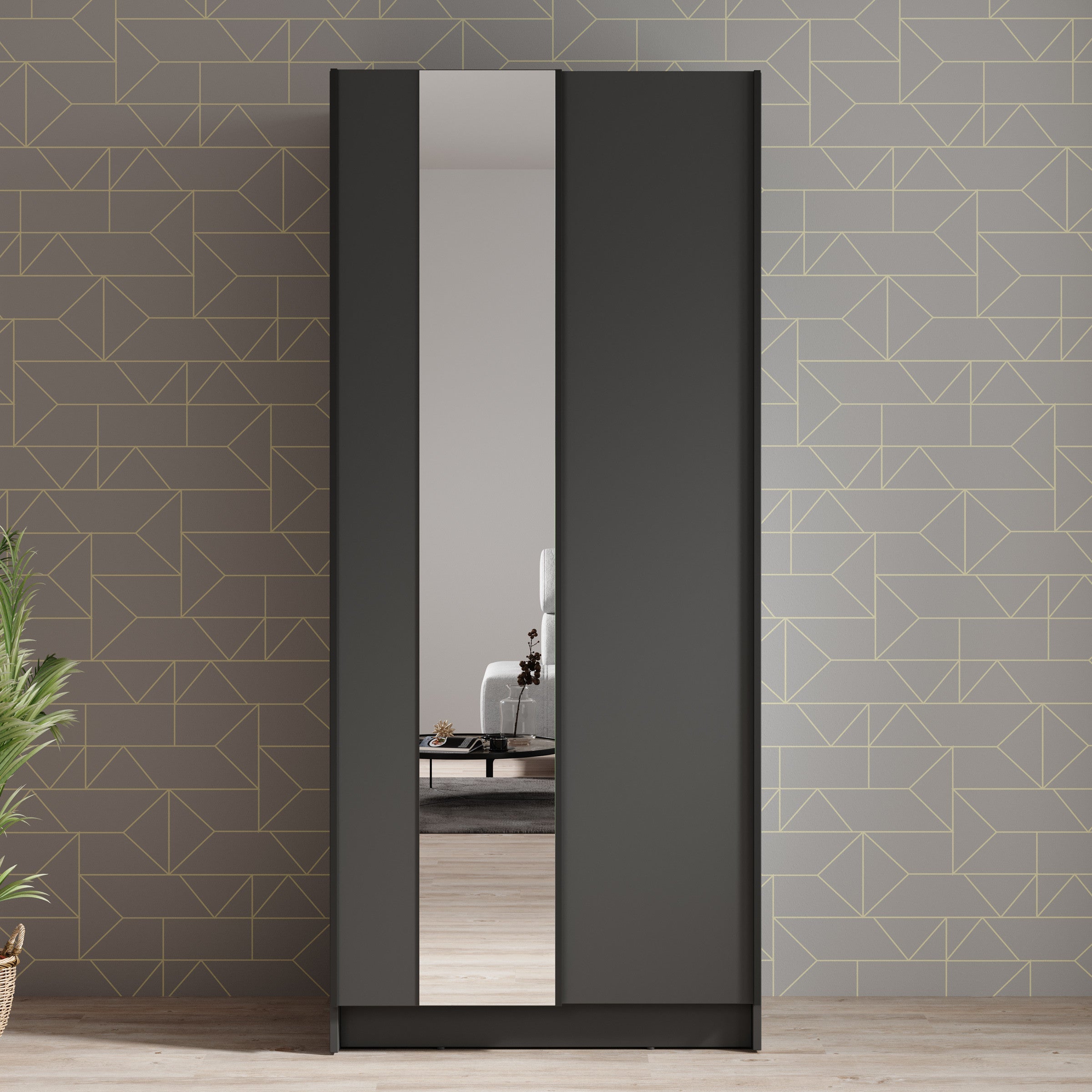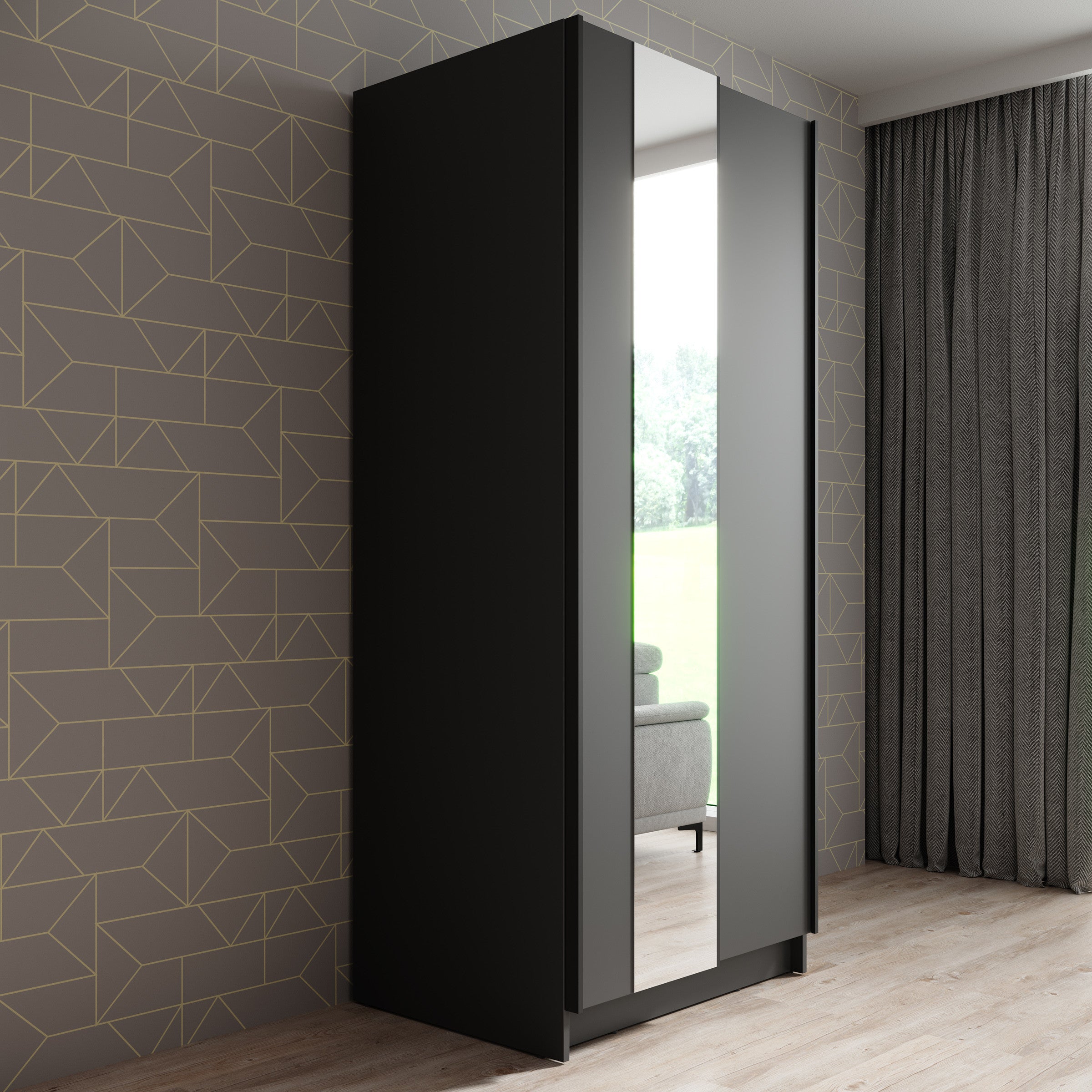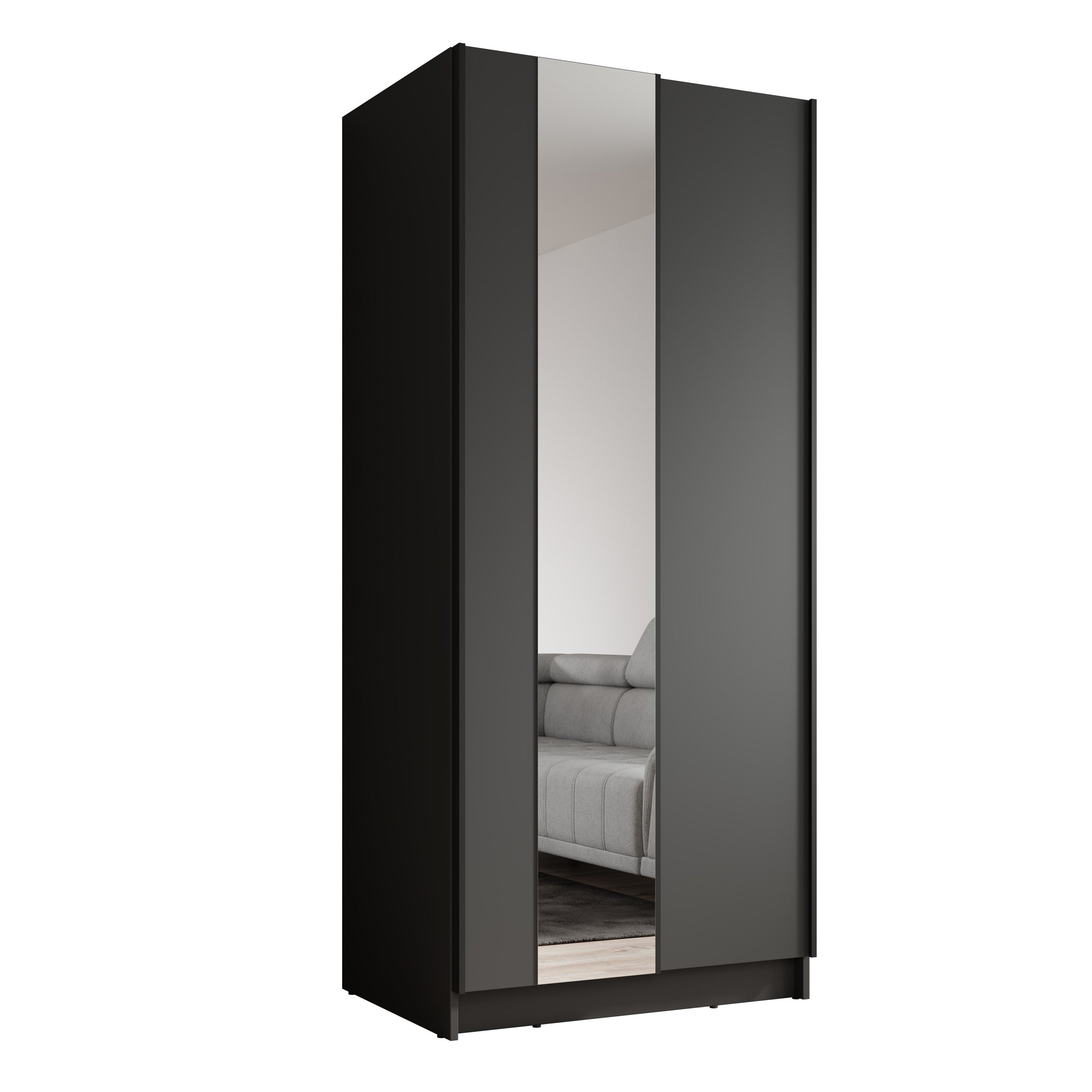 Meubella - Kledingkast Salta - Zwart - 80 cm - Met spiegel