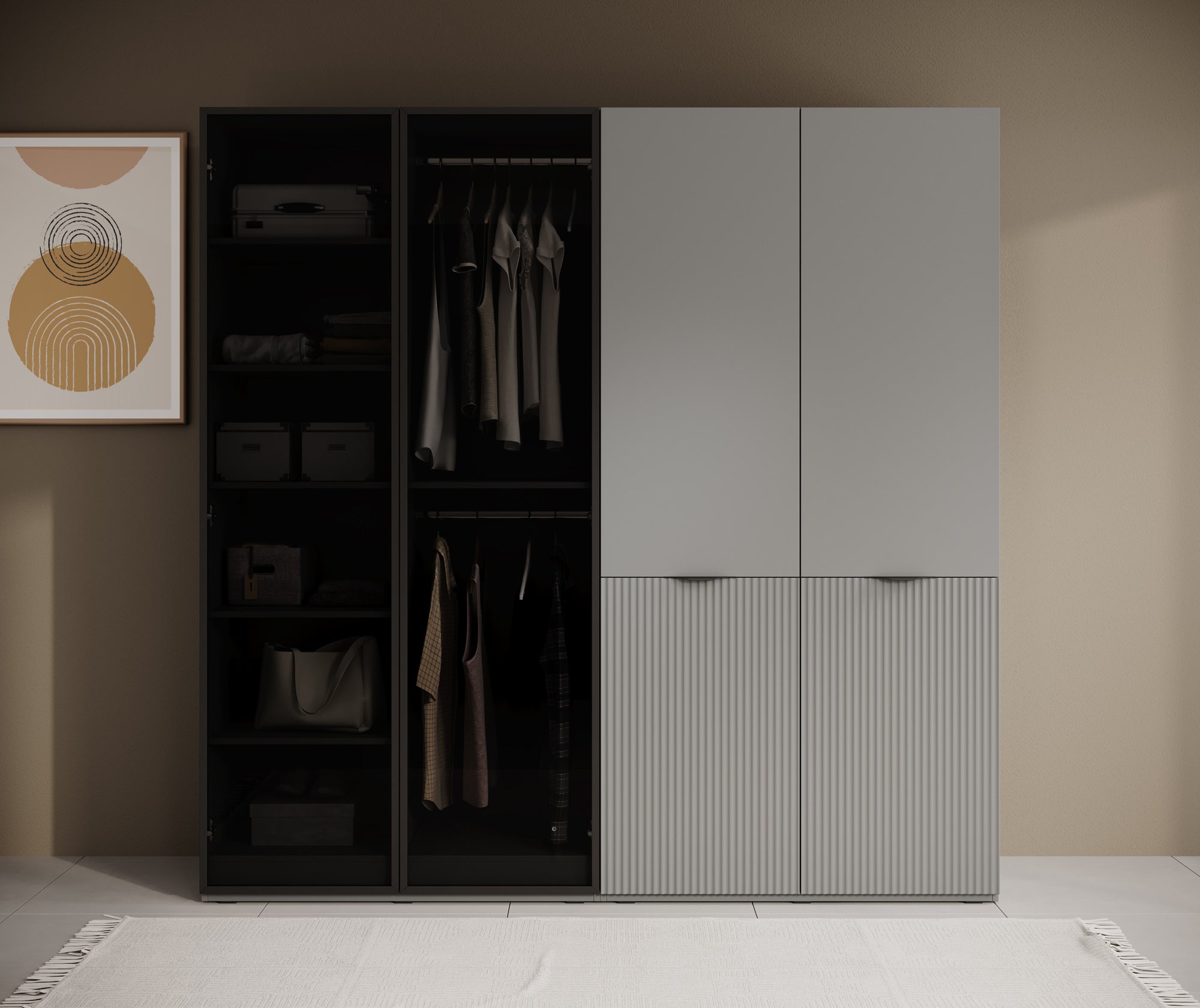 Meubella - Kledingkast Shelton - Grijs - 202 cm - Met glas