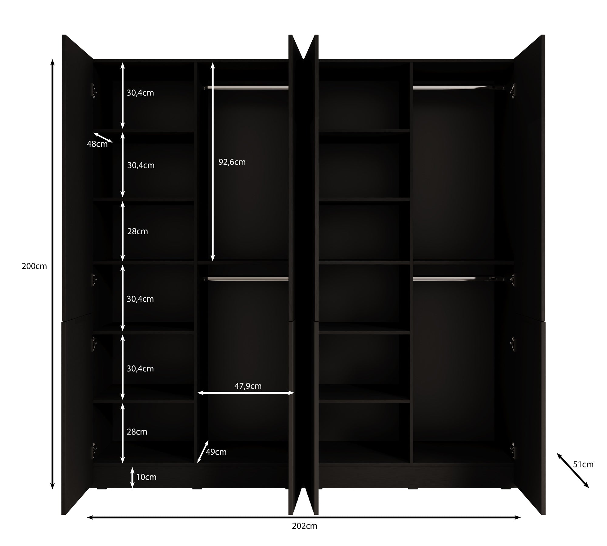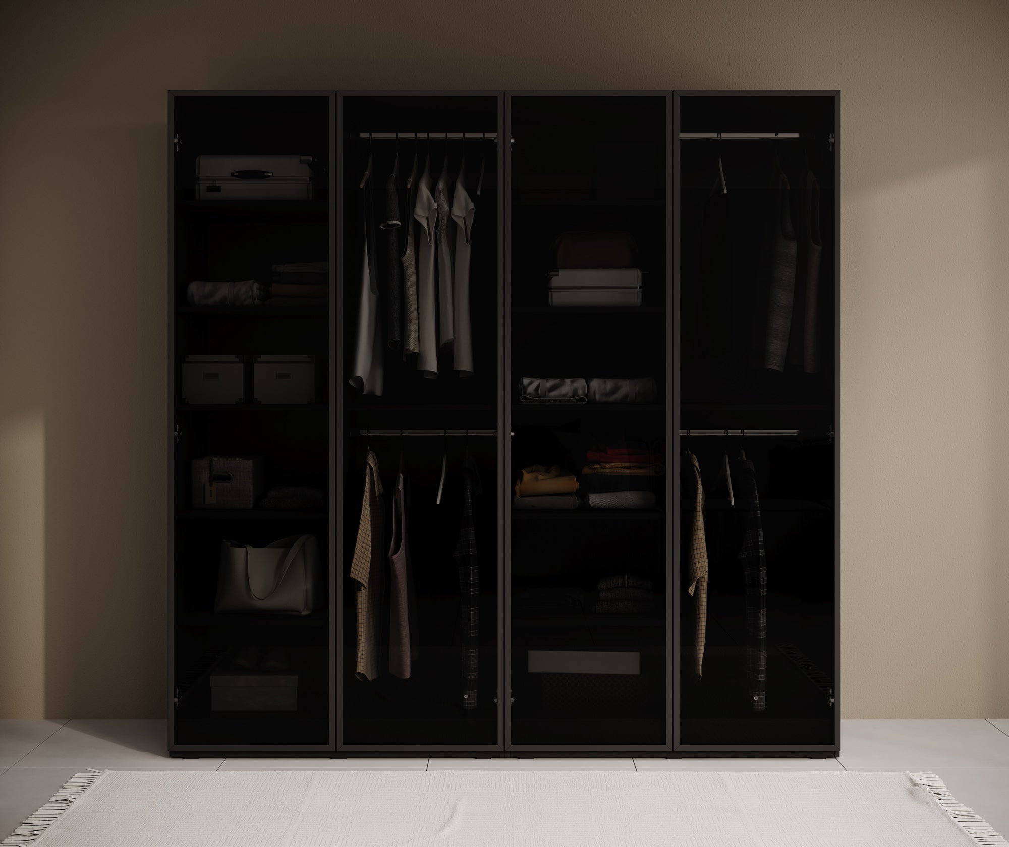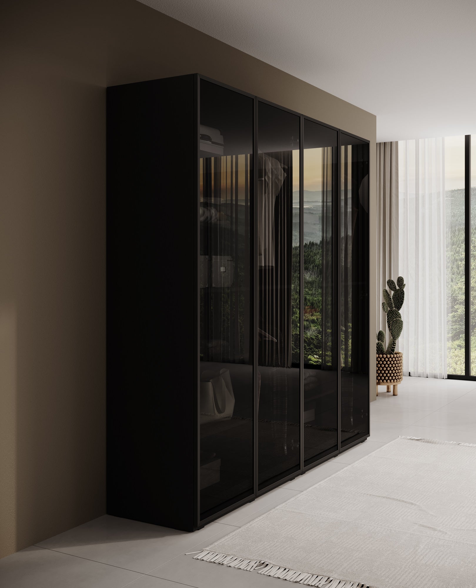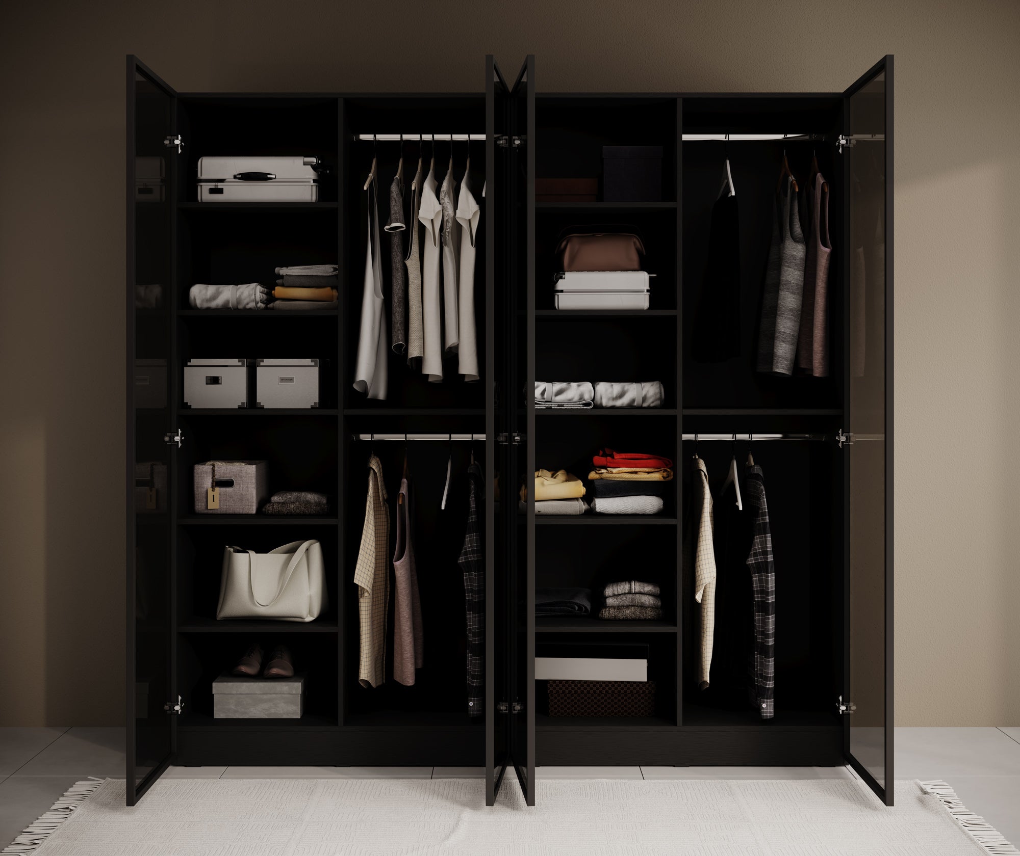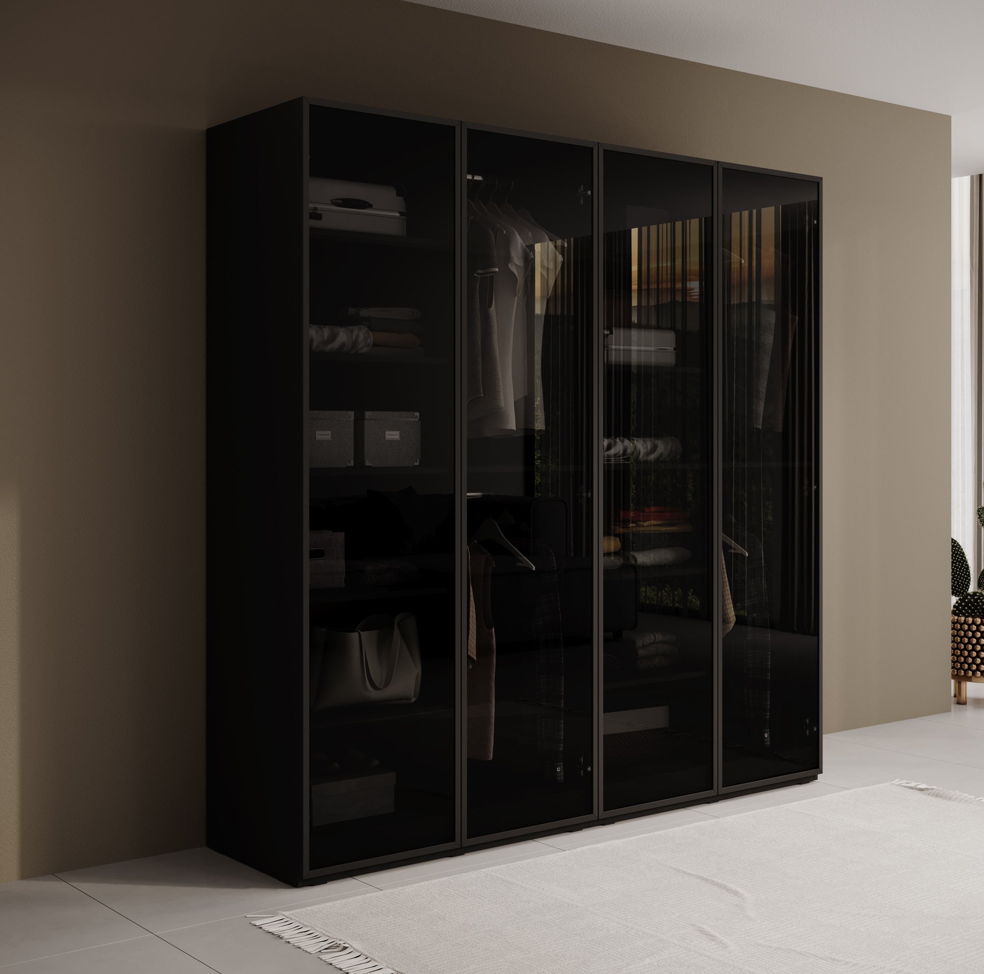 Meubella - Kledingkast Shelton - Zwart 1 - 202 cm - Met glas