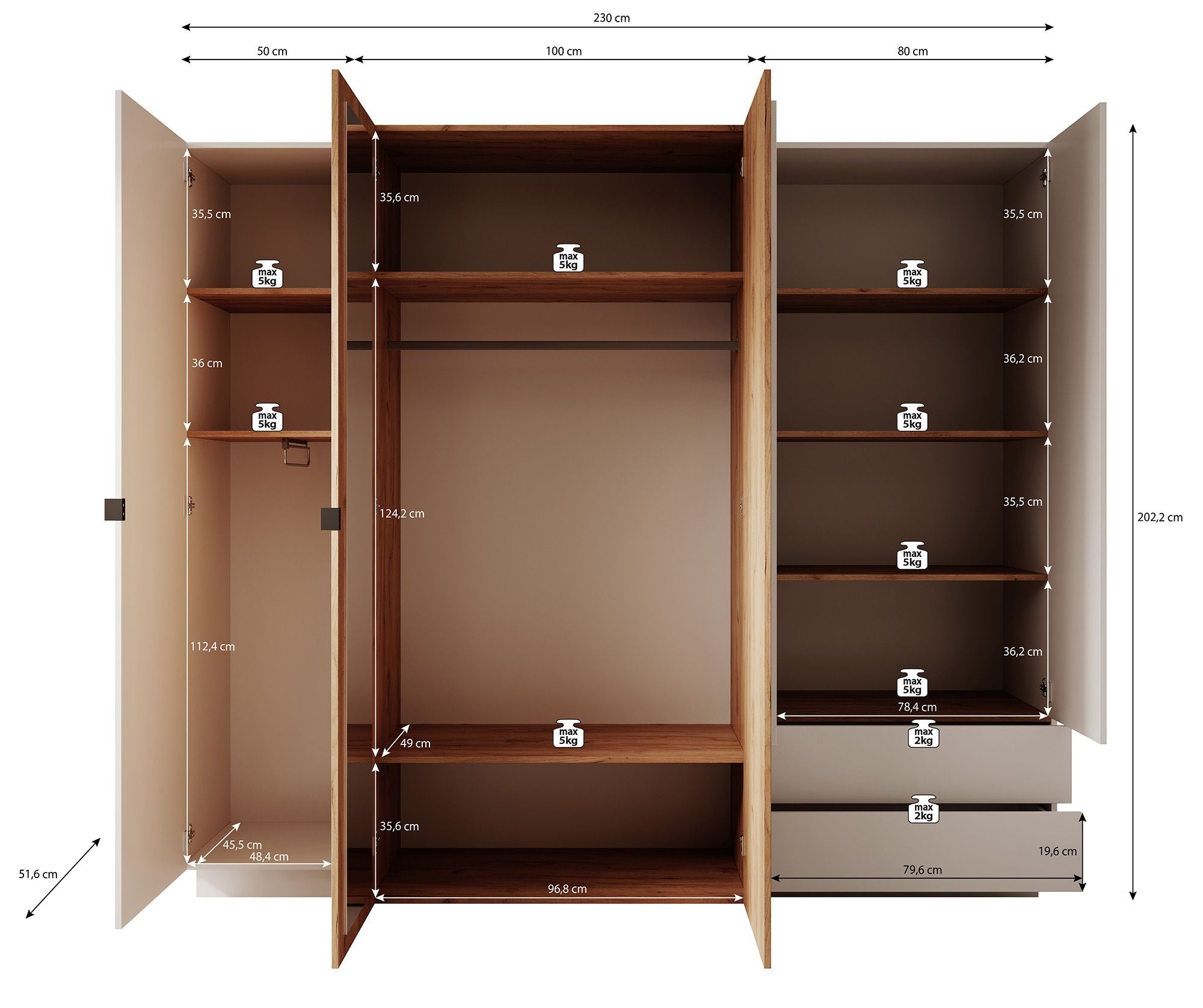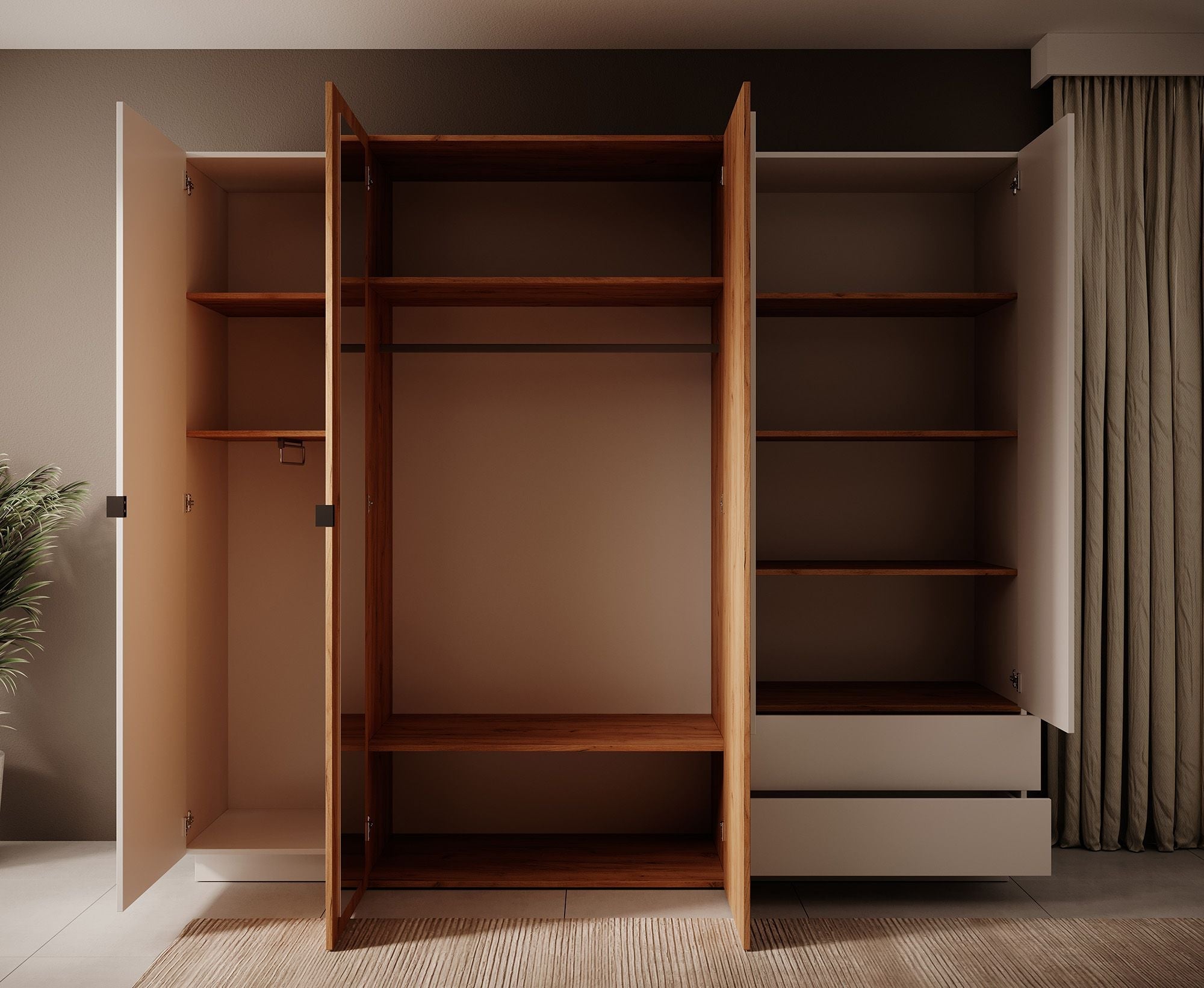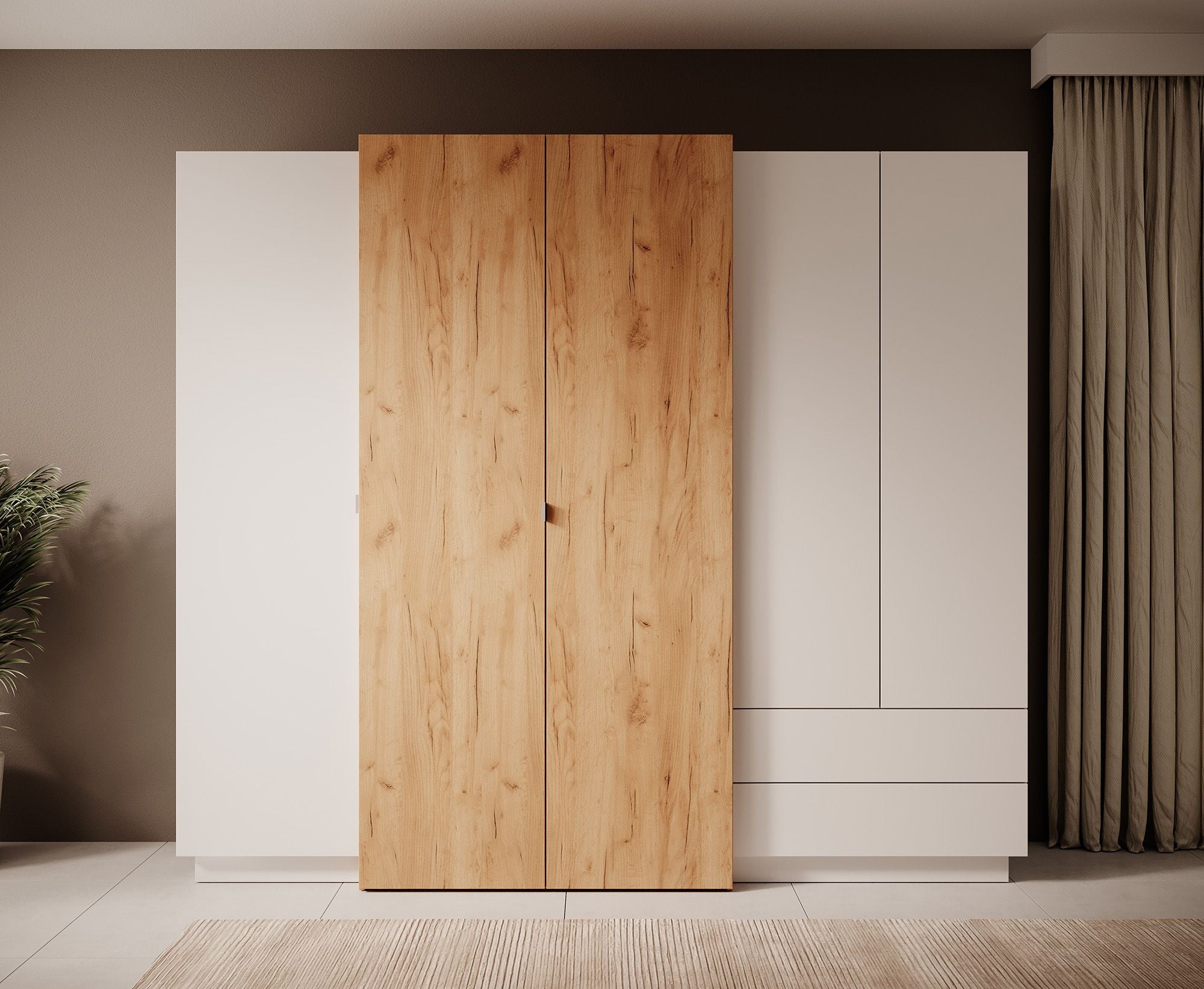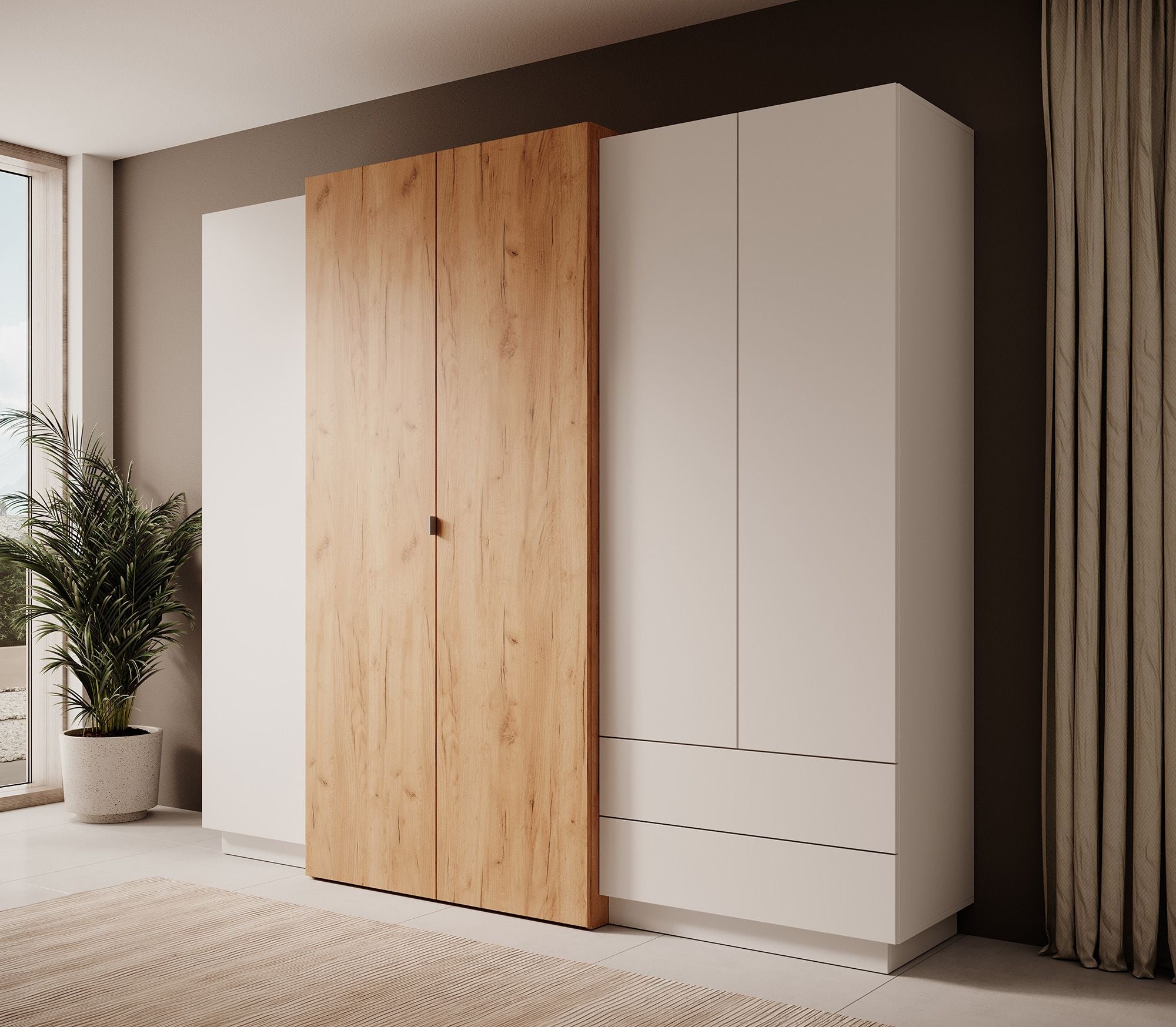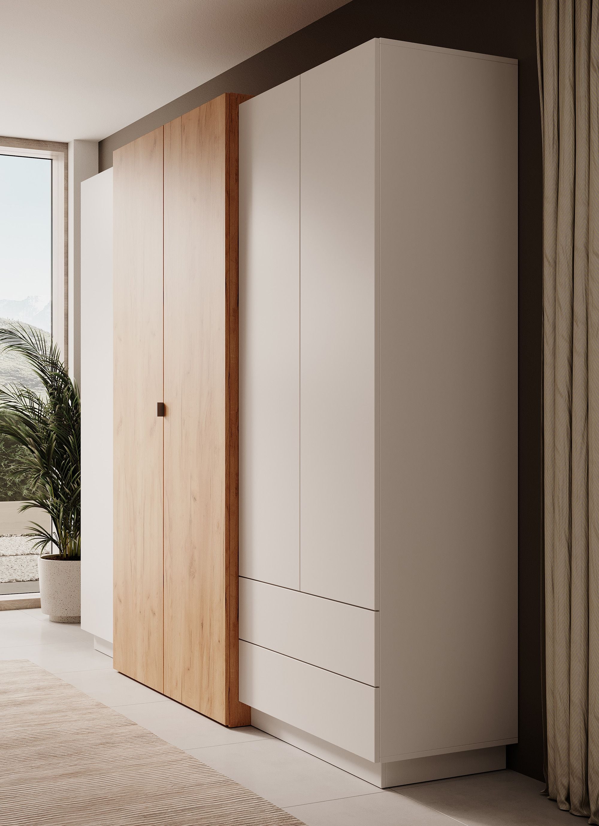 Meubella - Kledingkast Three - Wit - Eiken - 230 cm