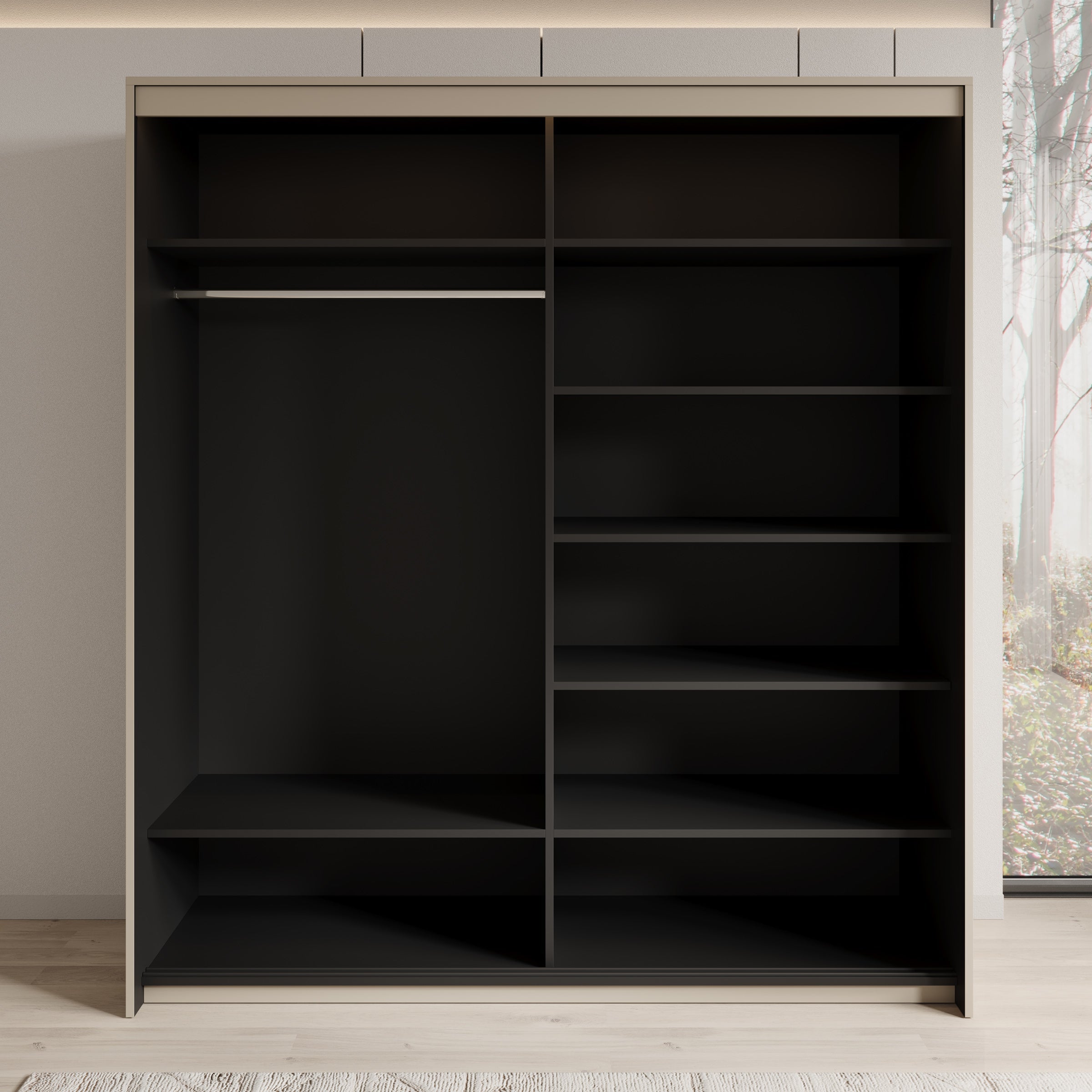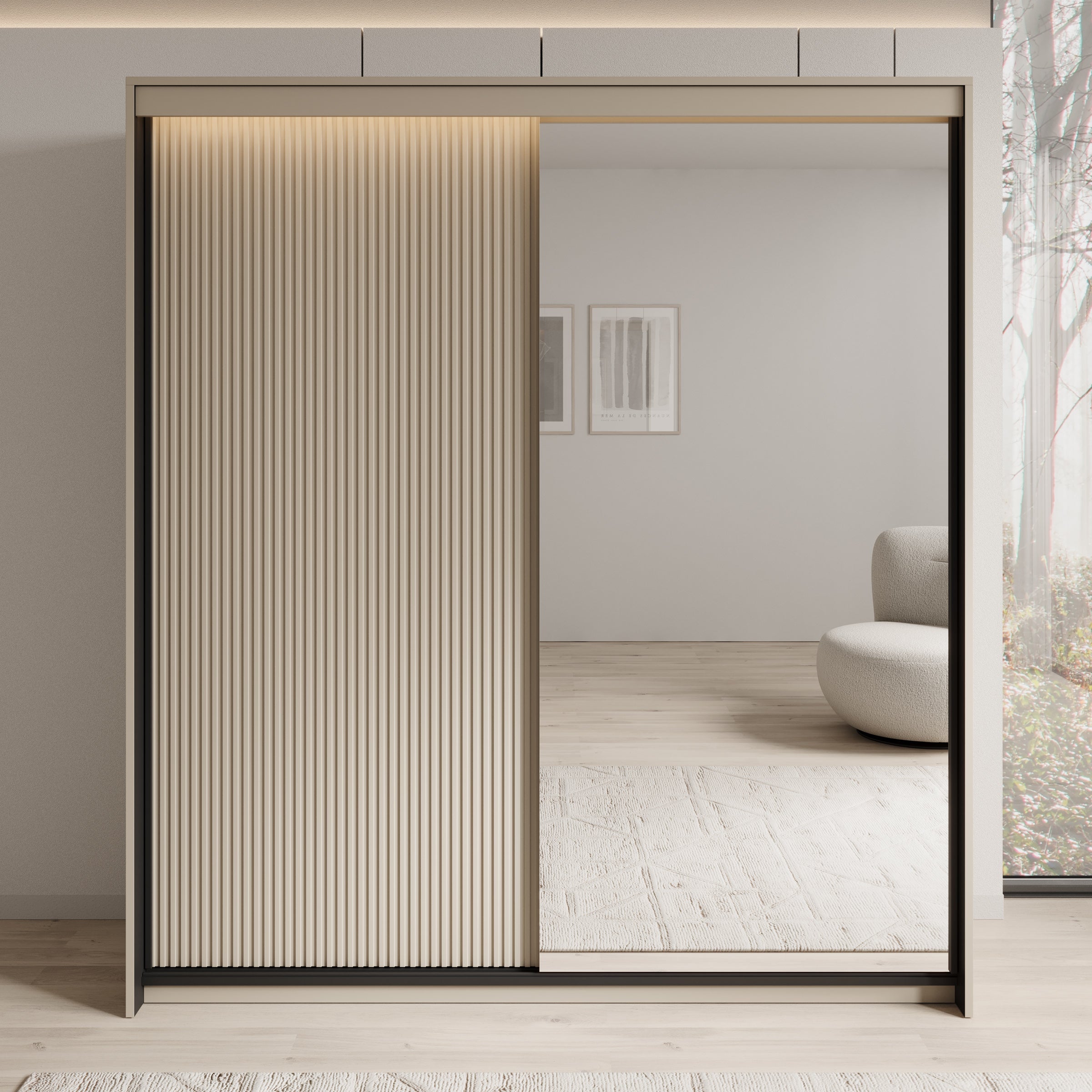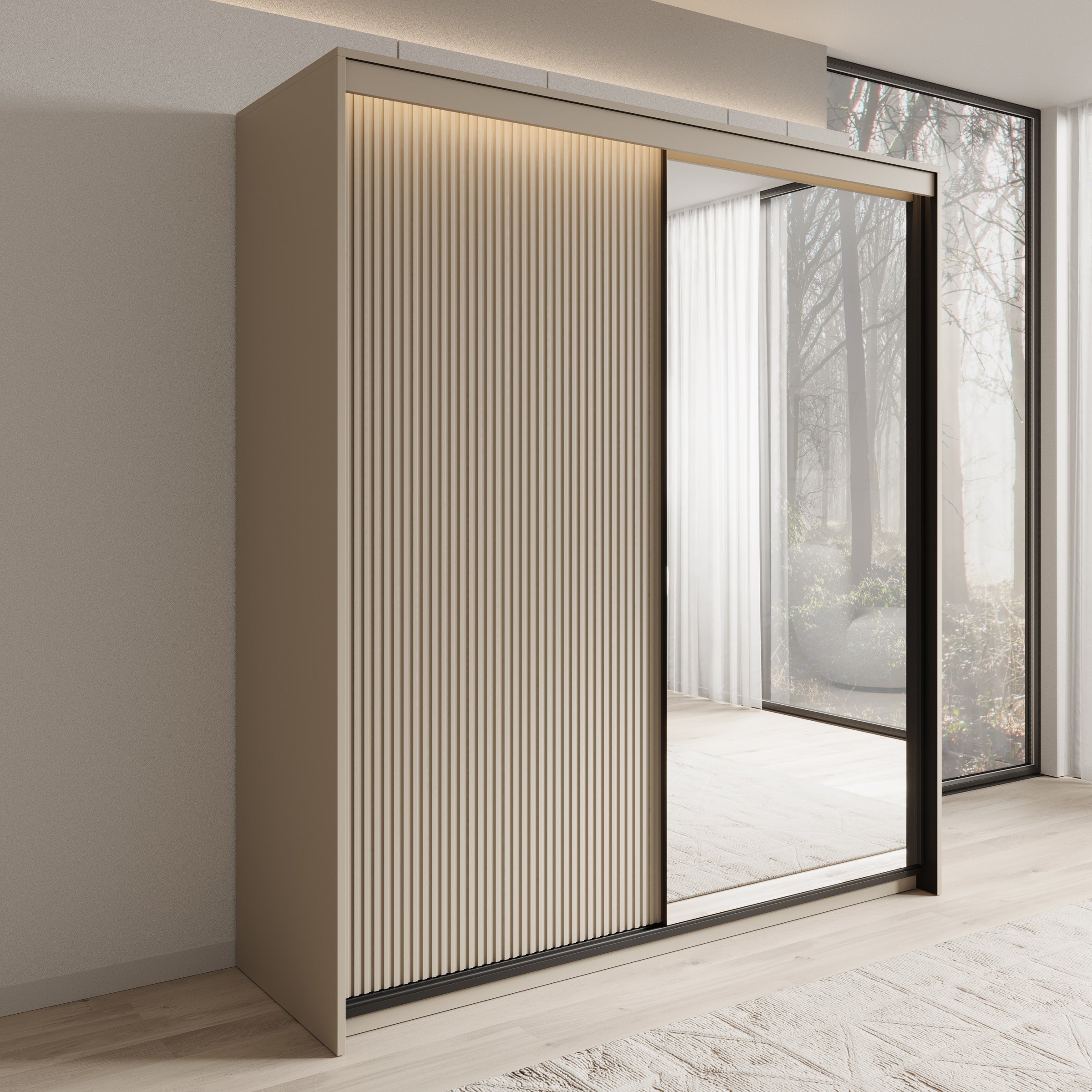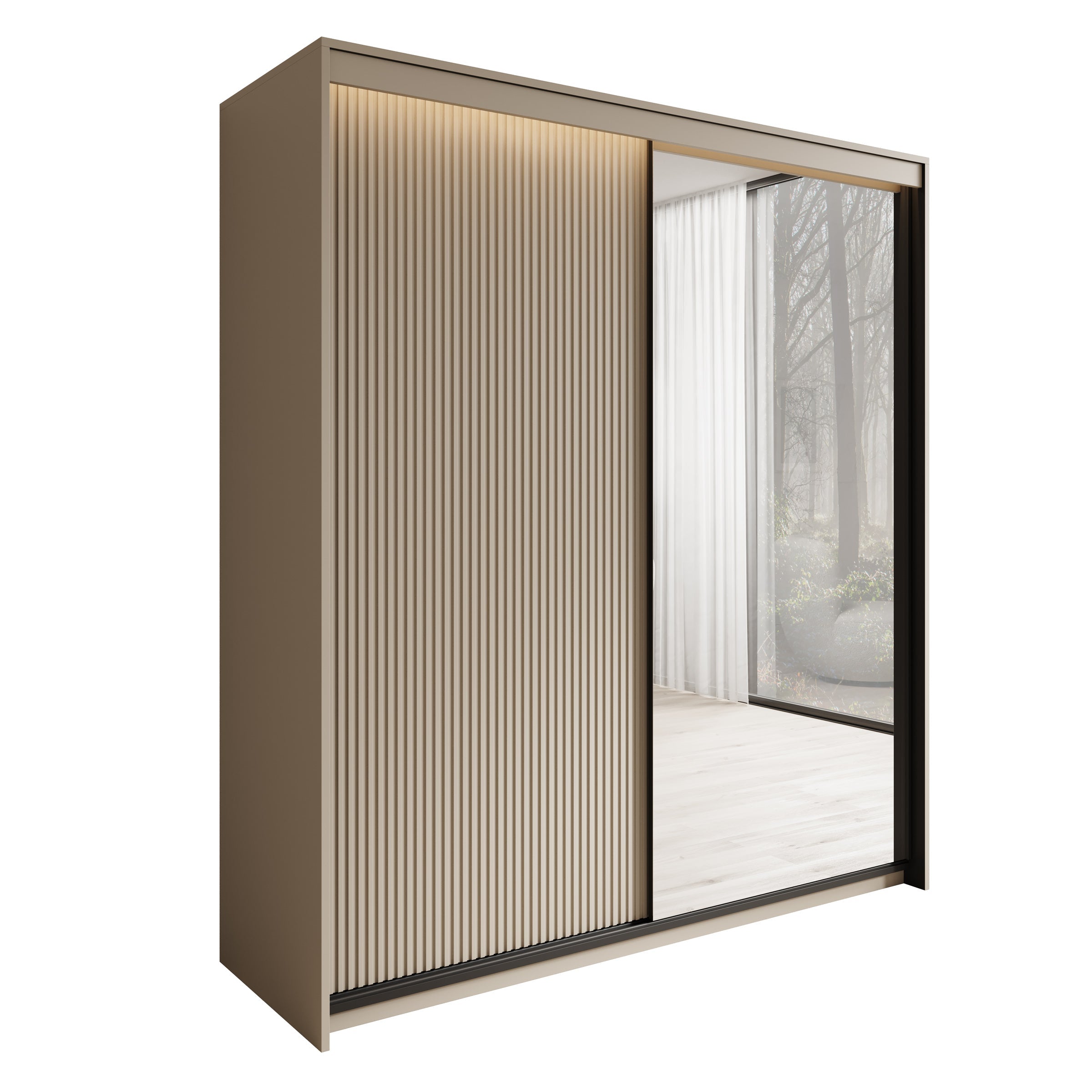 Meubella - Kledingkast Timoteo - Beige - 200 cm - Met spiegel