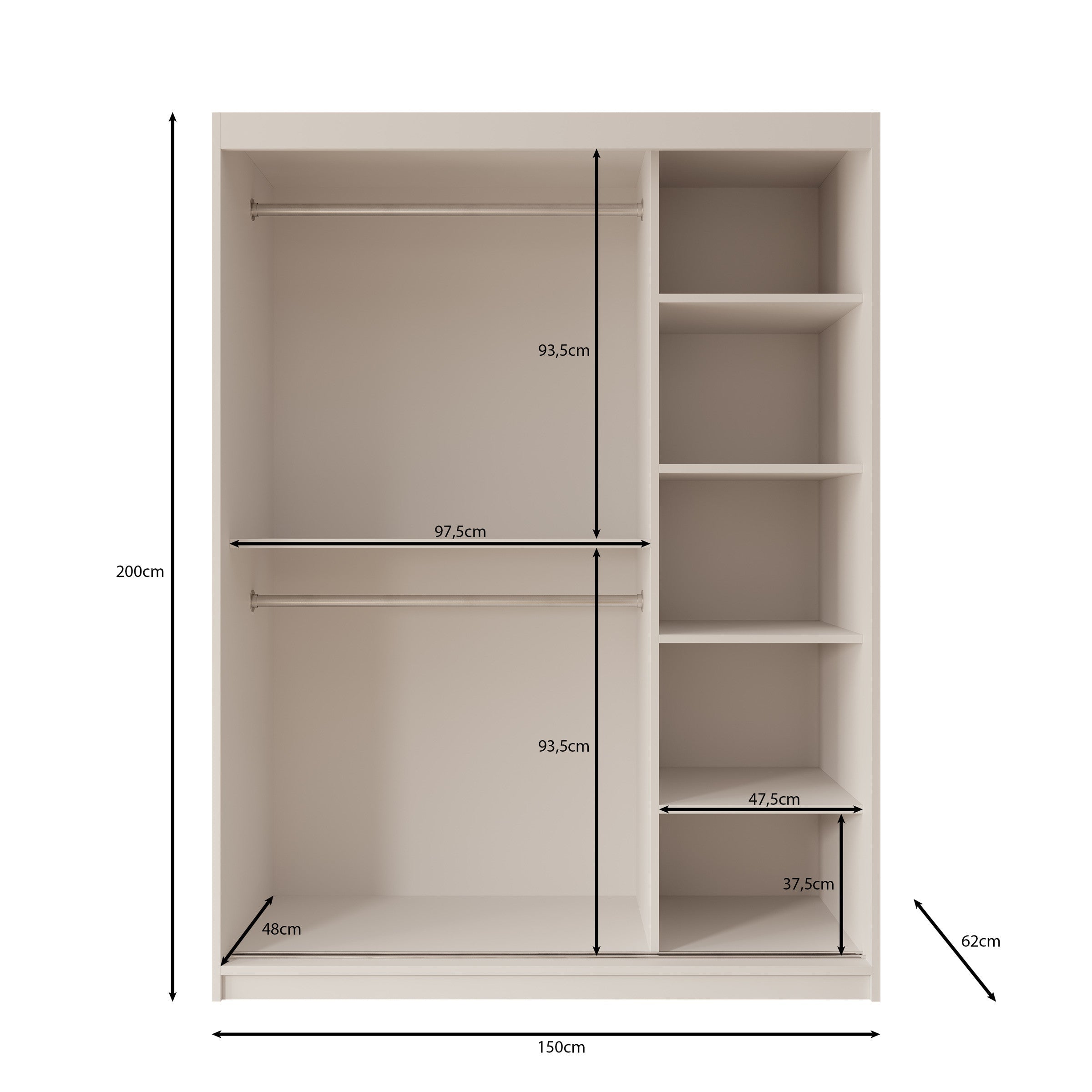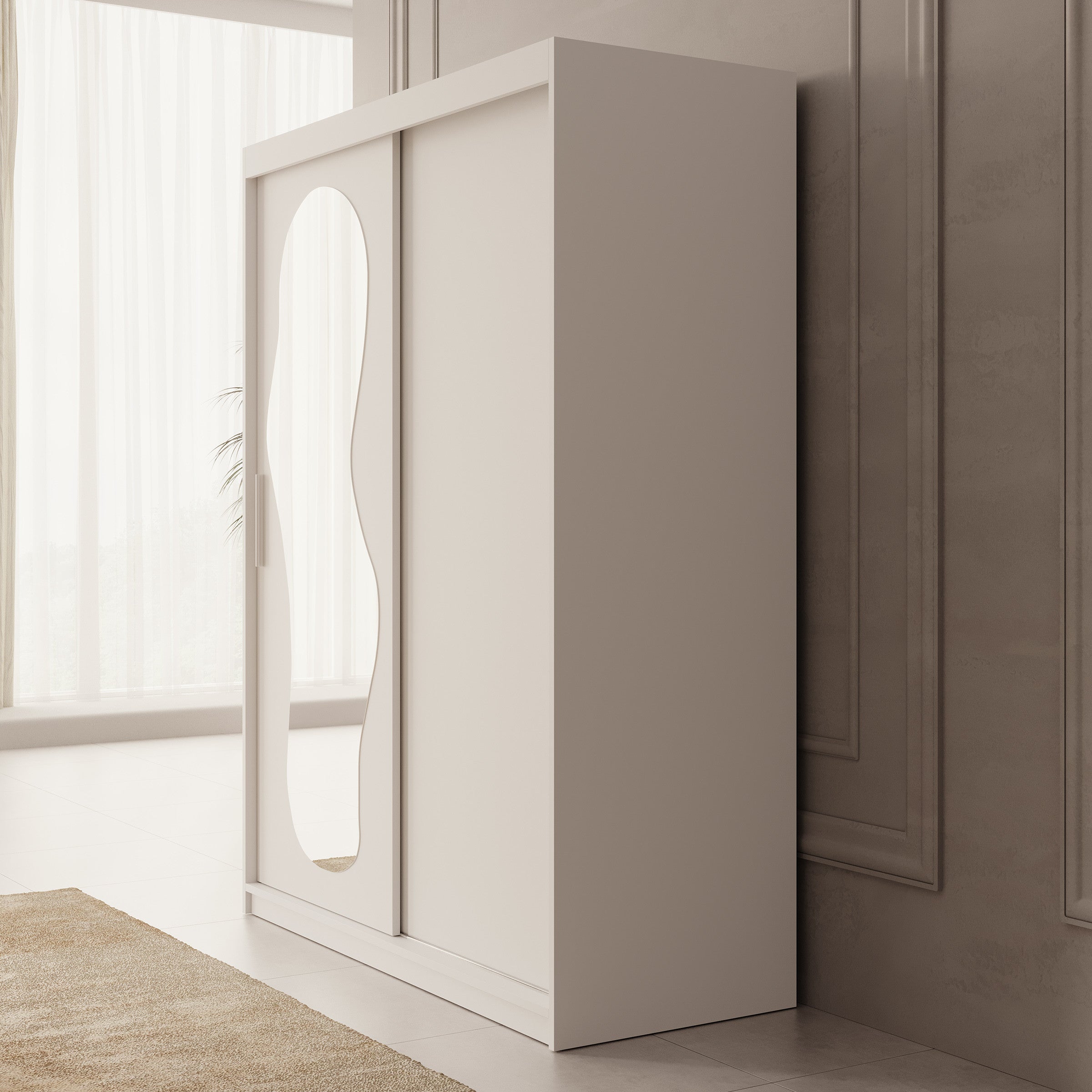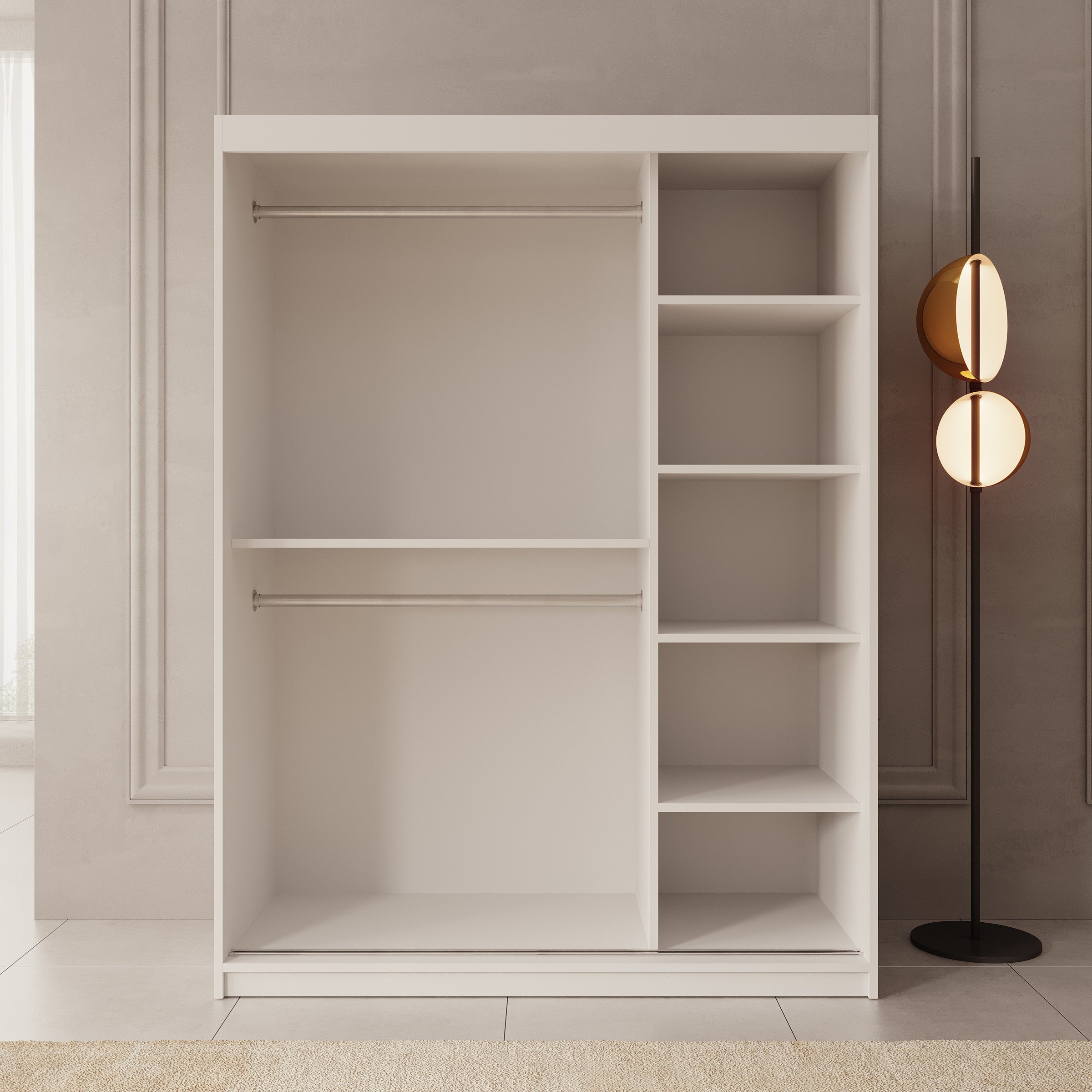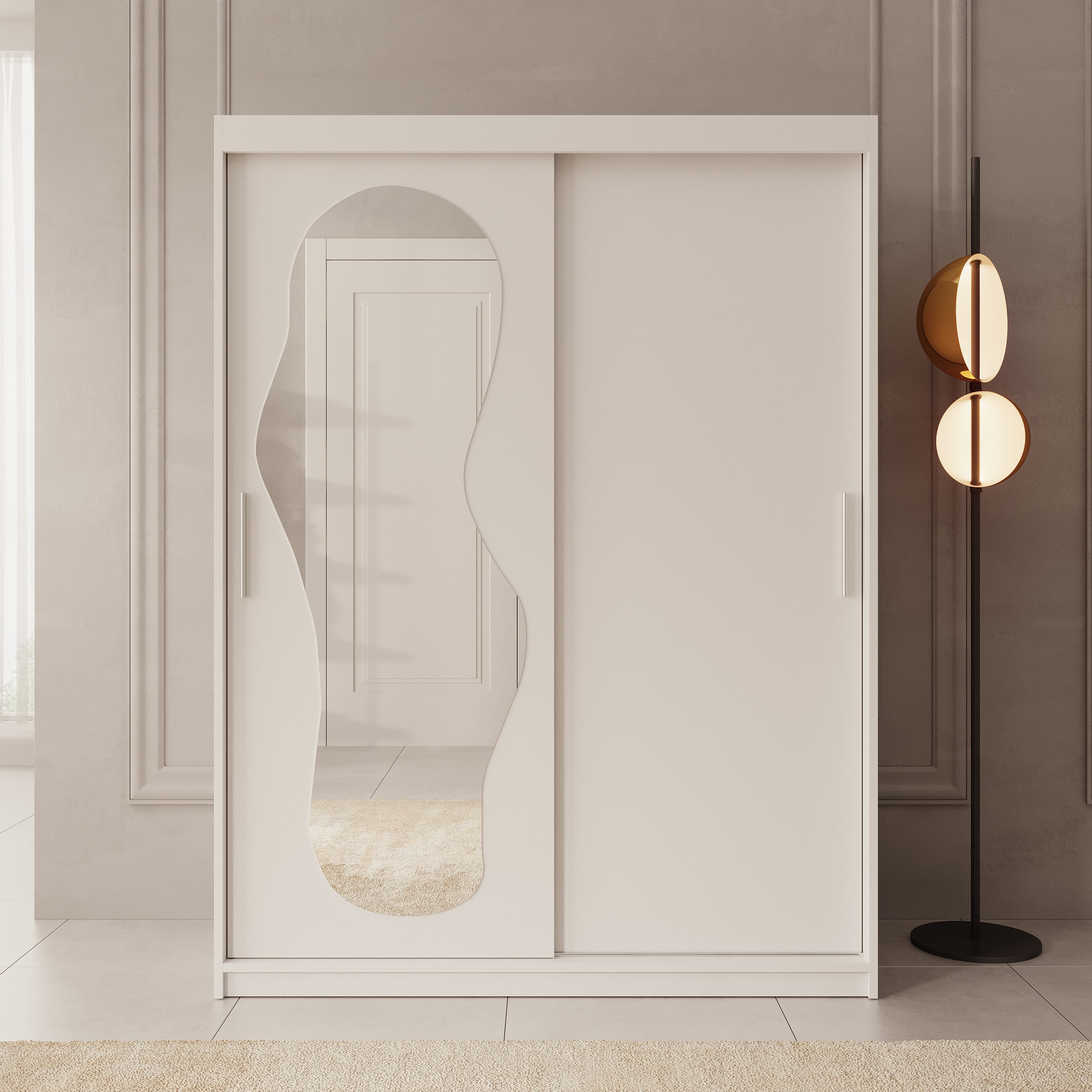 Meubella - Kledingkast Ulysses - Wit - 150 cm - Met spiegel