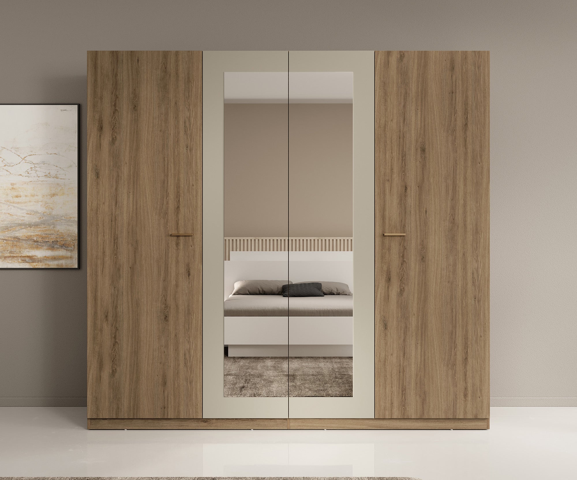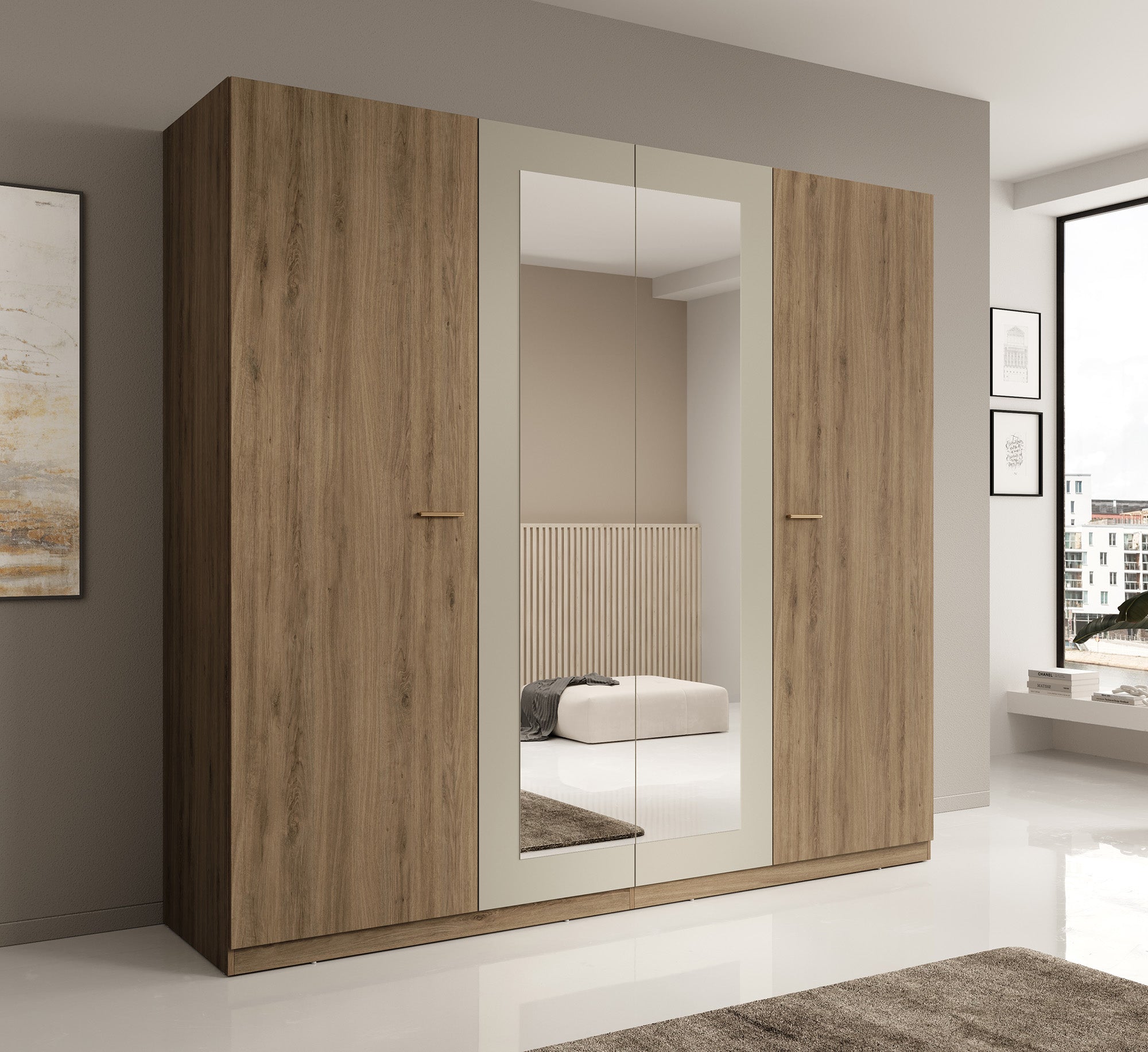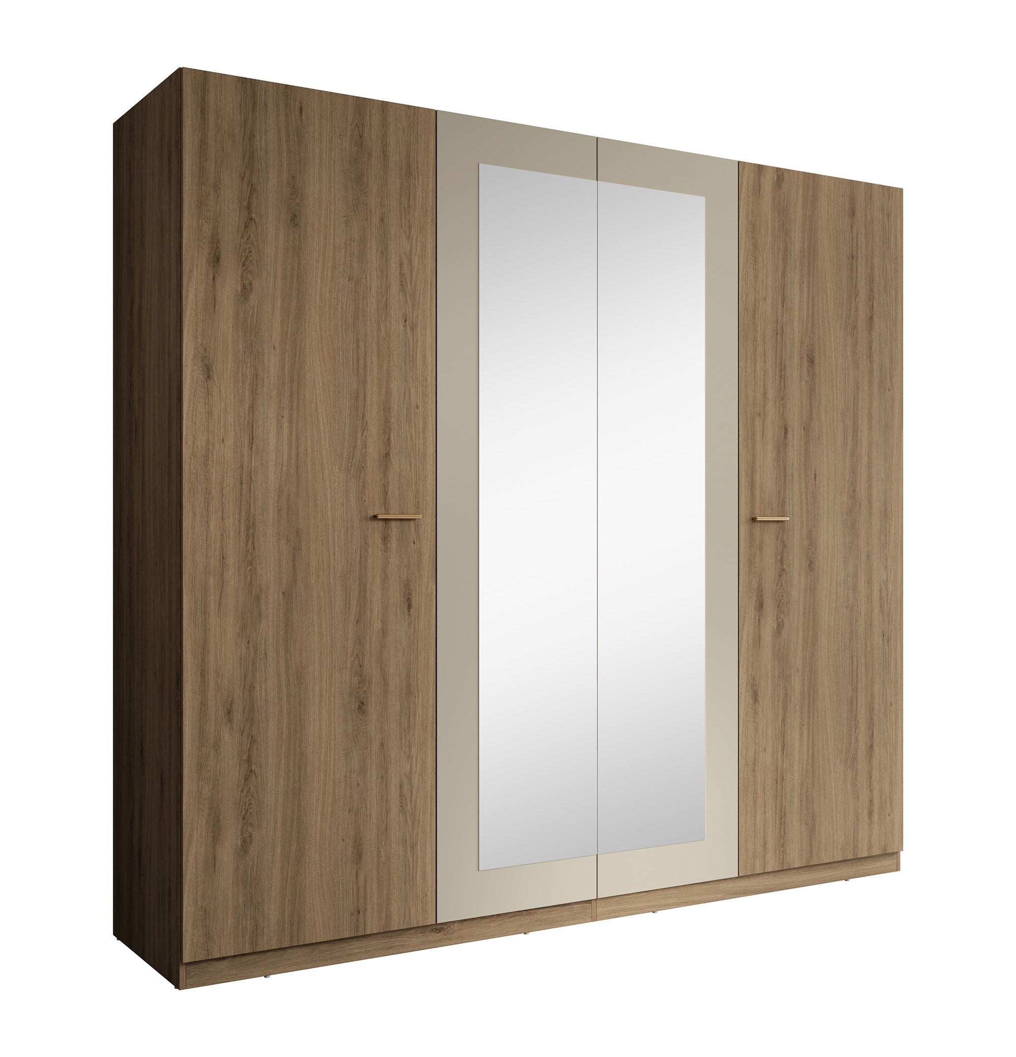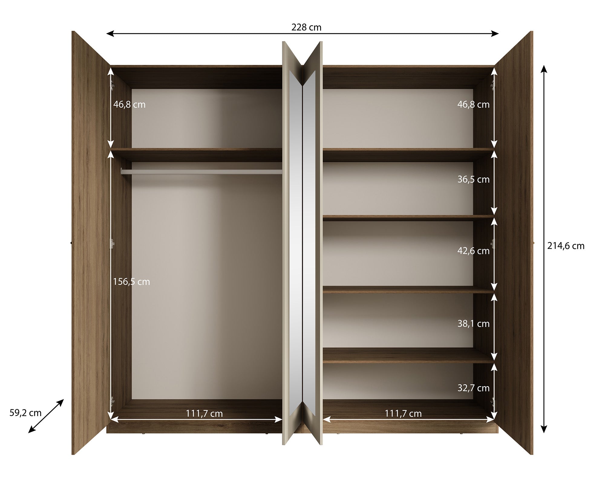 Meubella - Kledingkast Valduz - Eiken - 228 cm - Met spiegel