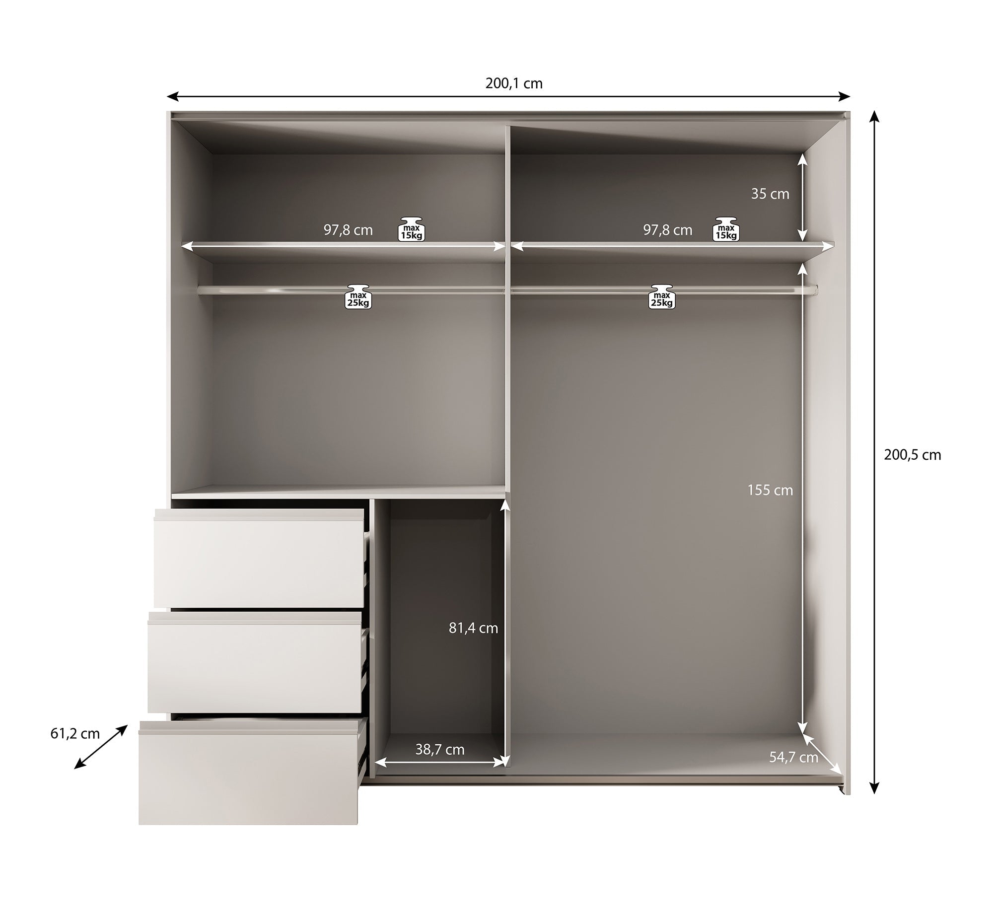 Meubella - Kledingkast Walter - Wit - 200 cm