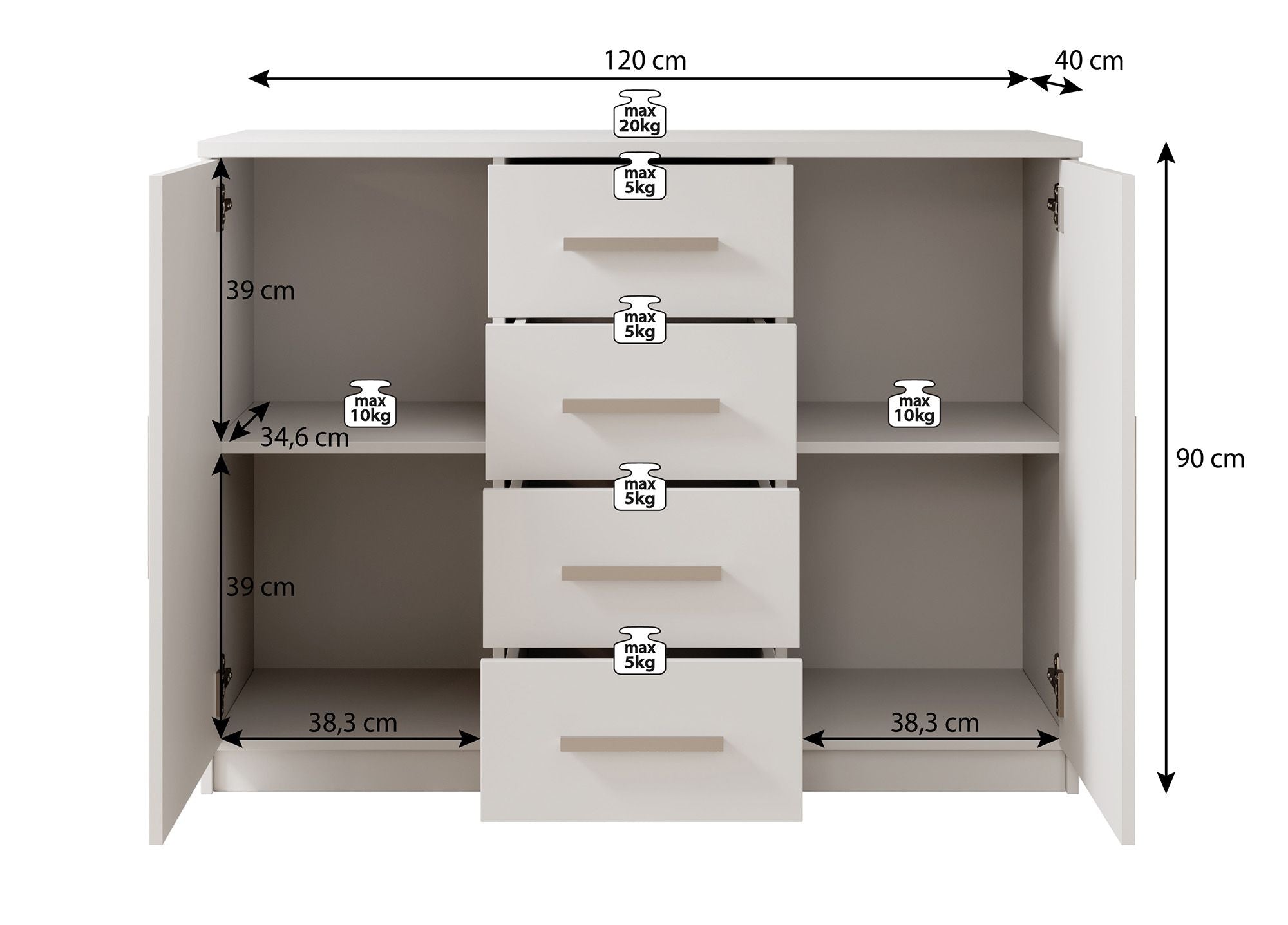 Meubella Ladekast Blake - Wit - 120 cm