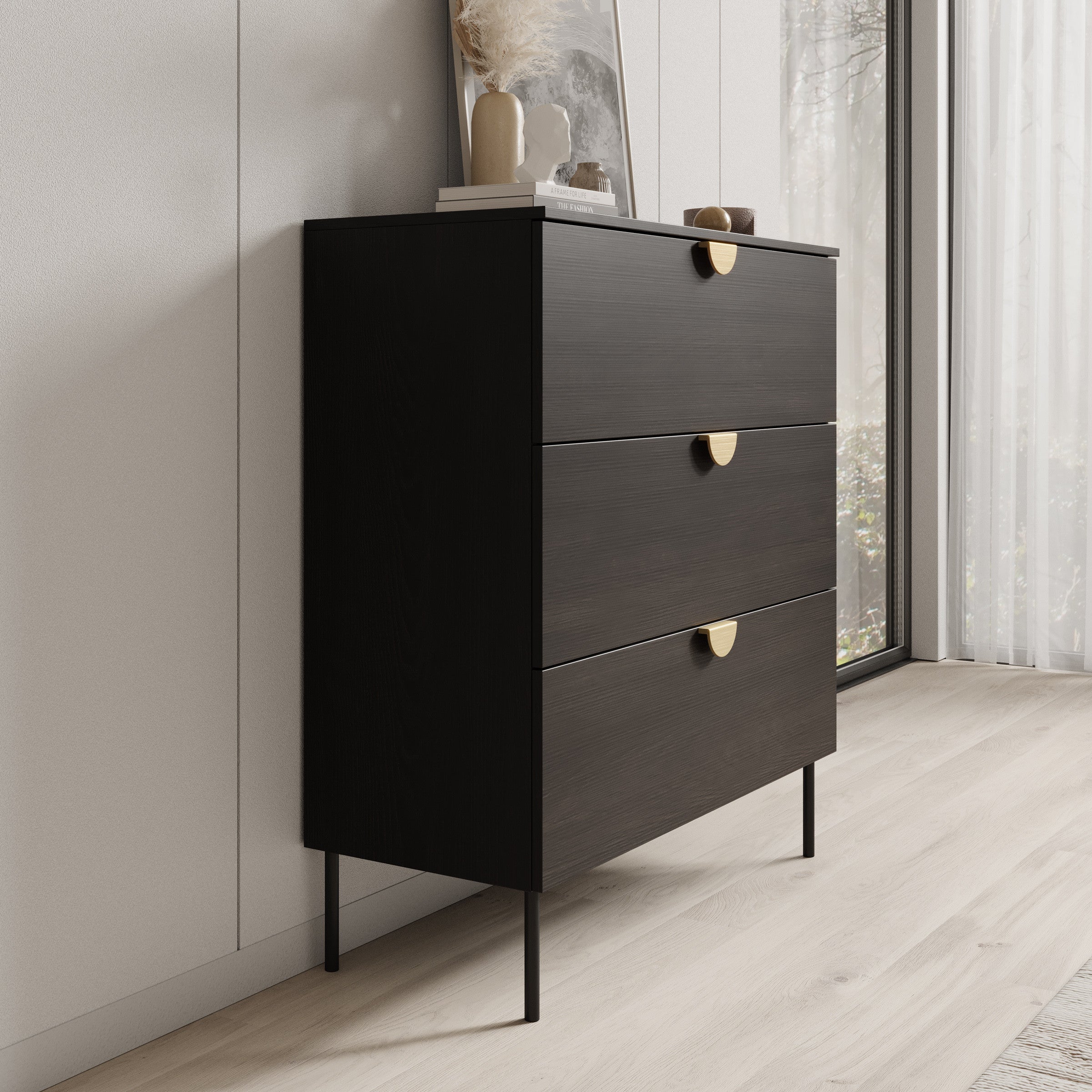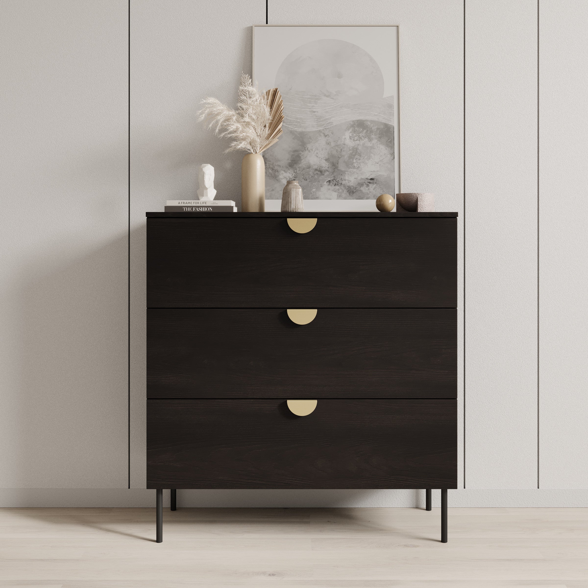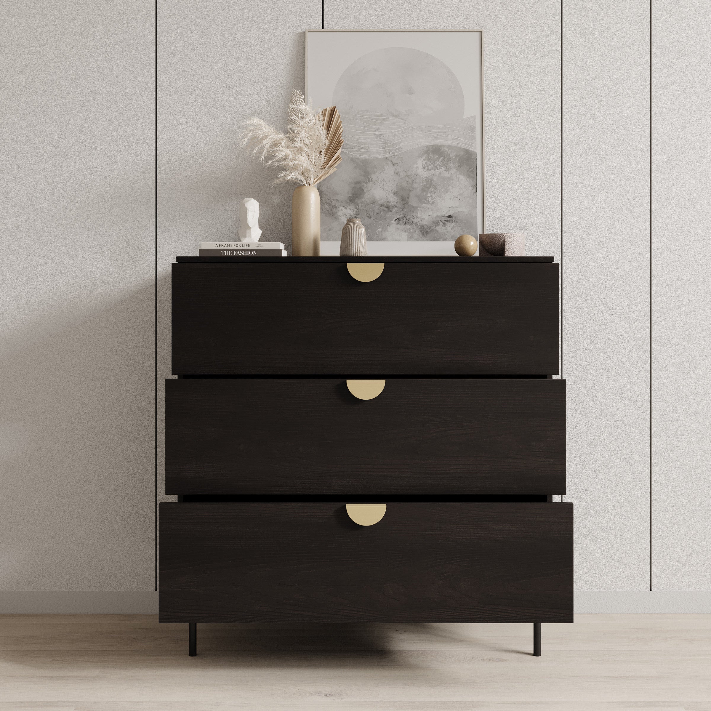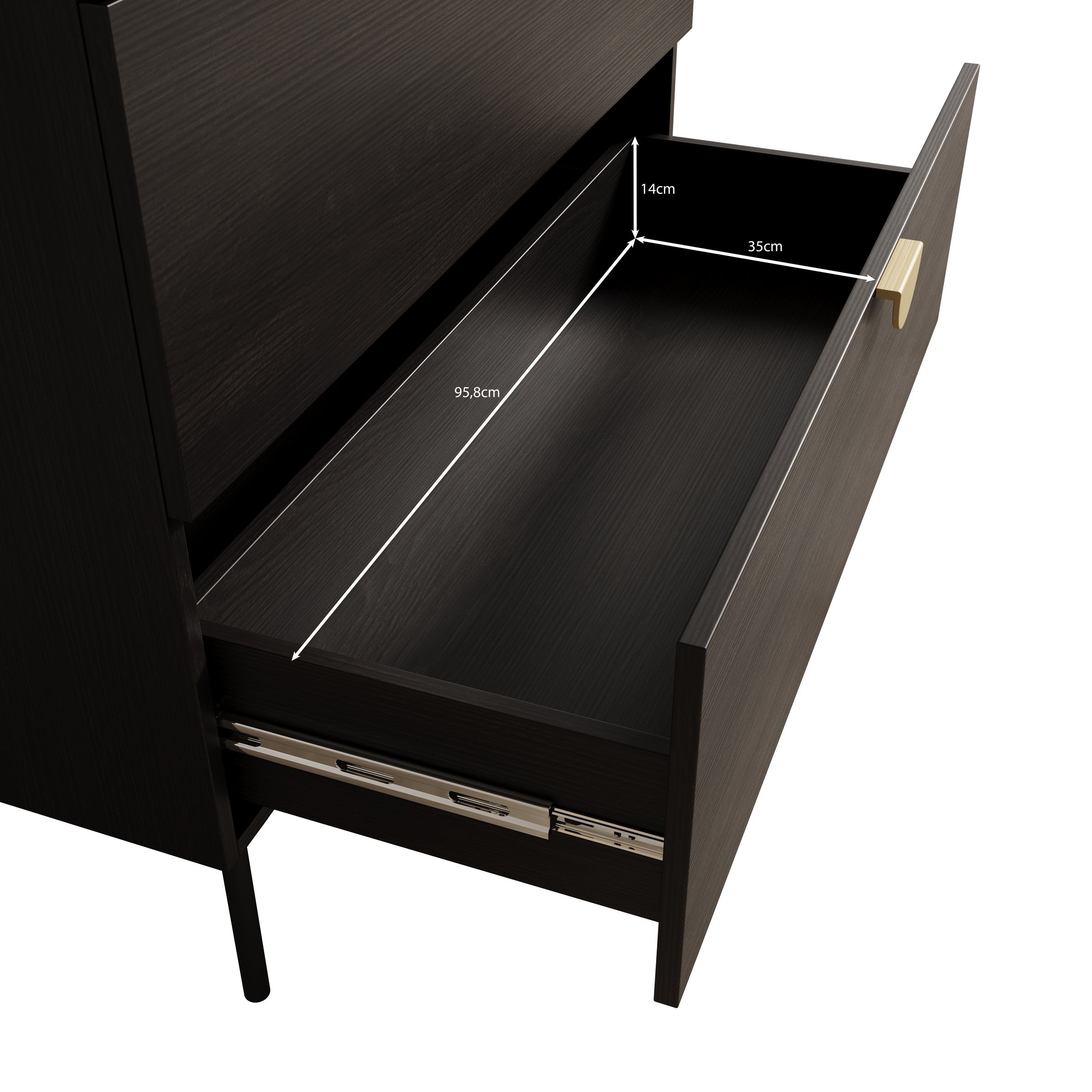 - Lades met goudkleurige handgrepen
