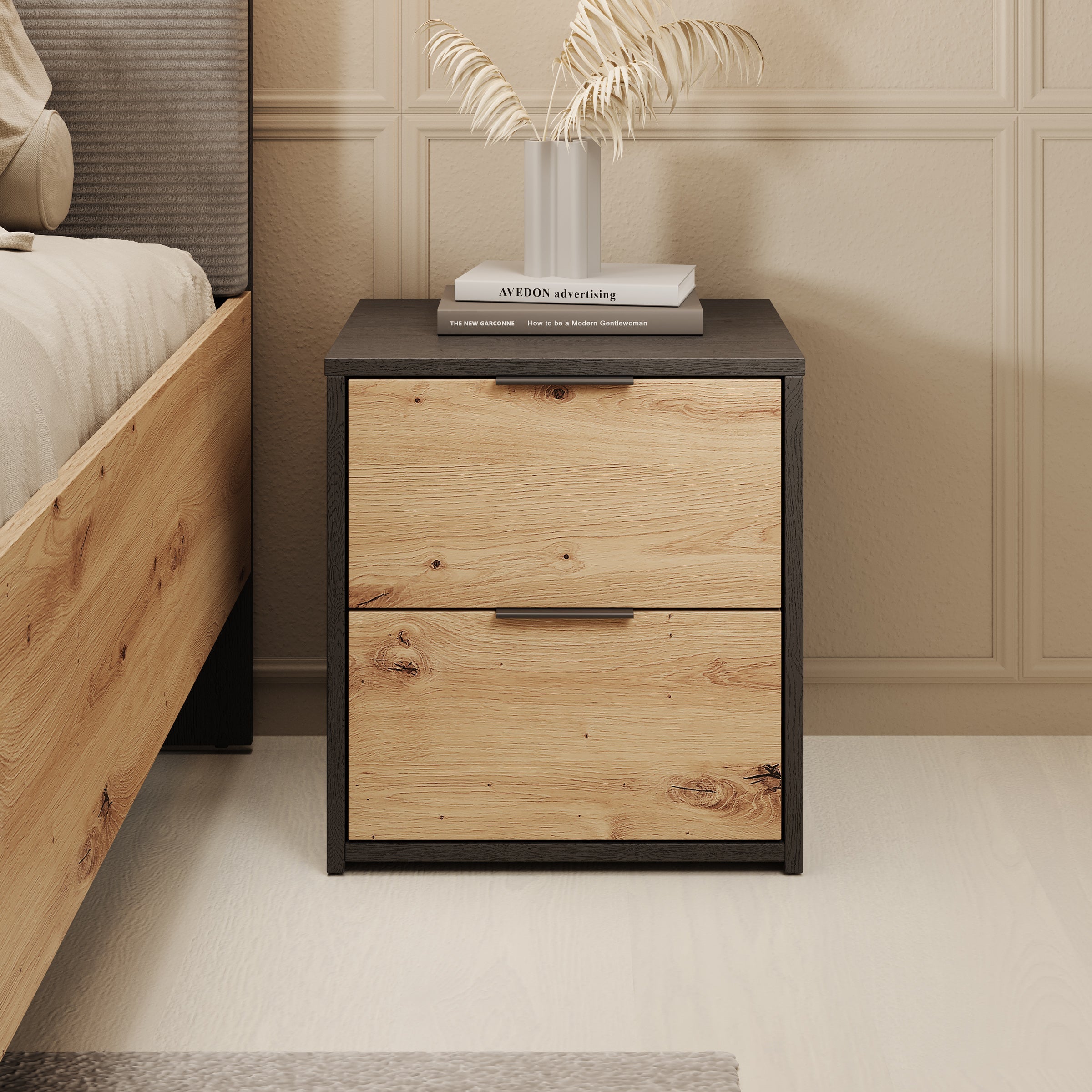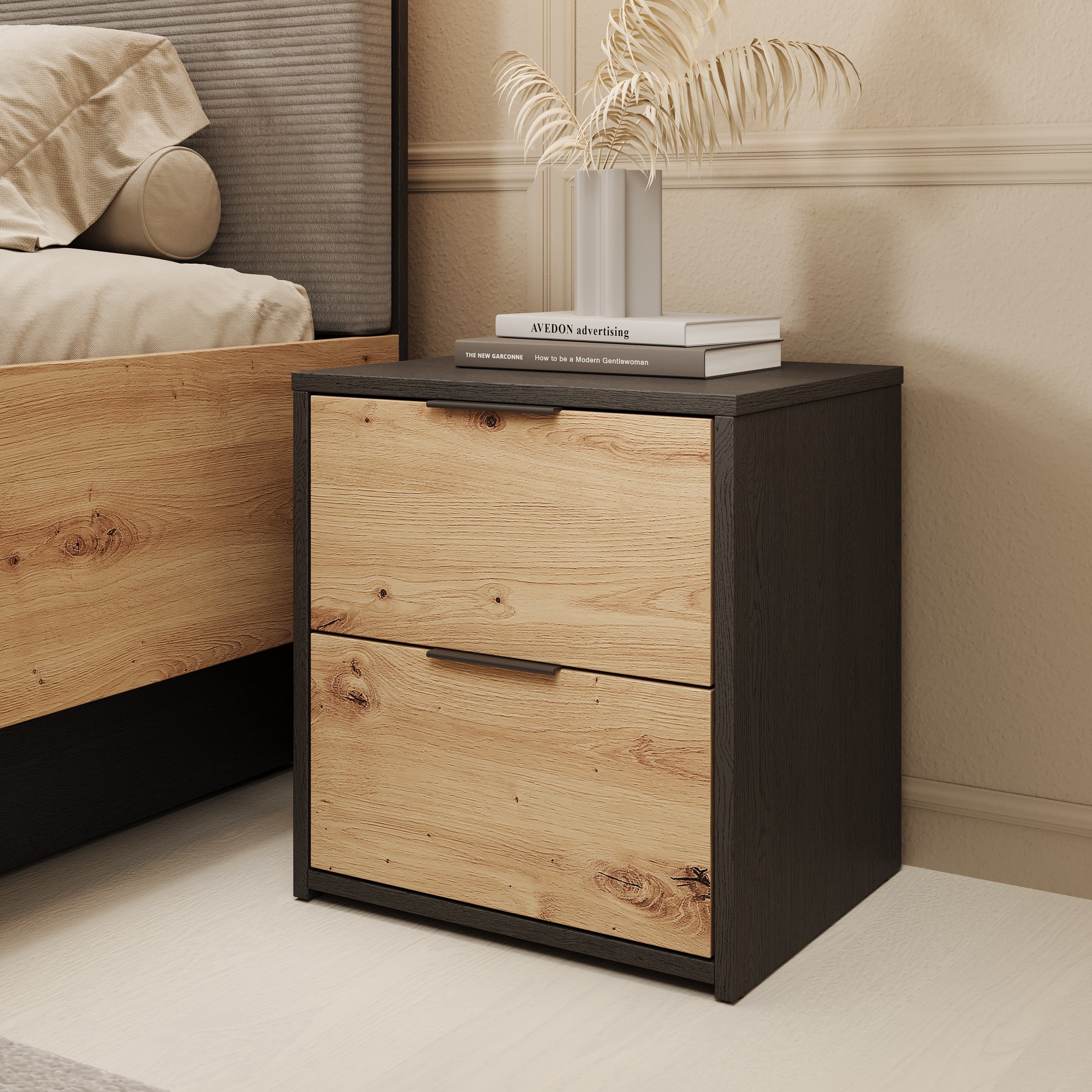Meubella - Nachtkastje Augustus - Eiken - Zwart - 44 cm - Set van 2