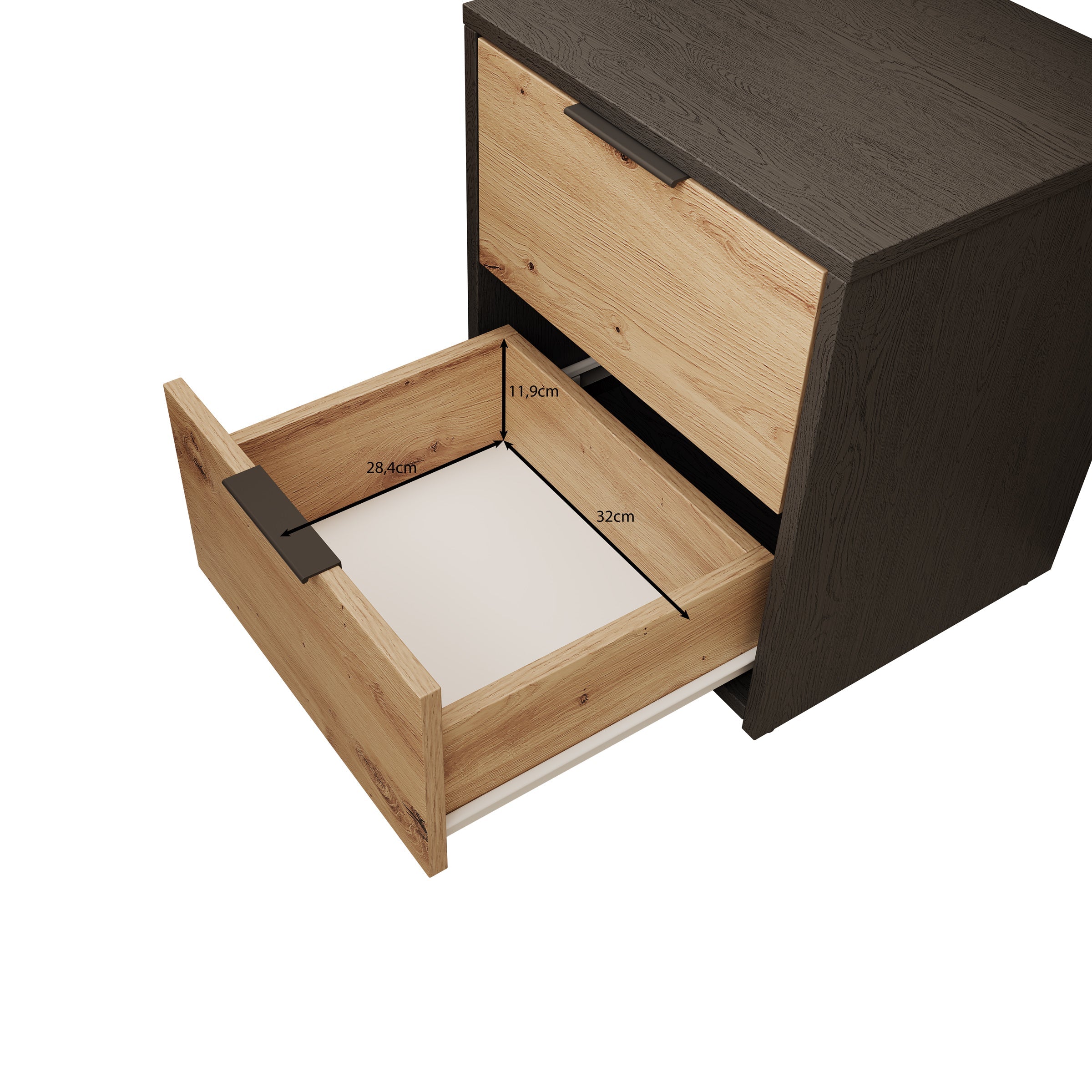 - Lades met zwarte handgrepen