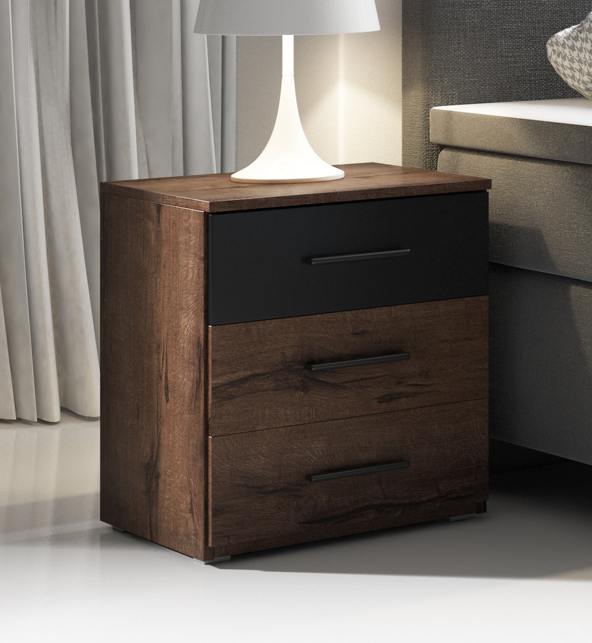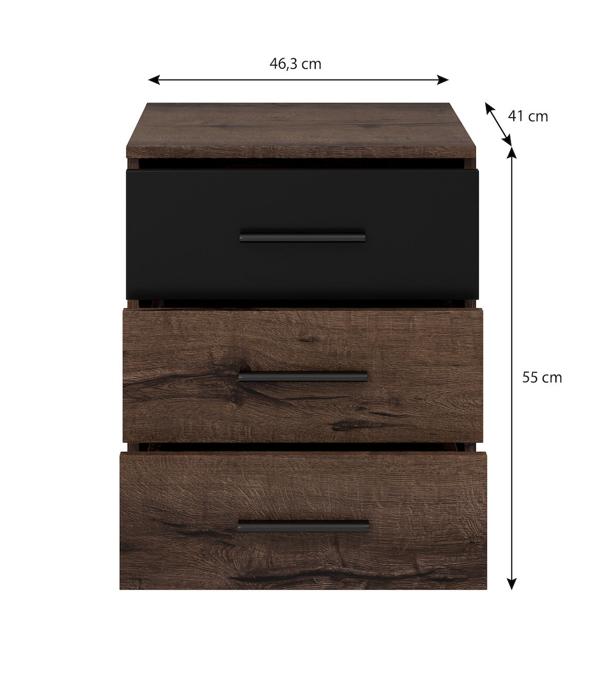 Meubella - Nachtkastje Brown - Zwart - Eiken - 46 cm