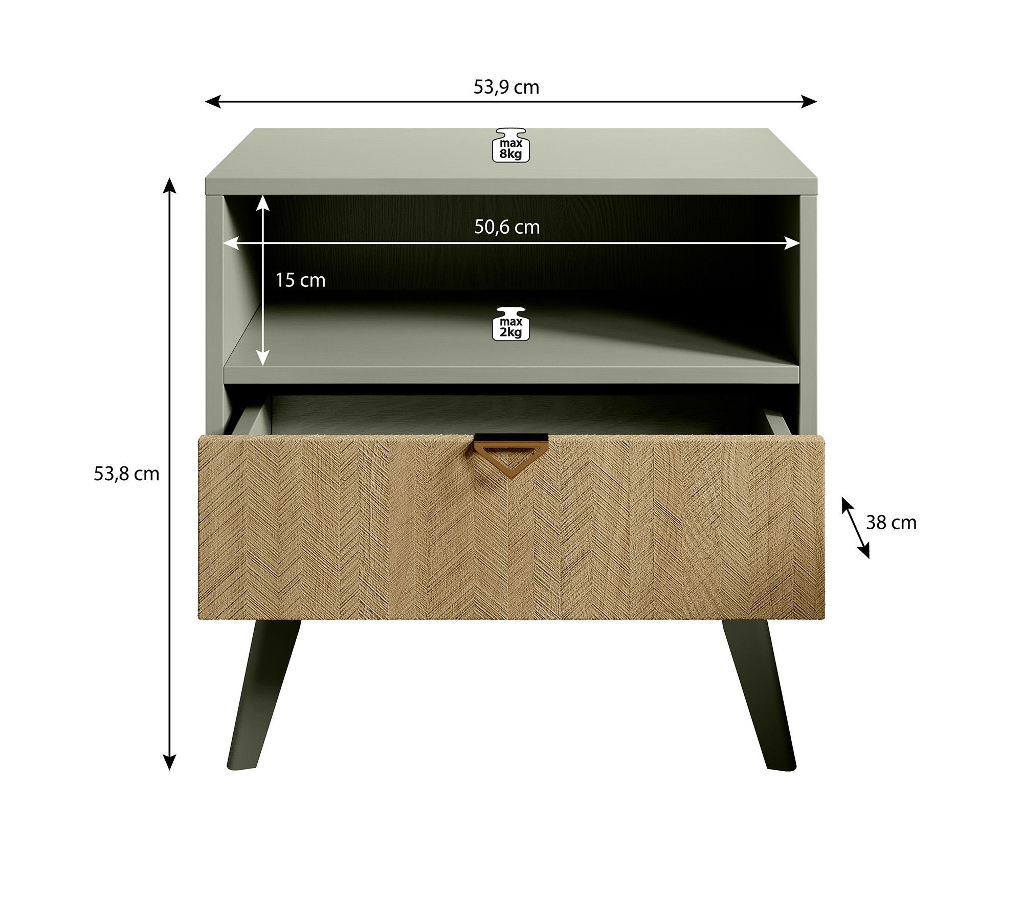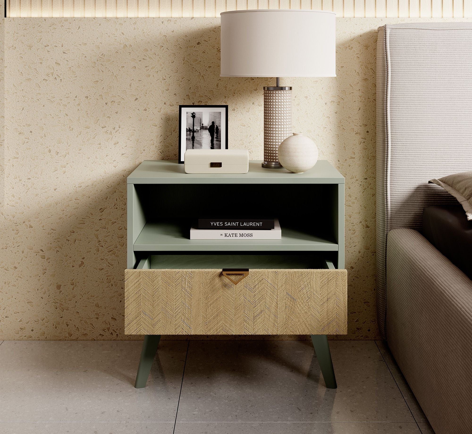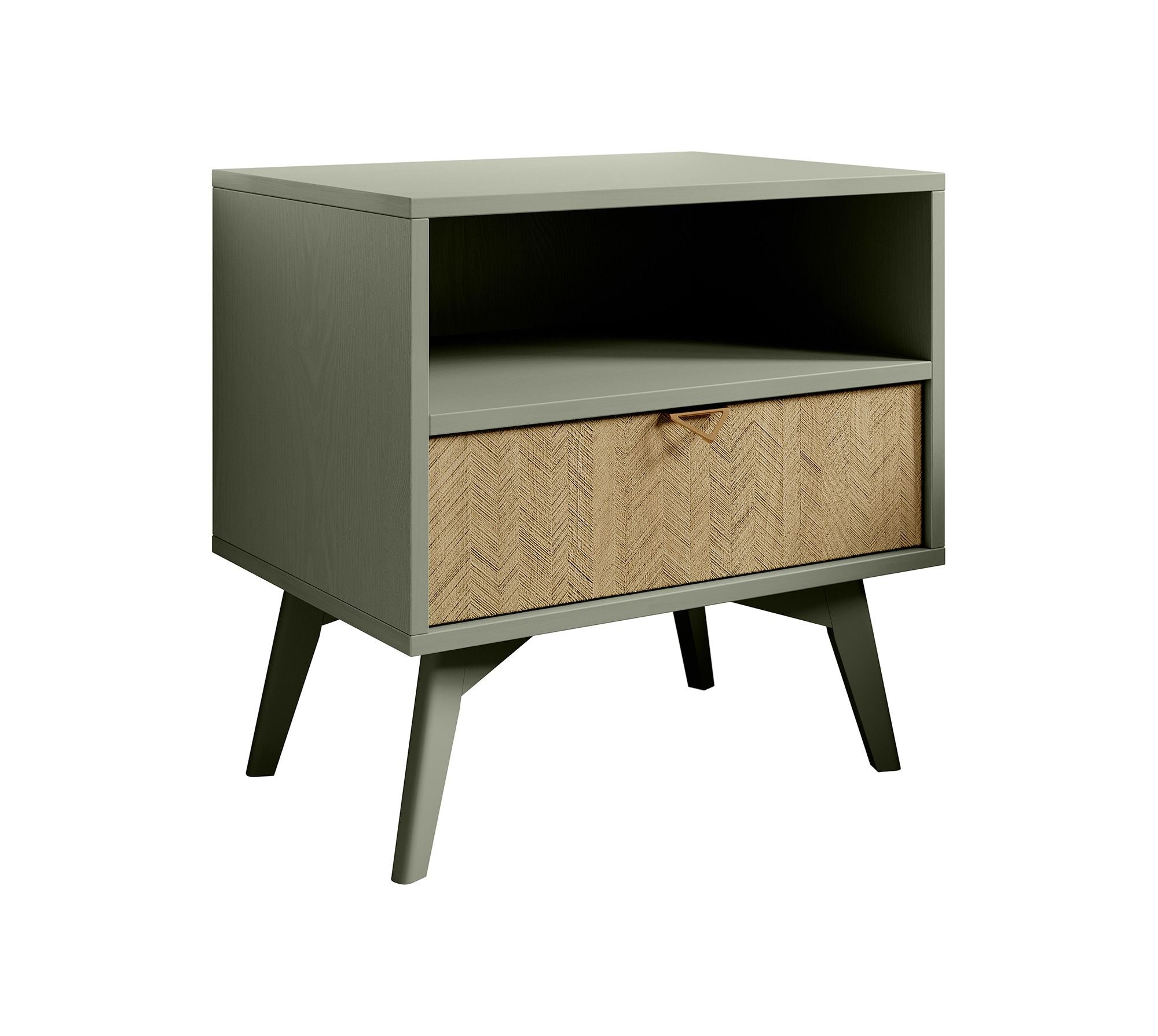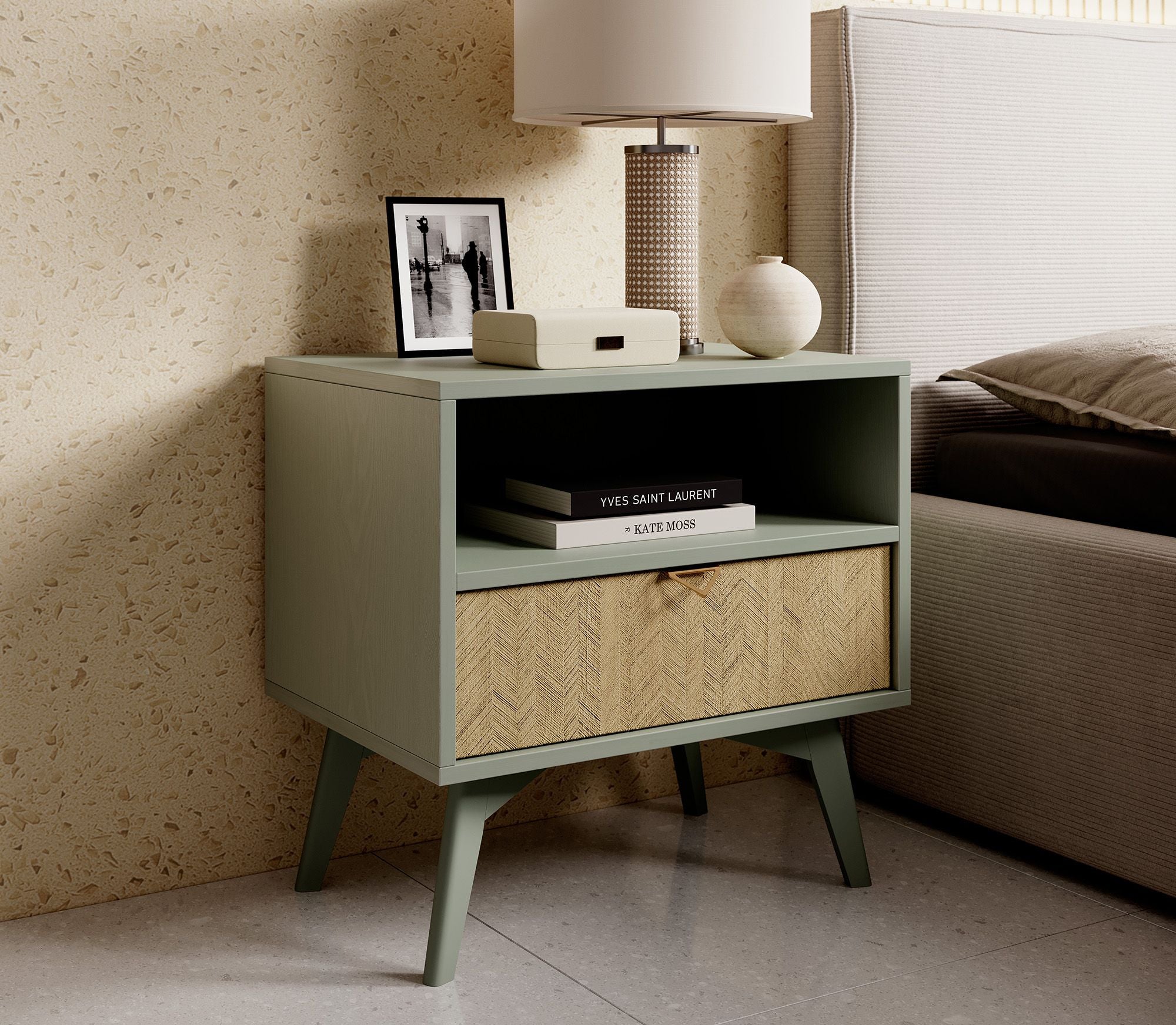 Meubella - Nachtkastje Essence - Groen - Licht eiken
