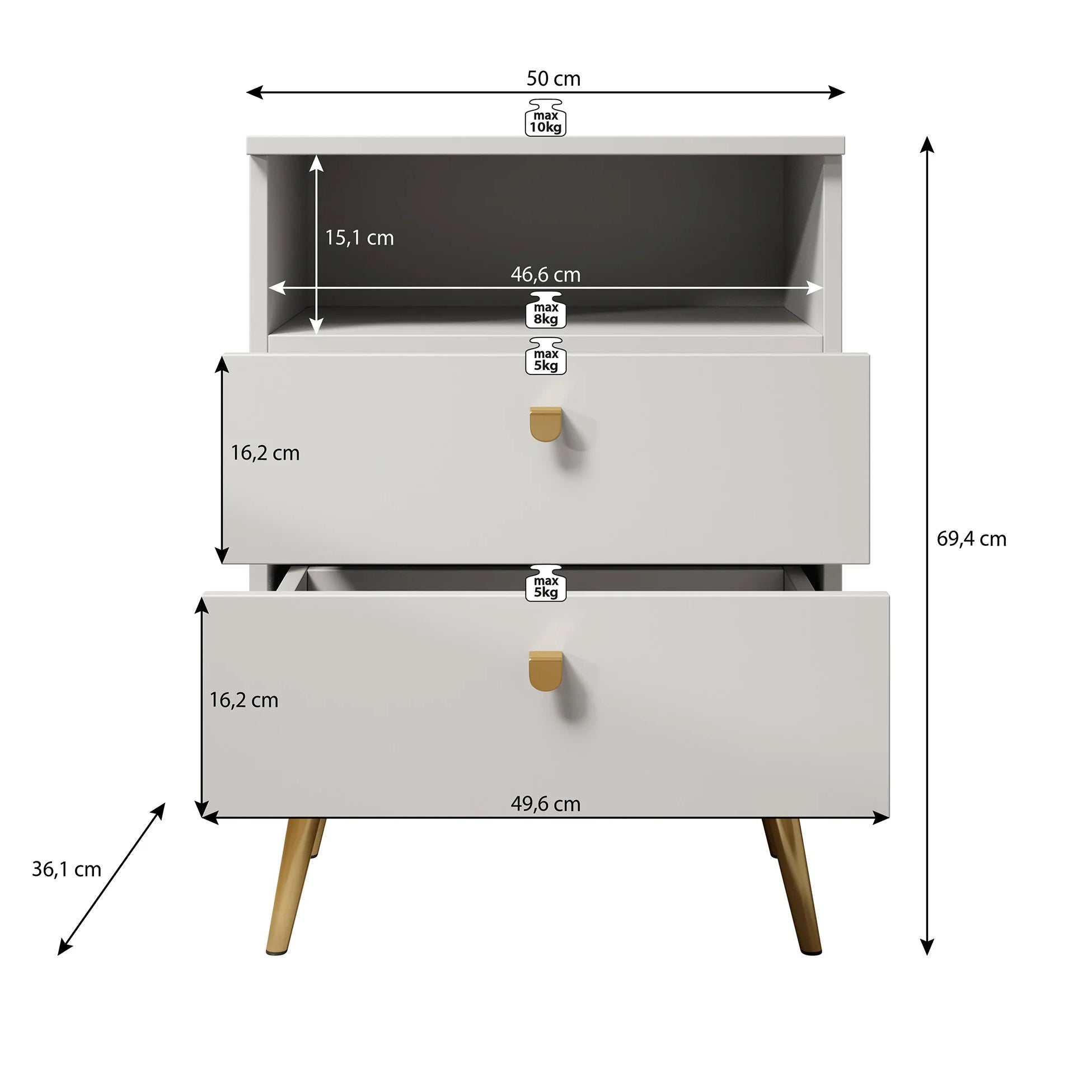 Meubella - Nachtkastje Hidde - Beige - 50 cm