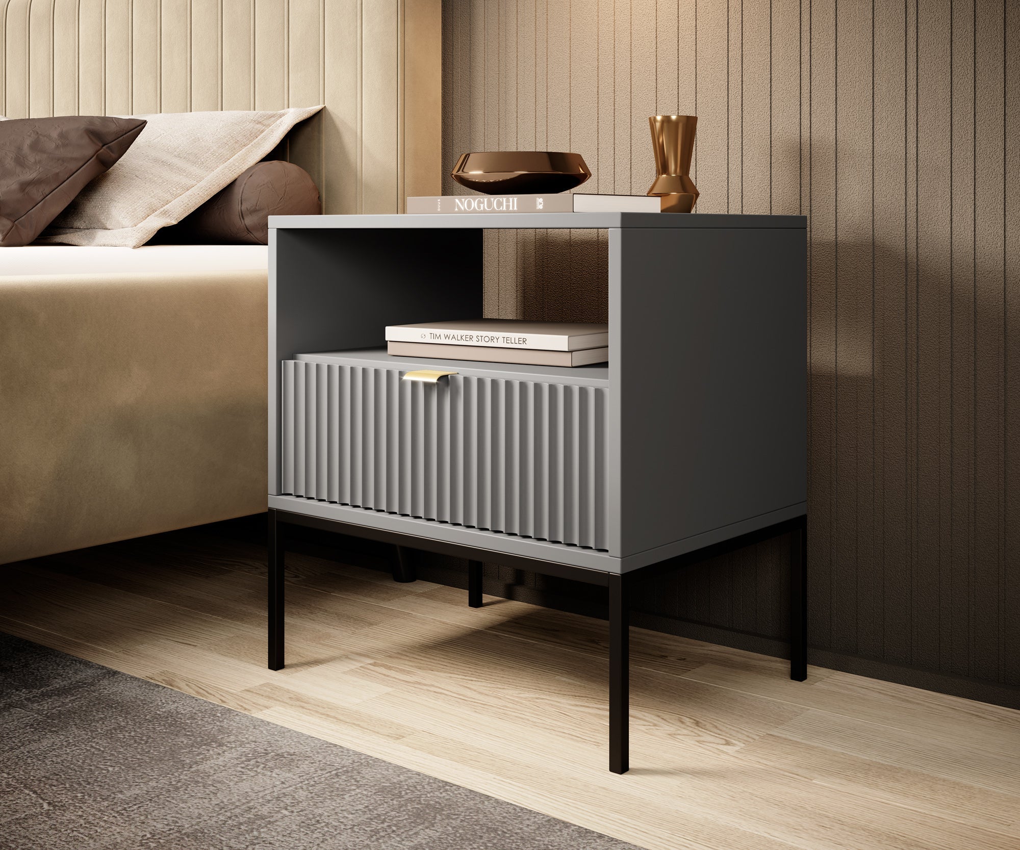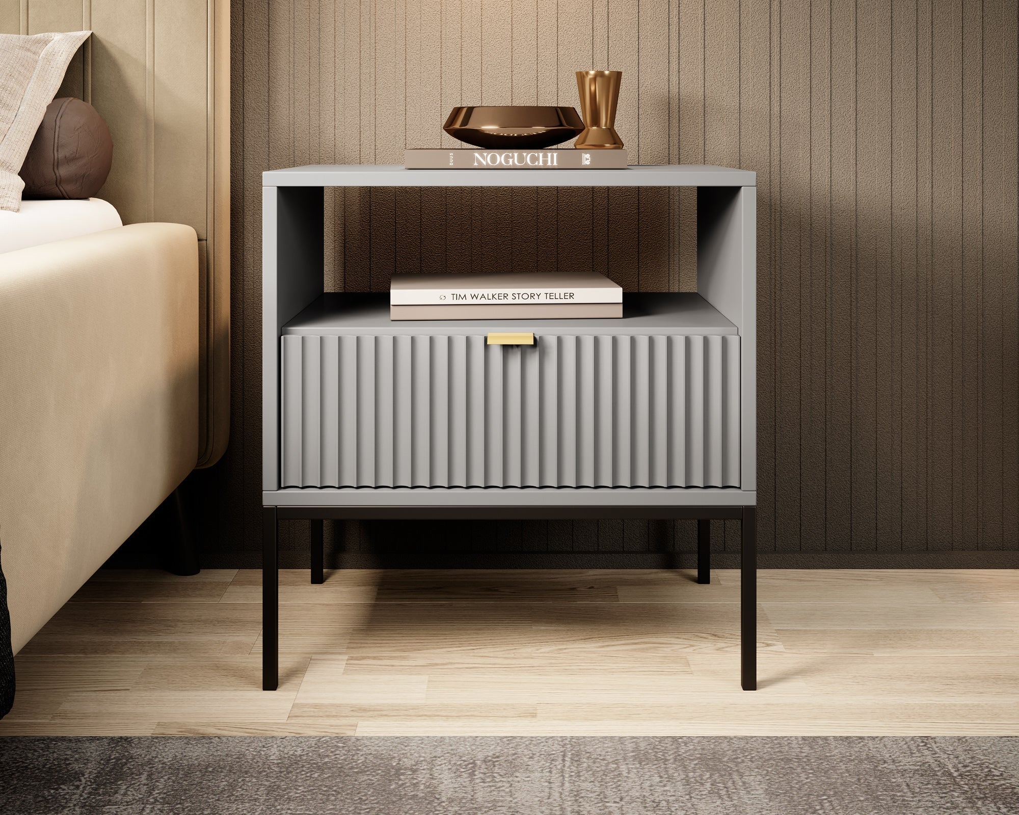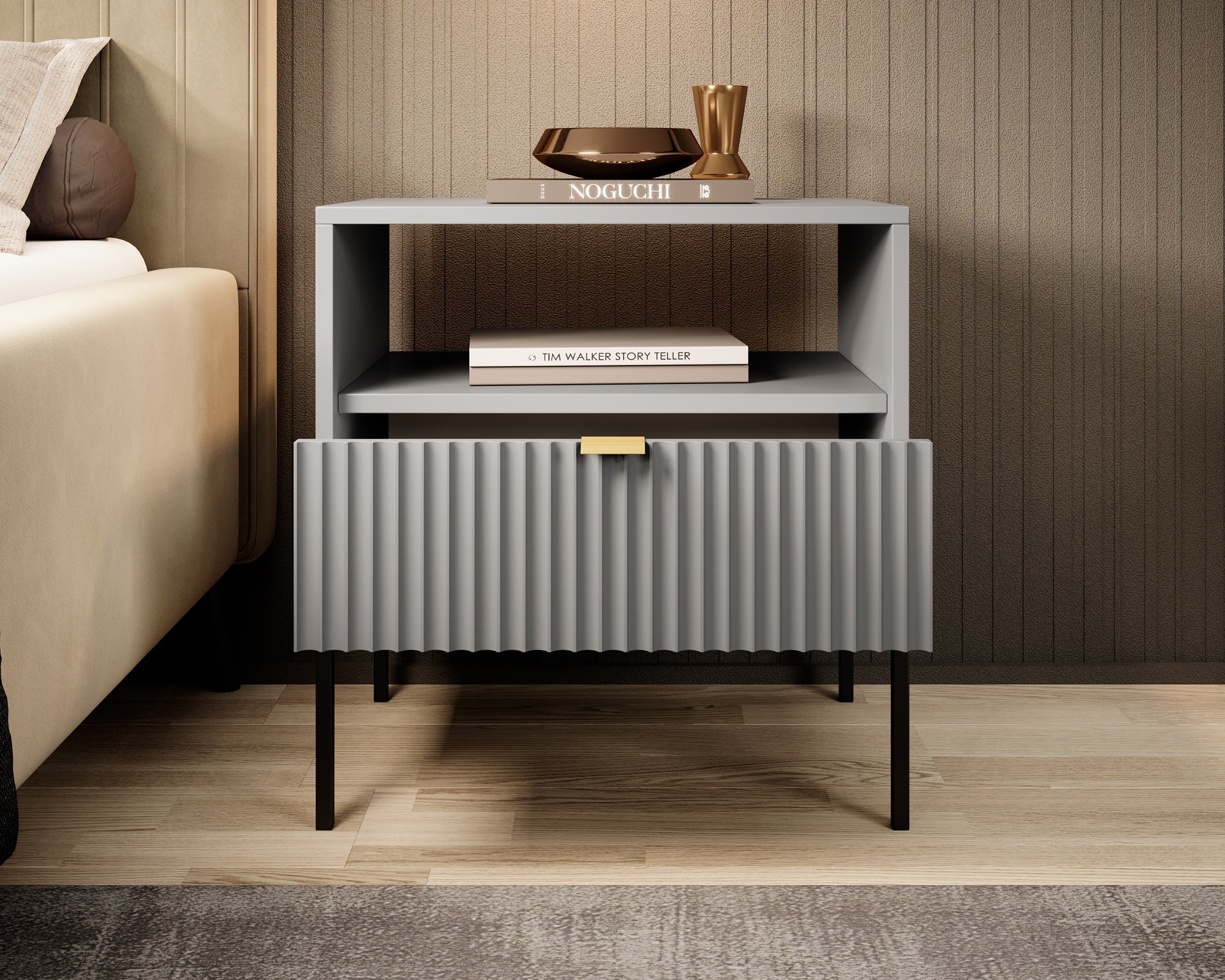 Meubella - Nachtkastje Navil - Grijs - 54 cm
