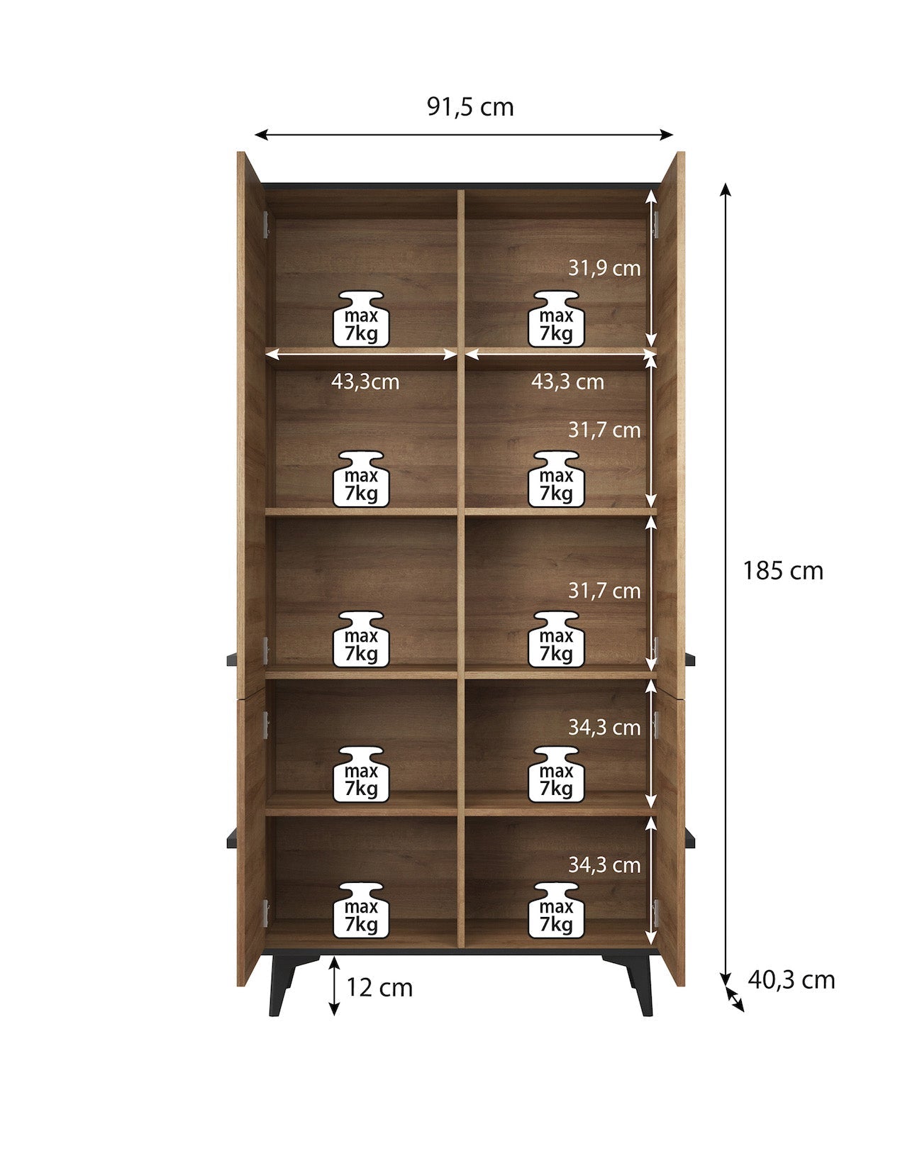 Meubella - Opbergkast Frey - Donker eiken - Zwart - 91 cm