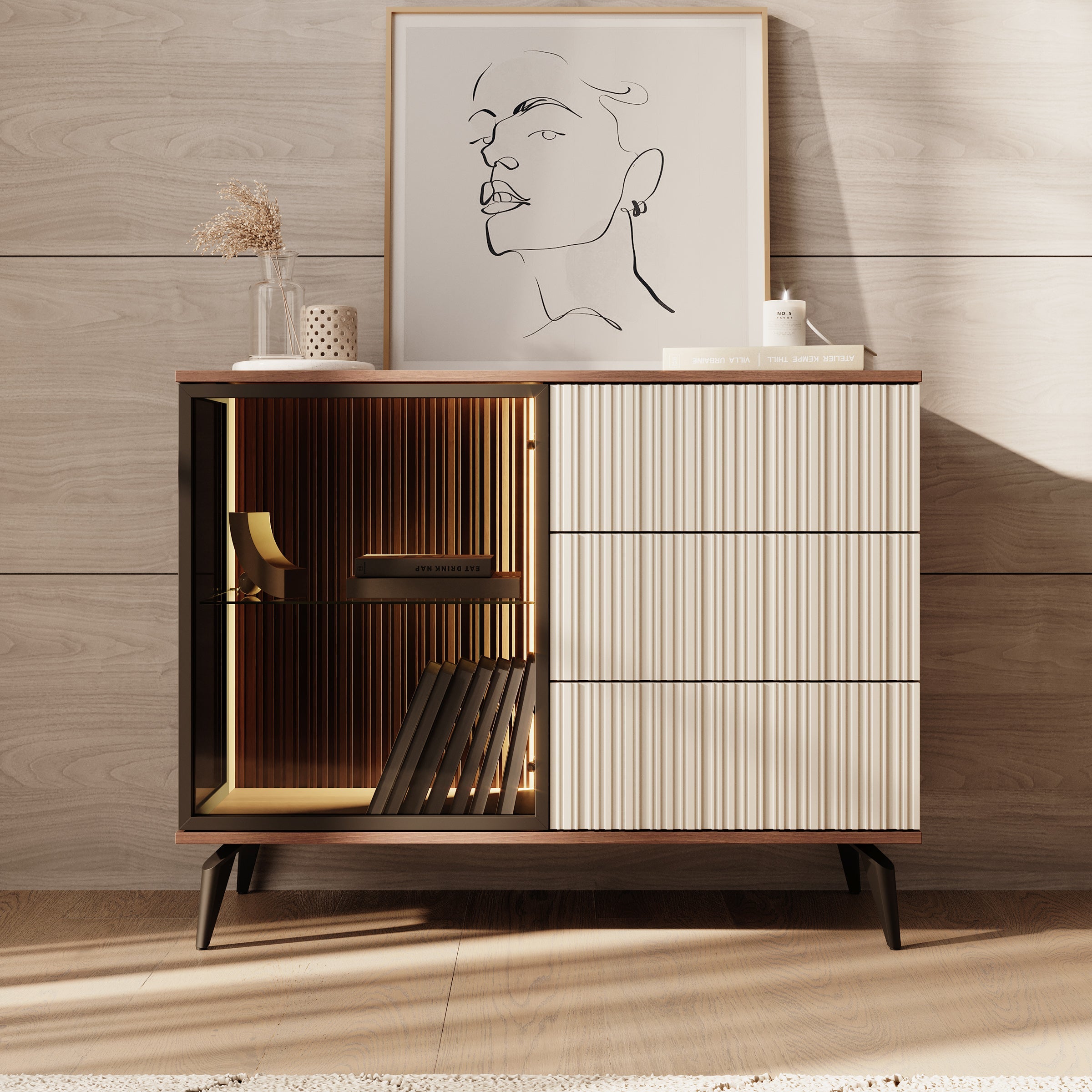 Meubella - Riverhead - Dressoir - Beige|Eiken - 103x39x80 cm