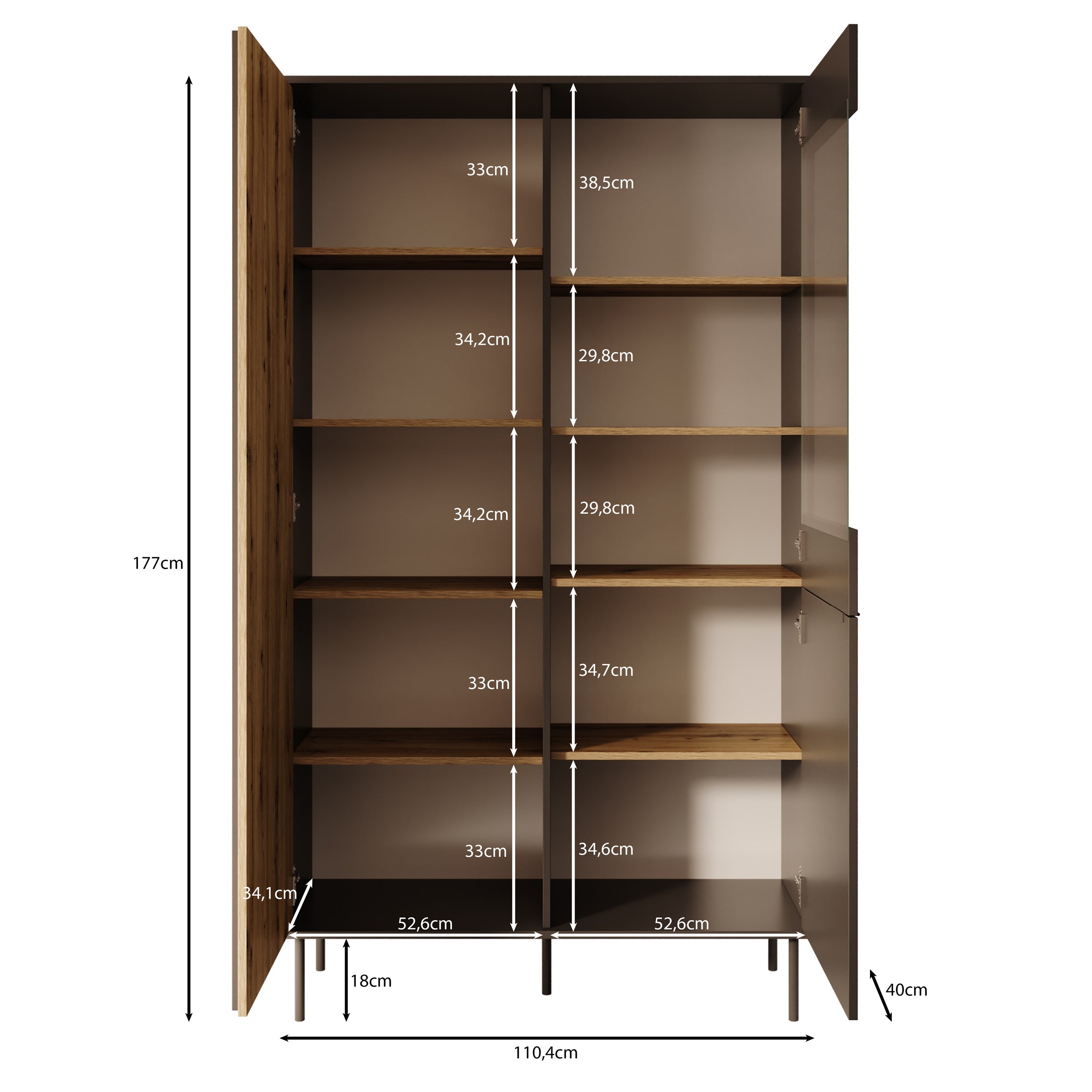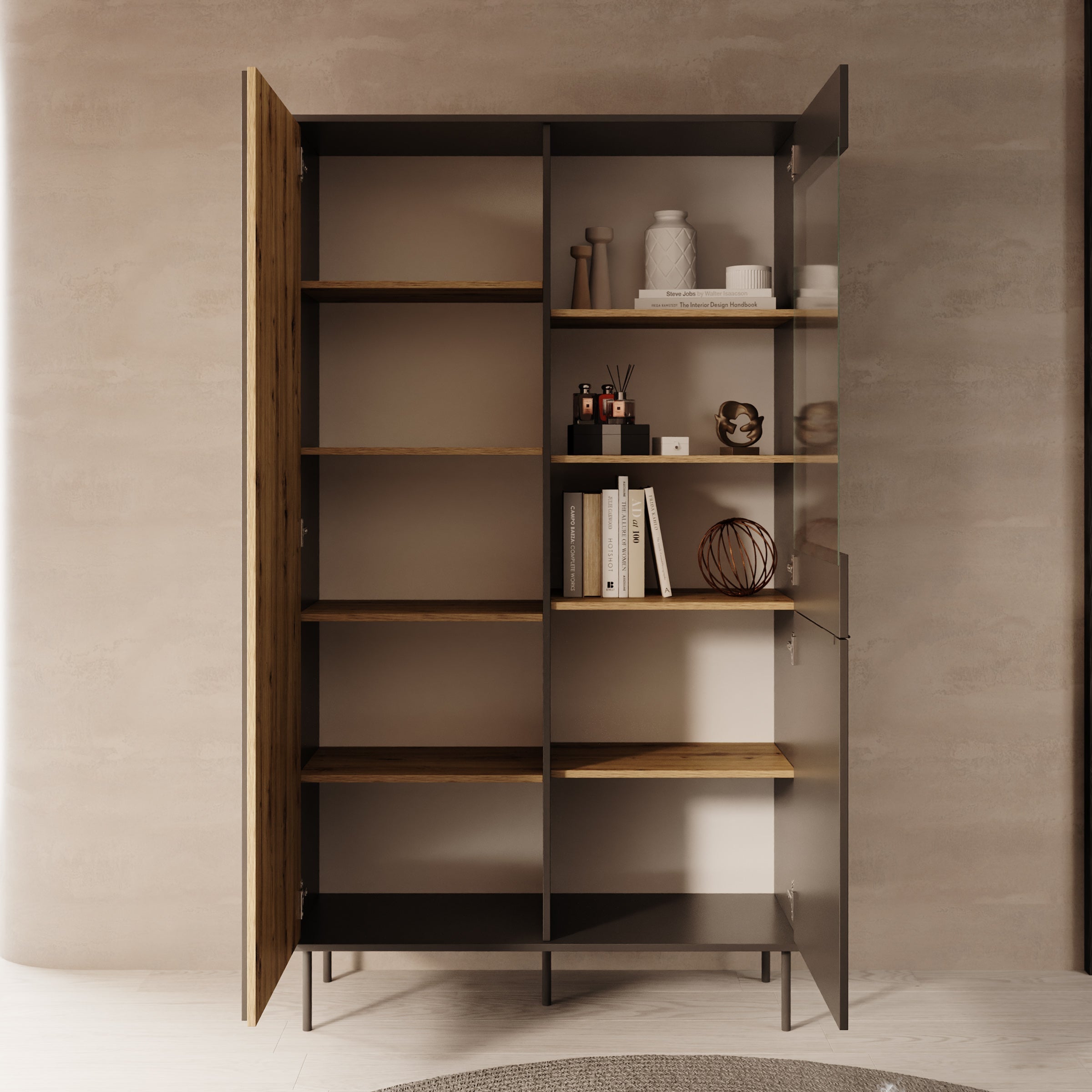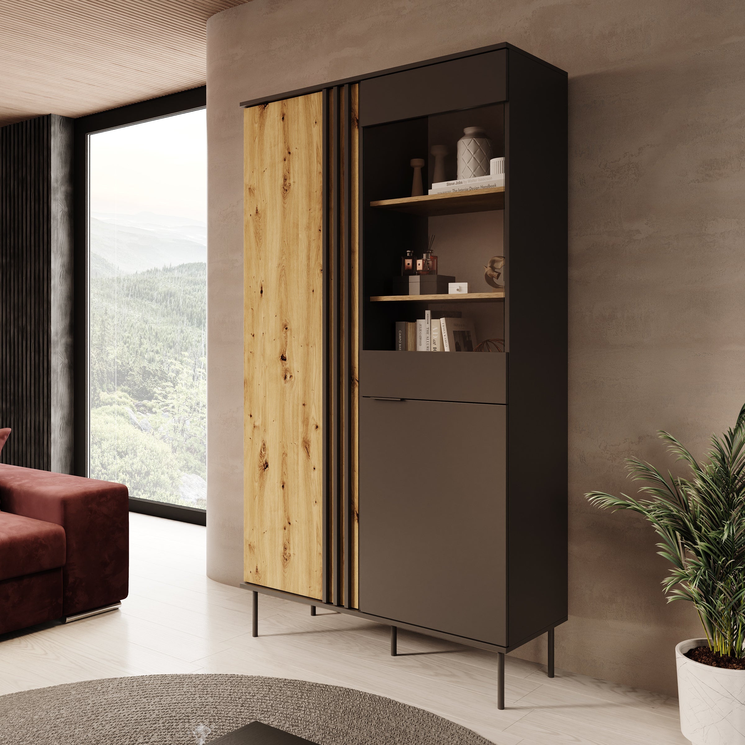Meubella - Rogan - Vitrinekast - Zwart - 111x40x195 cm