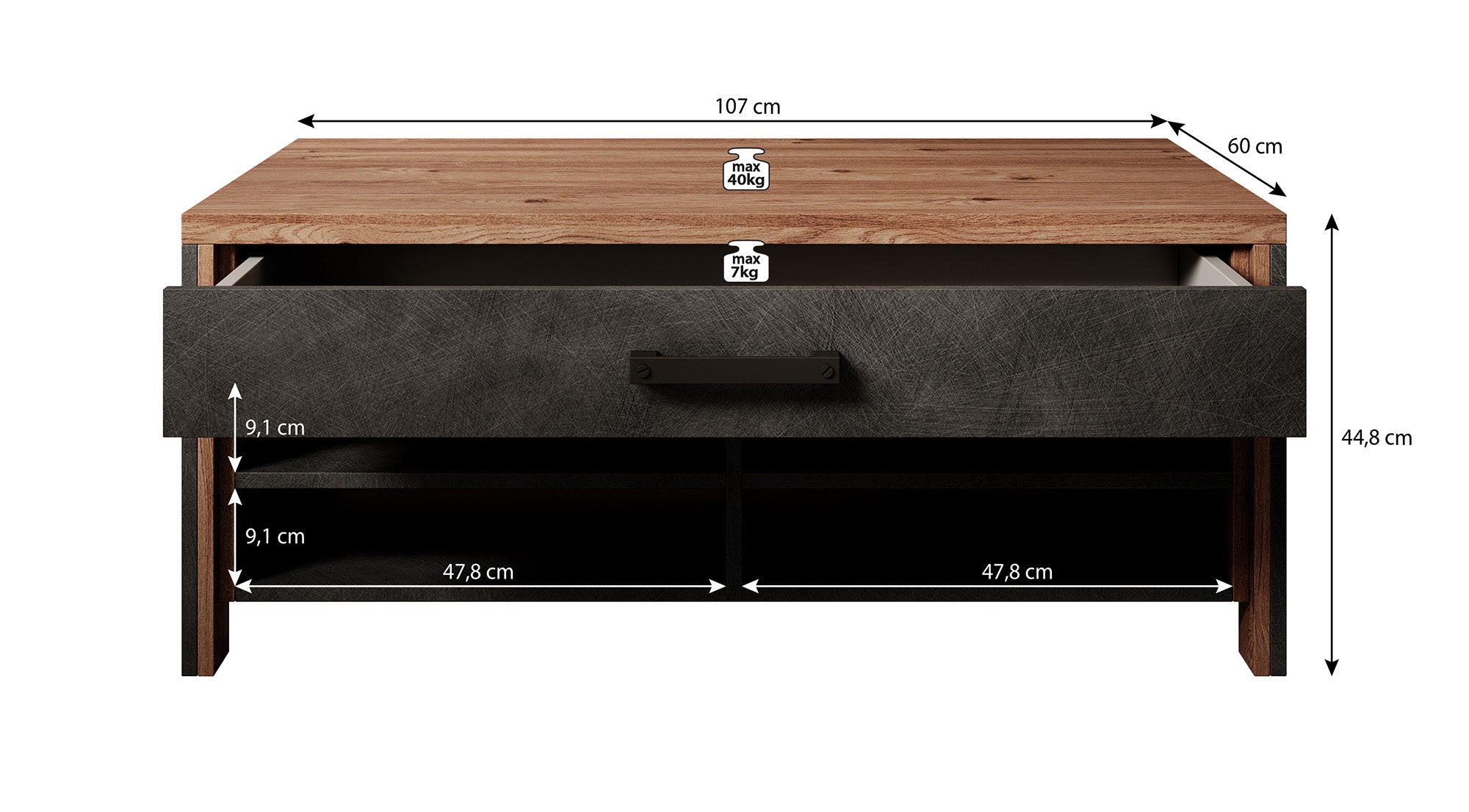 | Maat | H 45 x B 107 x D 60 cm |