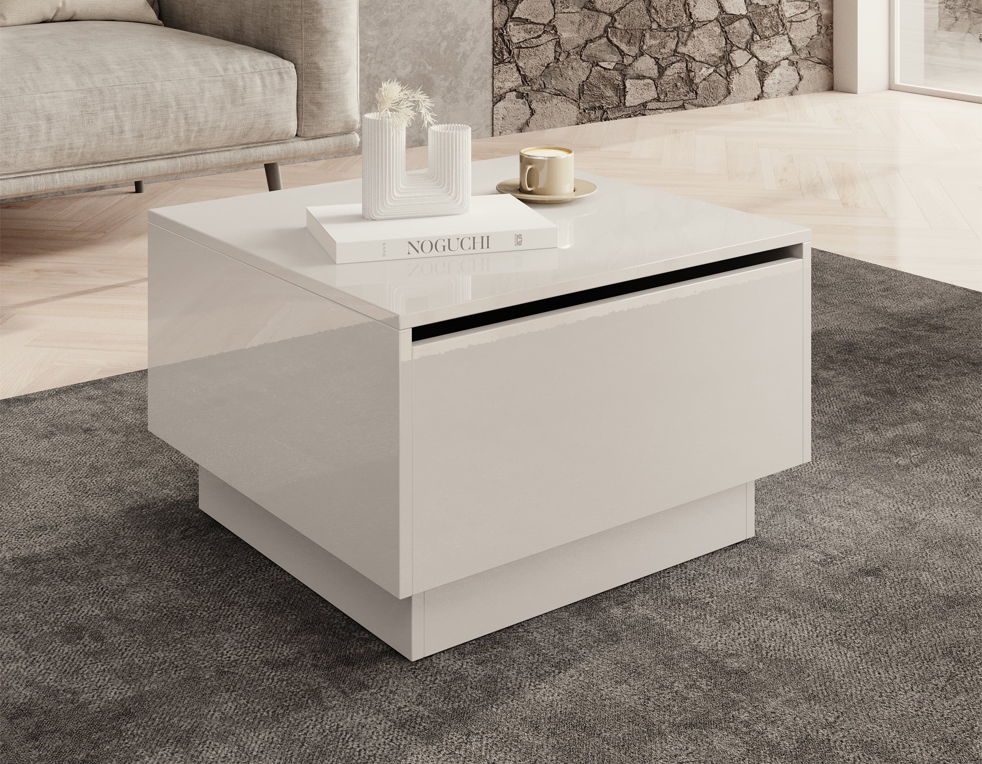 Meubella - Salontafel Micha - Hoogglans wit - 60 cm