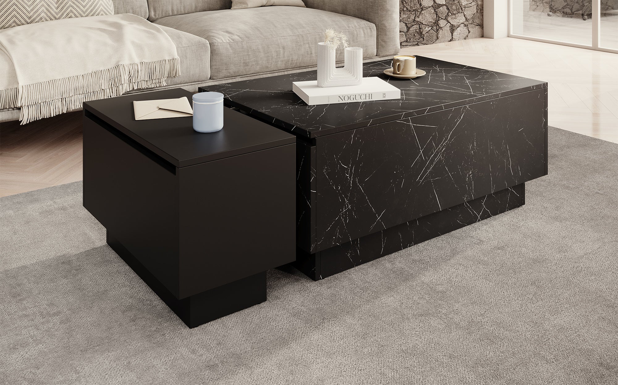 Meubella - Salontafel Micha - Zwart marmerlook - 90 cm