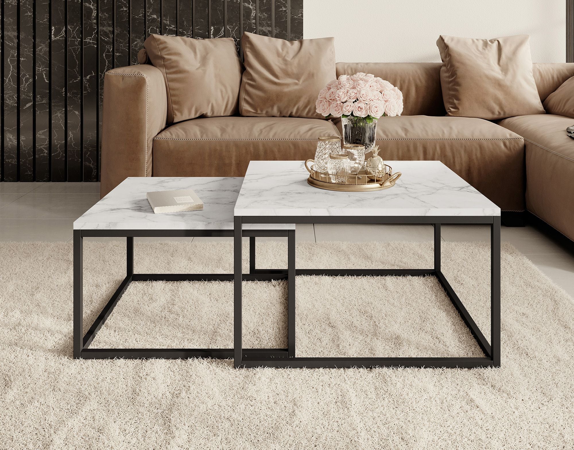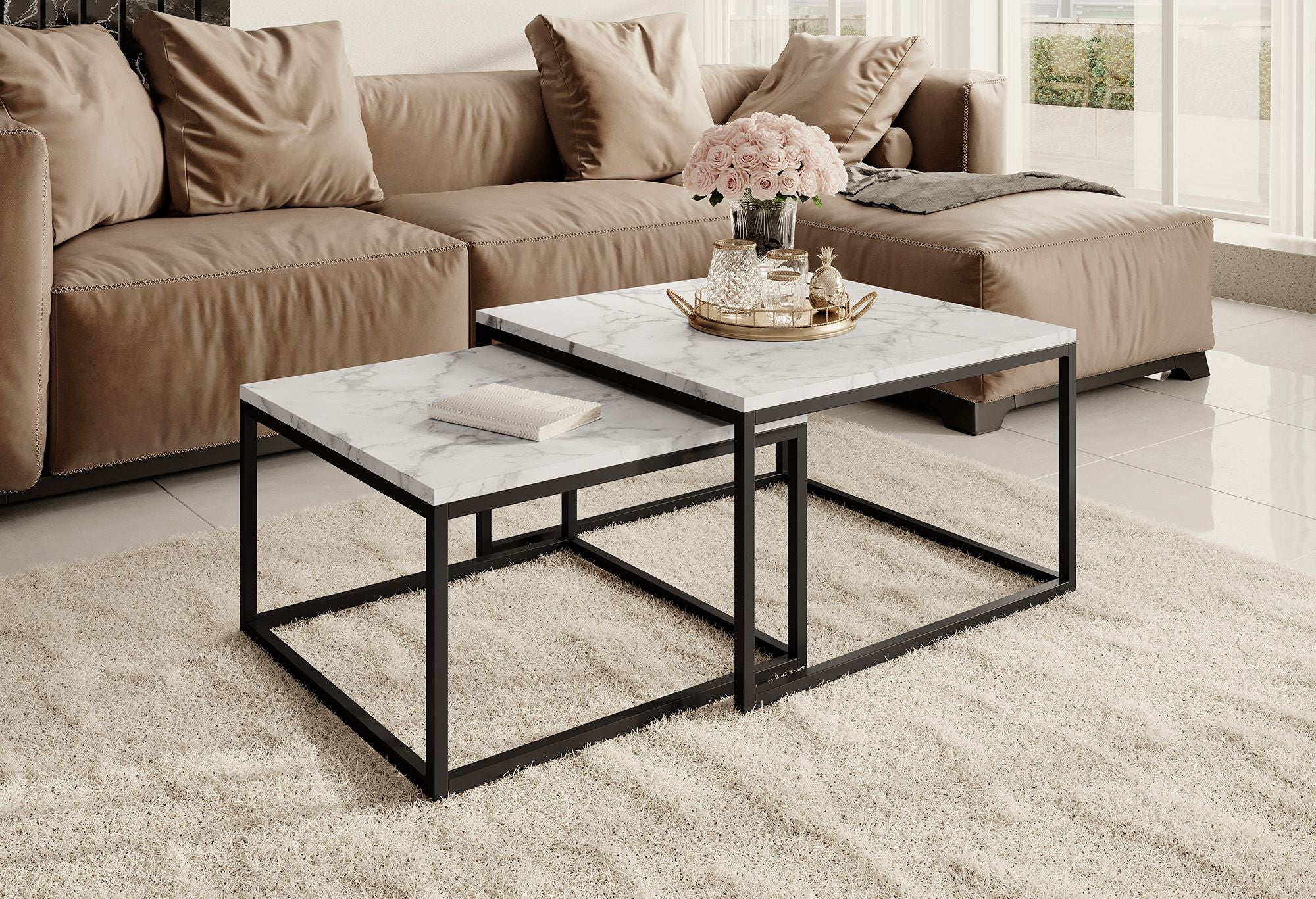 Meubella Salontafel Styler - Wit Marmerlook - set van 2