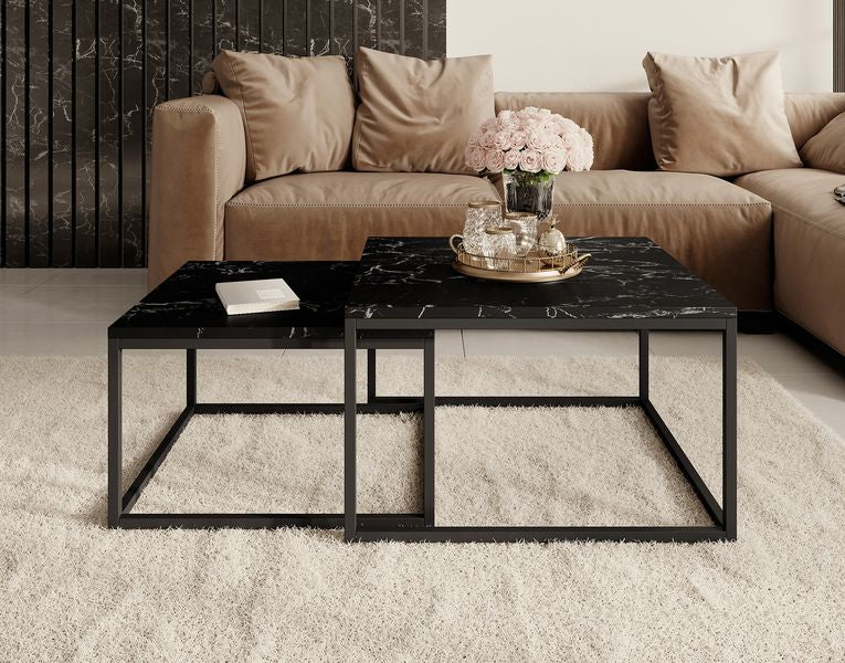 Meubella Salontafel Styler - Zwart Marmerlook - set van 2