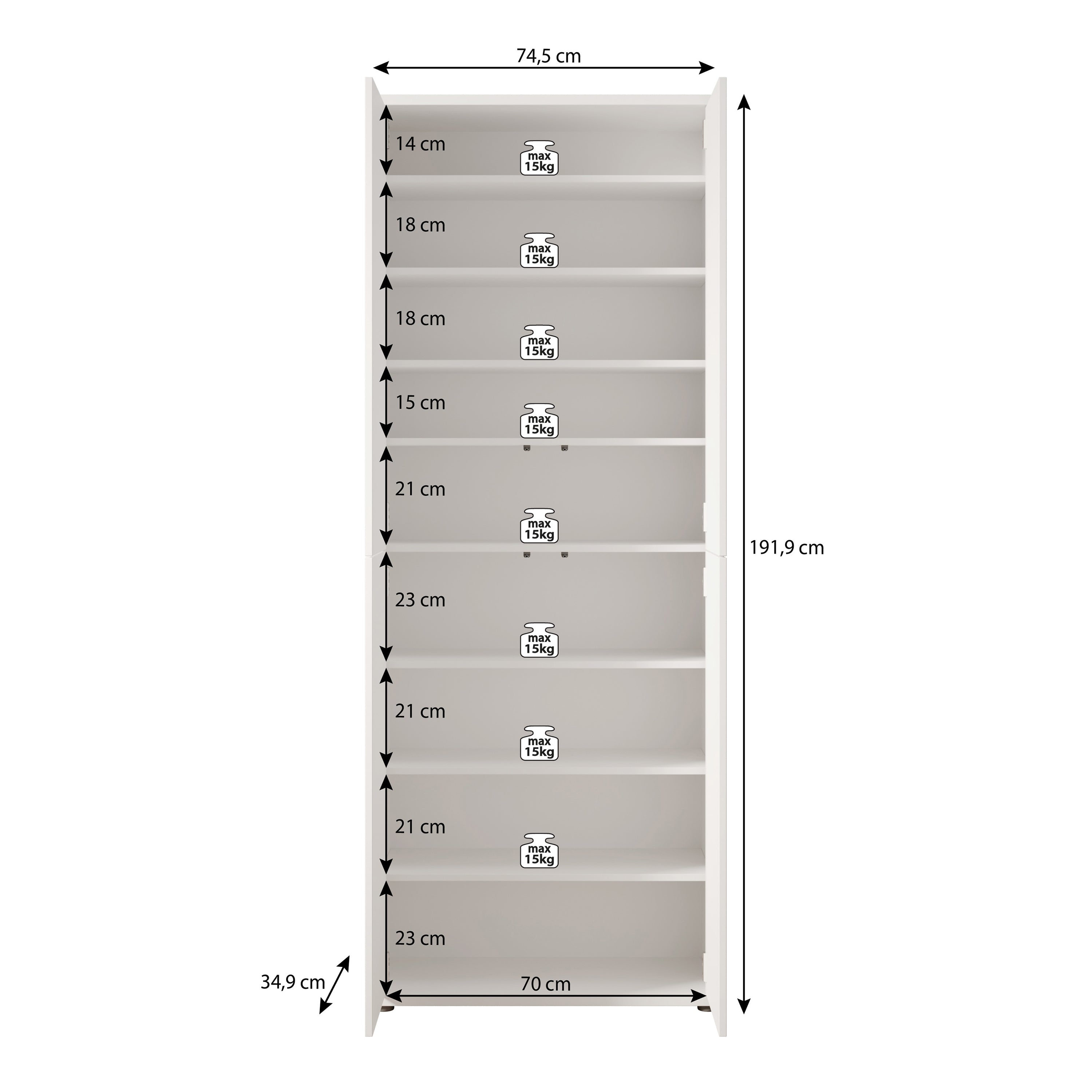 | Maat | H 192 x B 75 x D 35 cm |