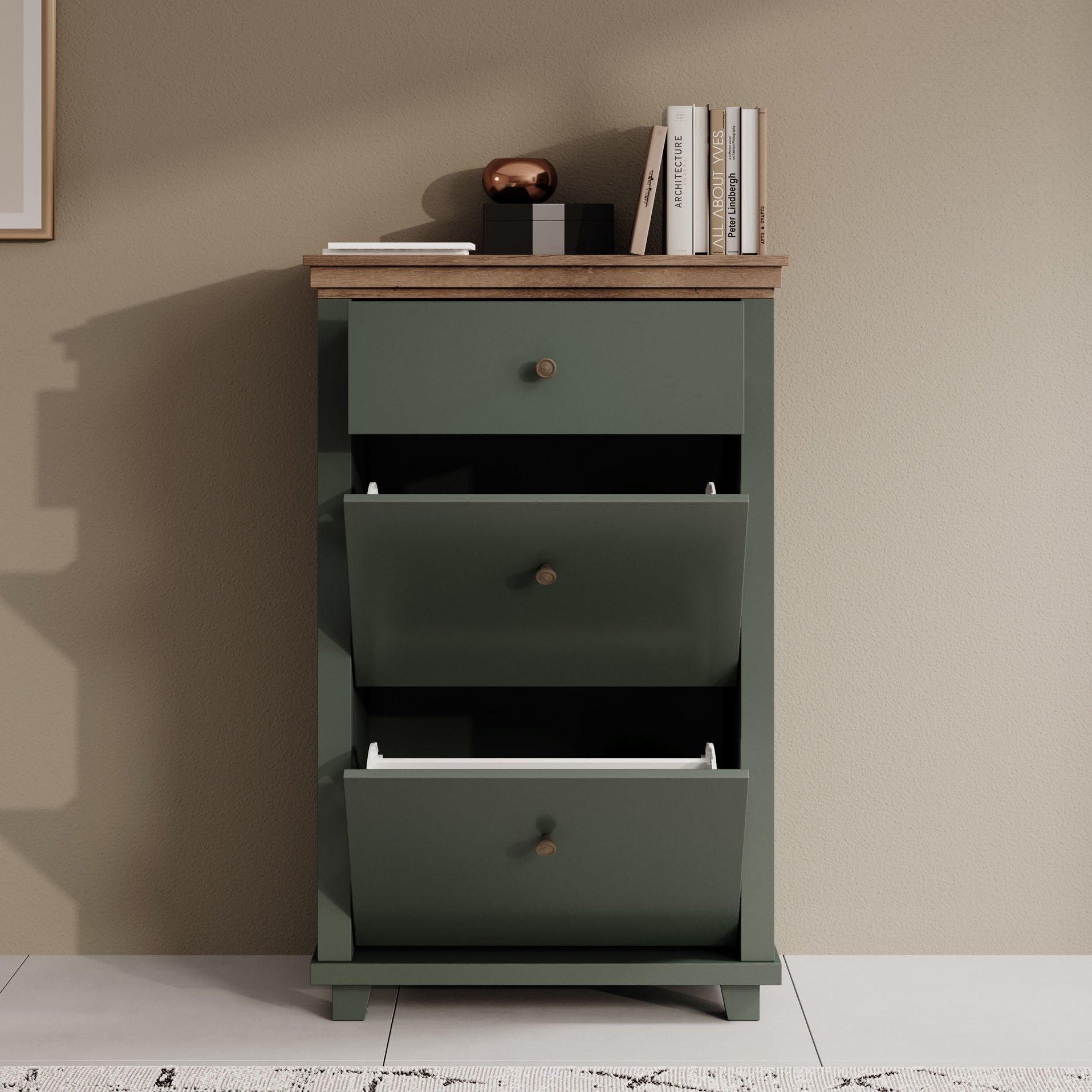 Meubella - Schoenenkast Eric - Groen - 71 cm - 2 kleppen