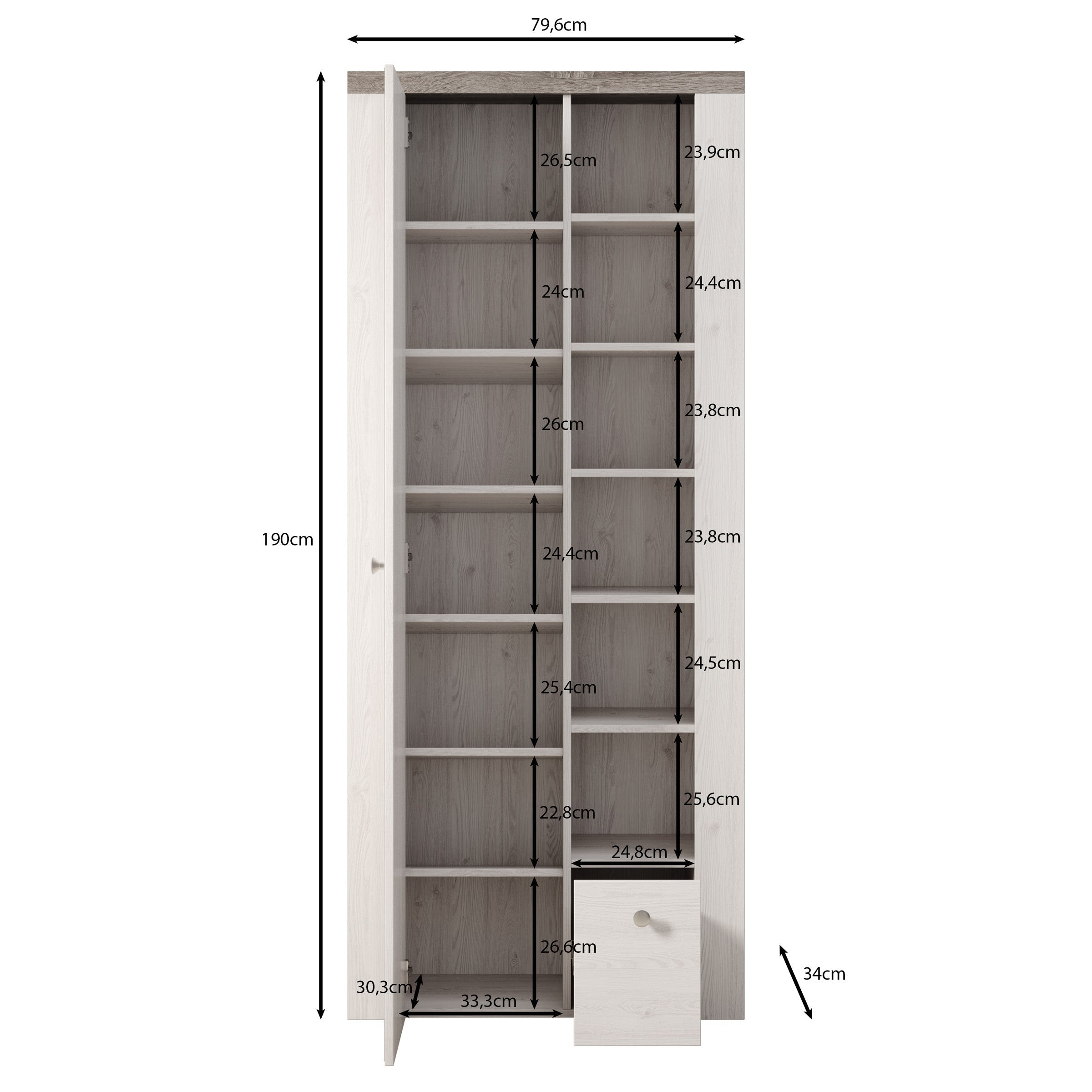 Meubella - Schoenenkast Linford - Donker eiken - 80 cm - Met spiegel