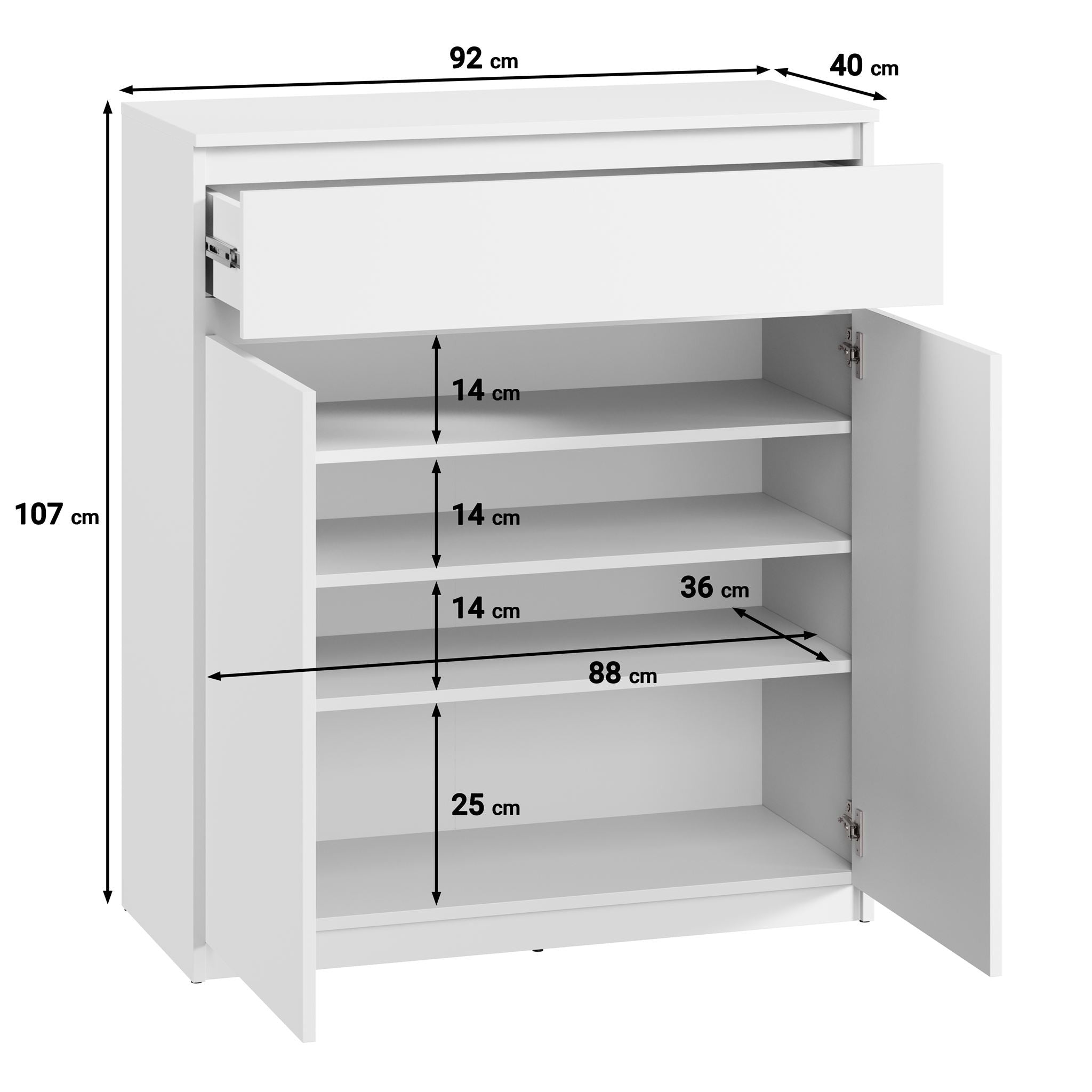 Meubella - Schoenenkast Santiago - Wit - 92 cm - Met lade