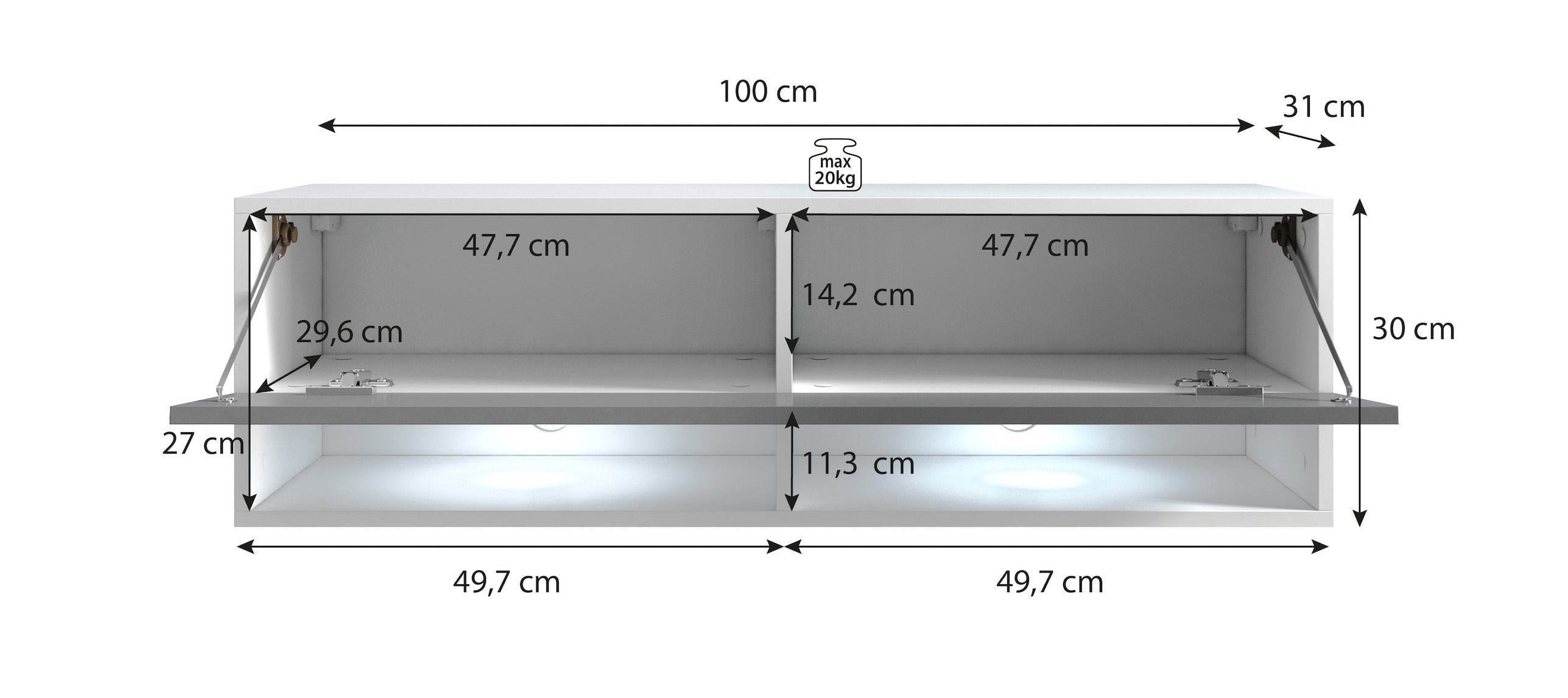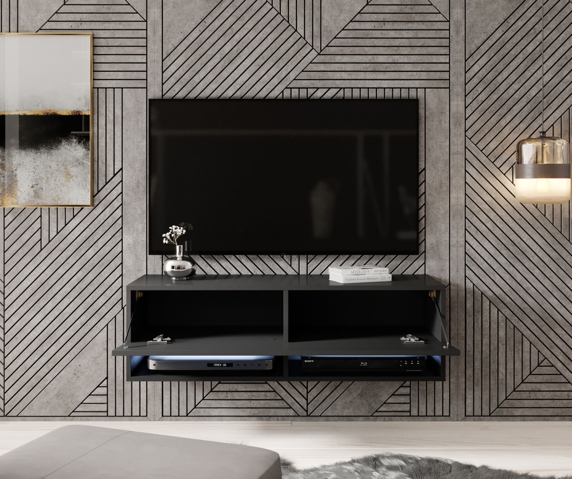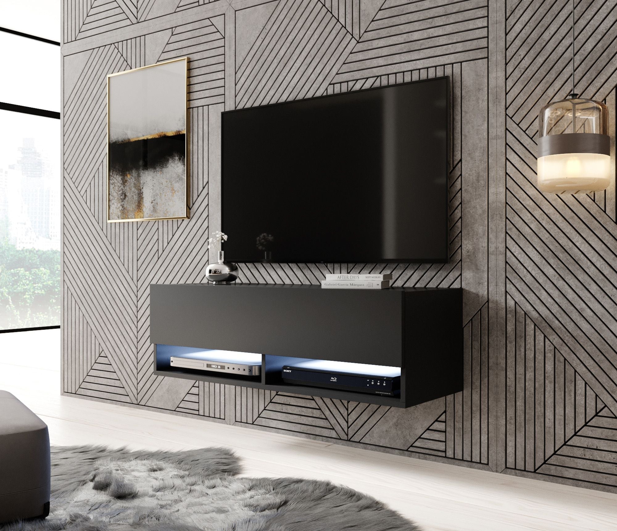 Meubella TV-Meubel Asino LED - Mat Zwart - 100 cm