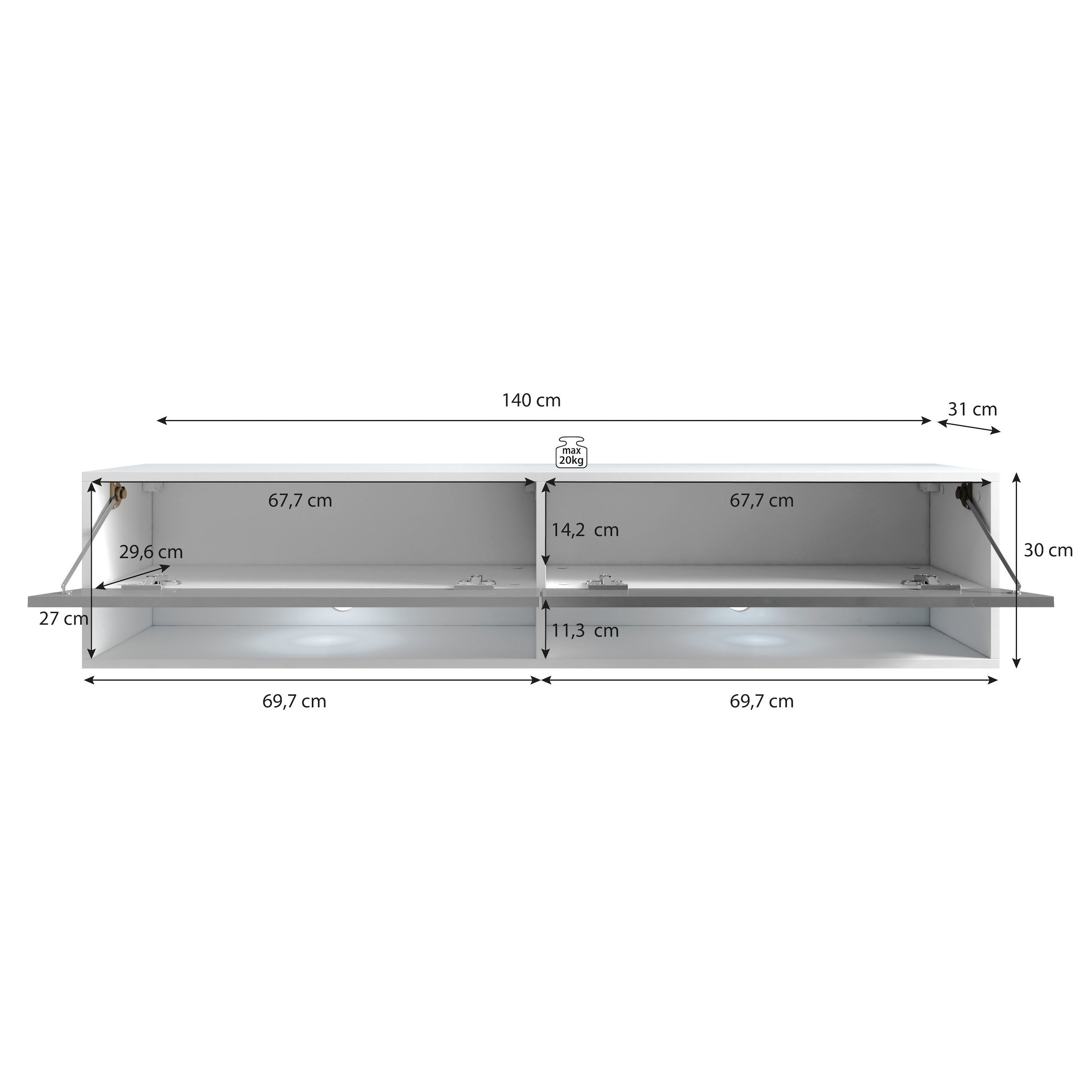 | Maat | H 30 x B 140 x D 31 cm |