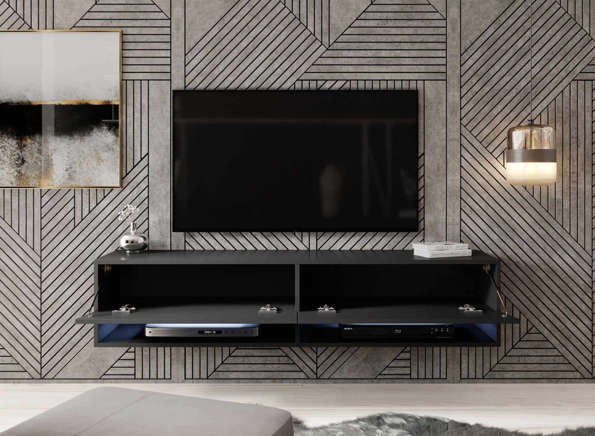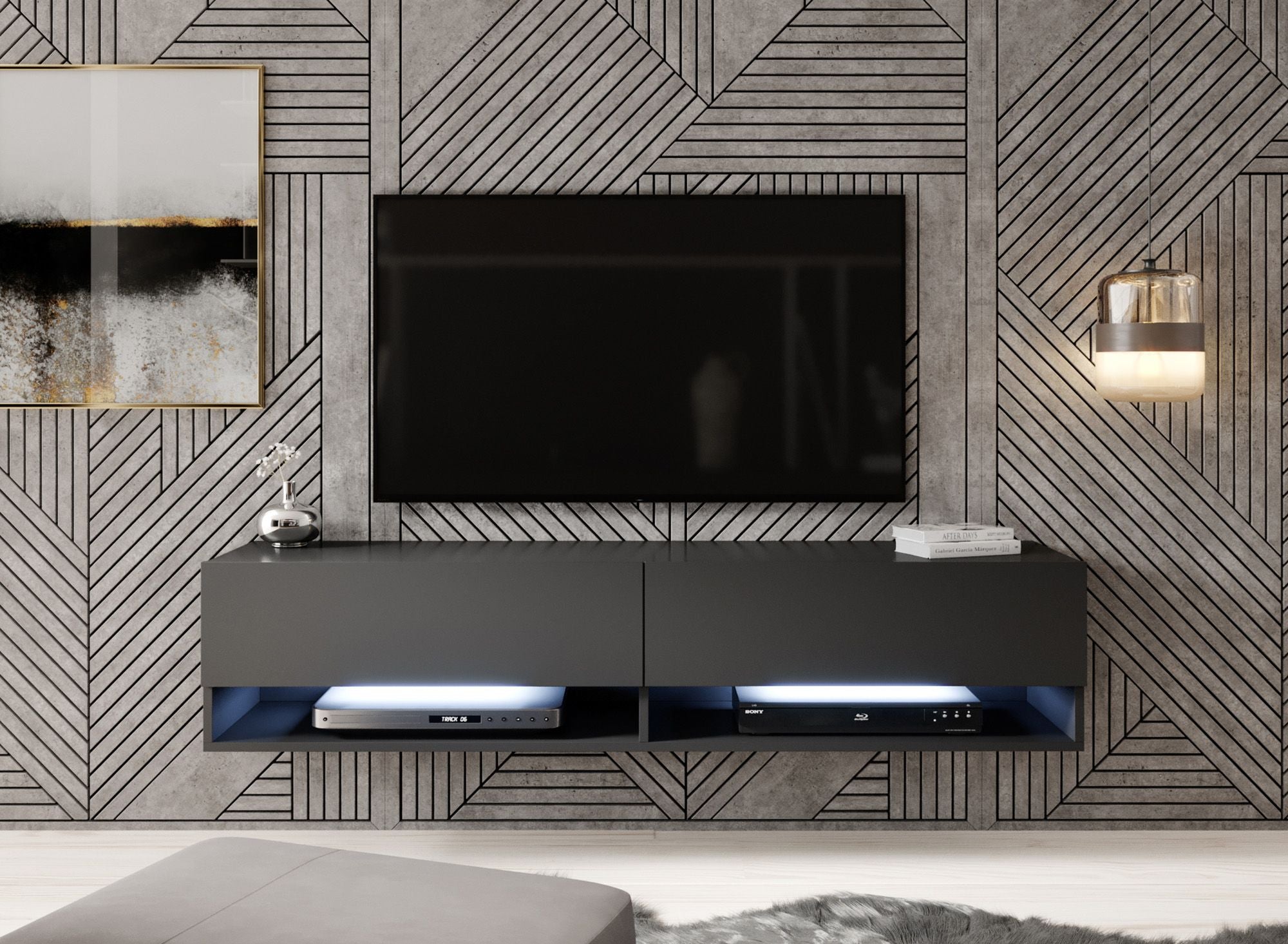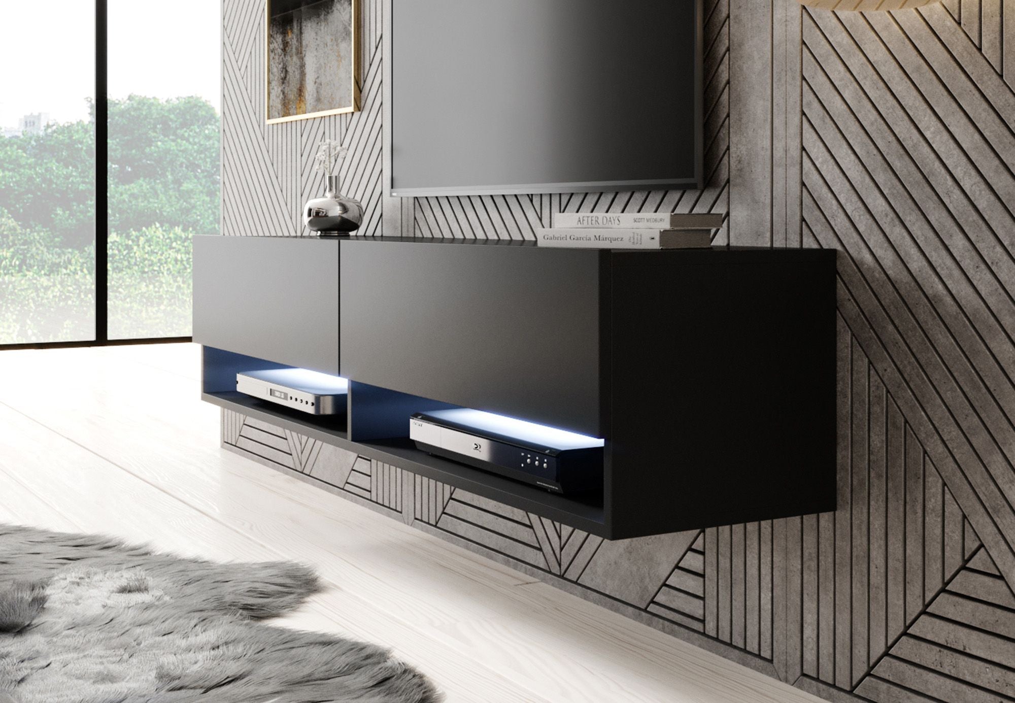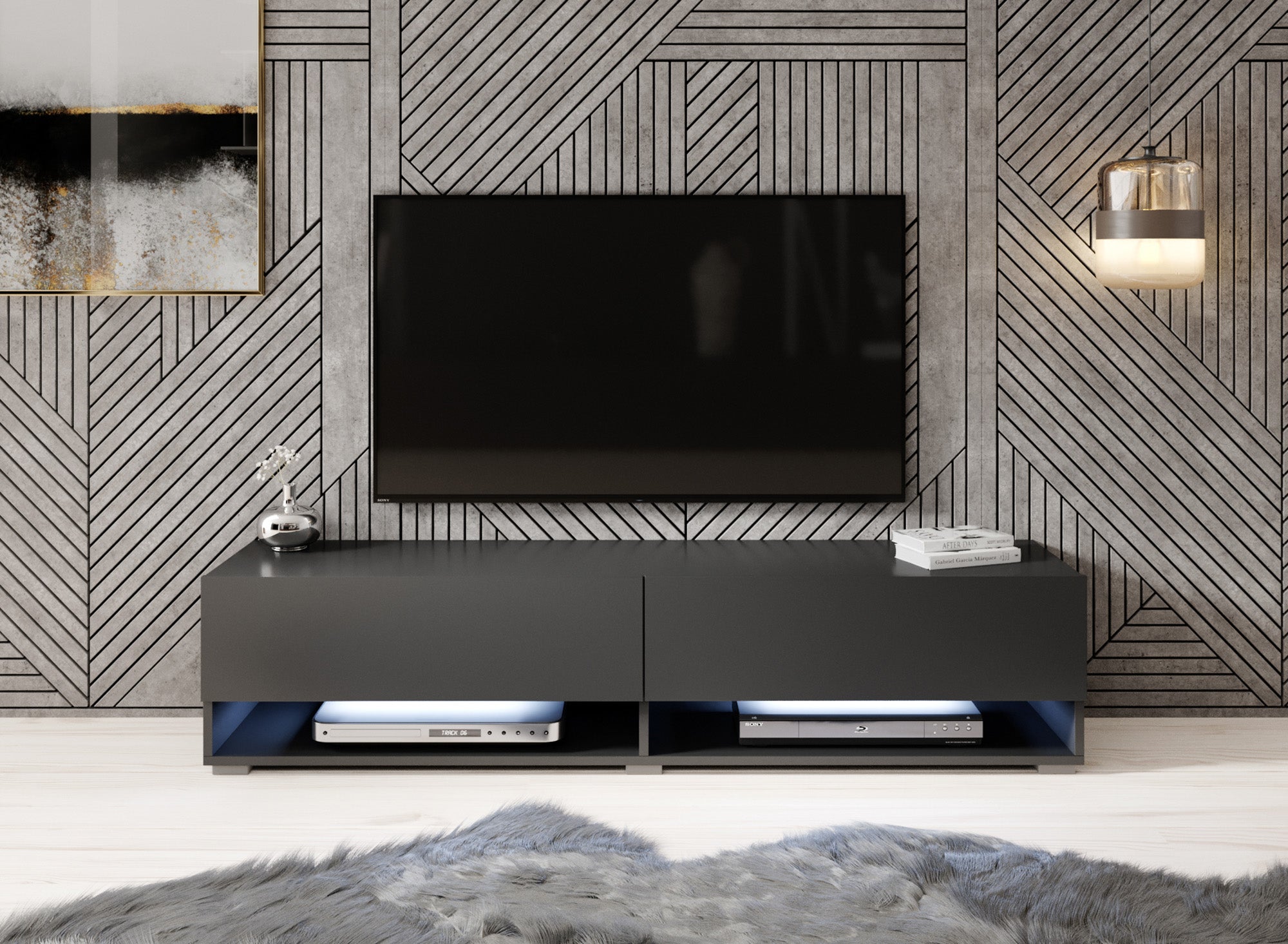 Meubella TV-Meubel Asino LED - Mat Zwart - 140 cm