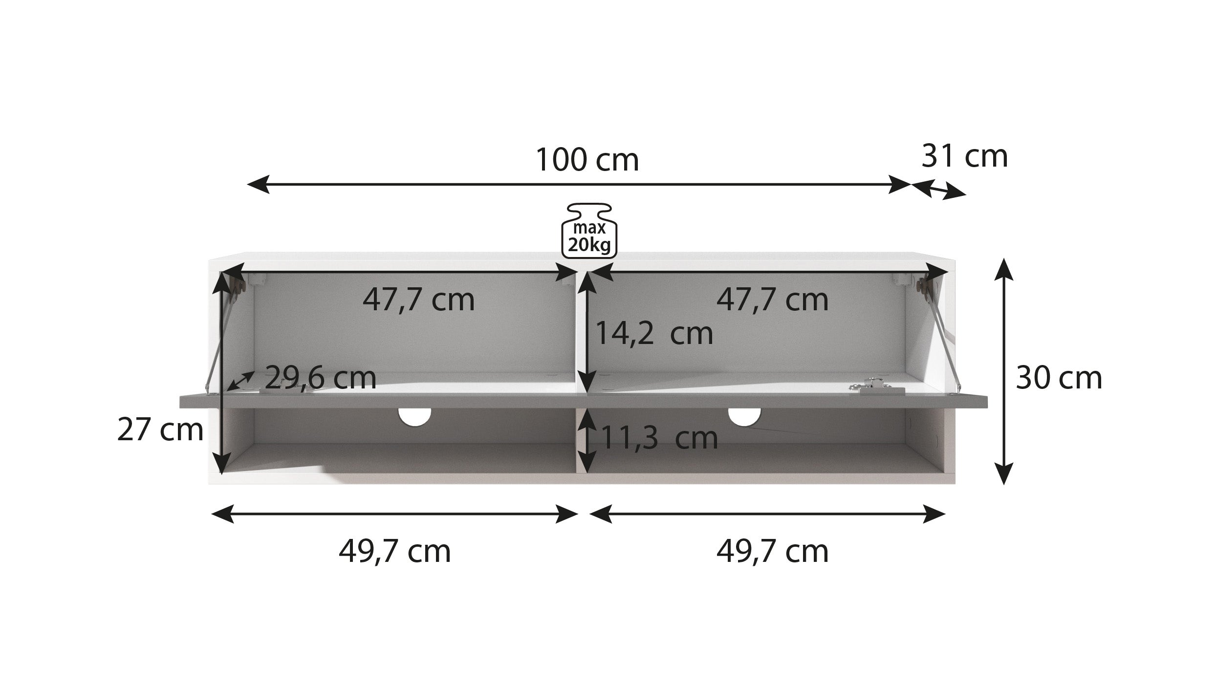 | Maat | H 30 x B 100 x D 31 cm |