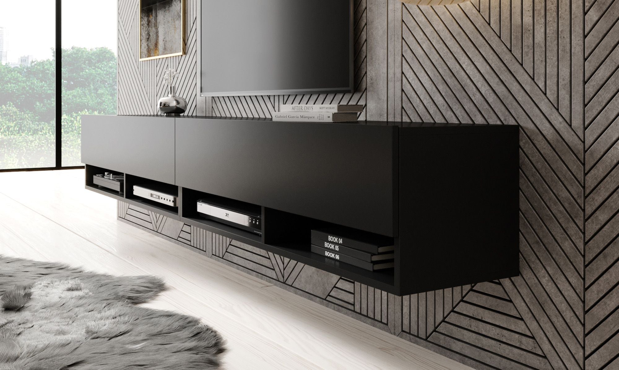Meubella TV-Meubel Asino - Mat Zwart - 200 cm