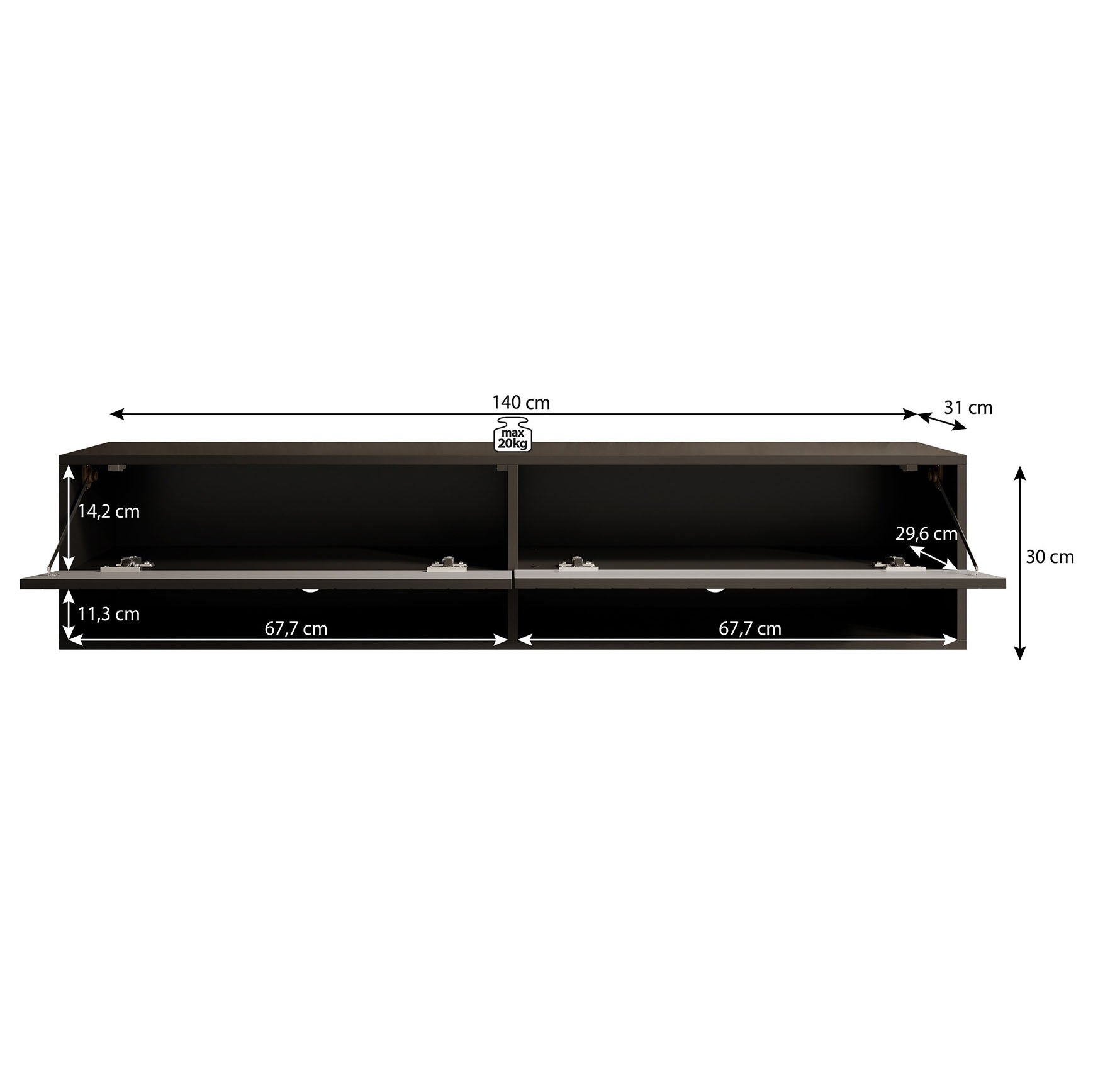 | Maat | H 30 x B 140 x D 31 cm |