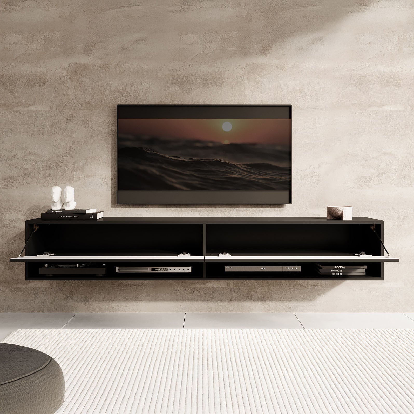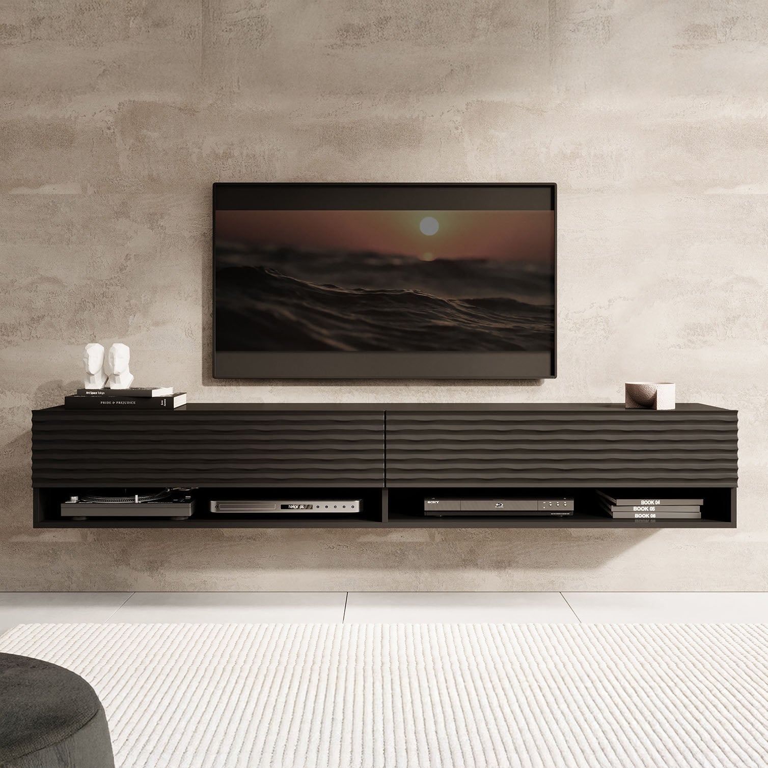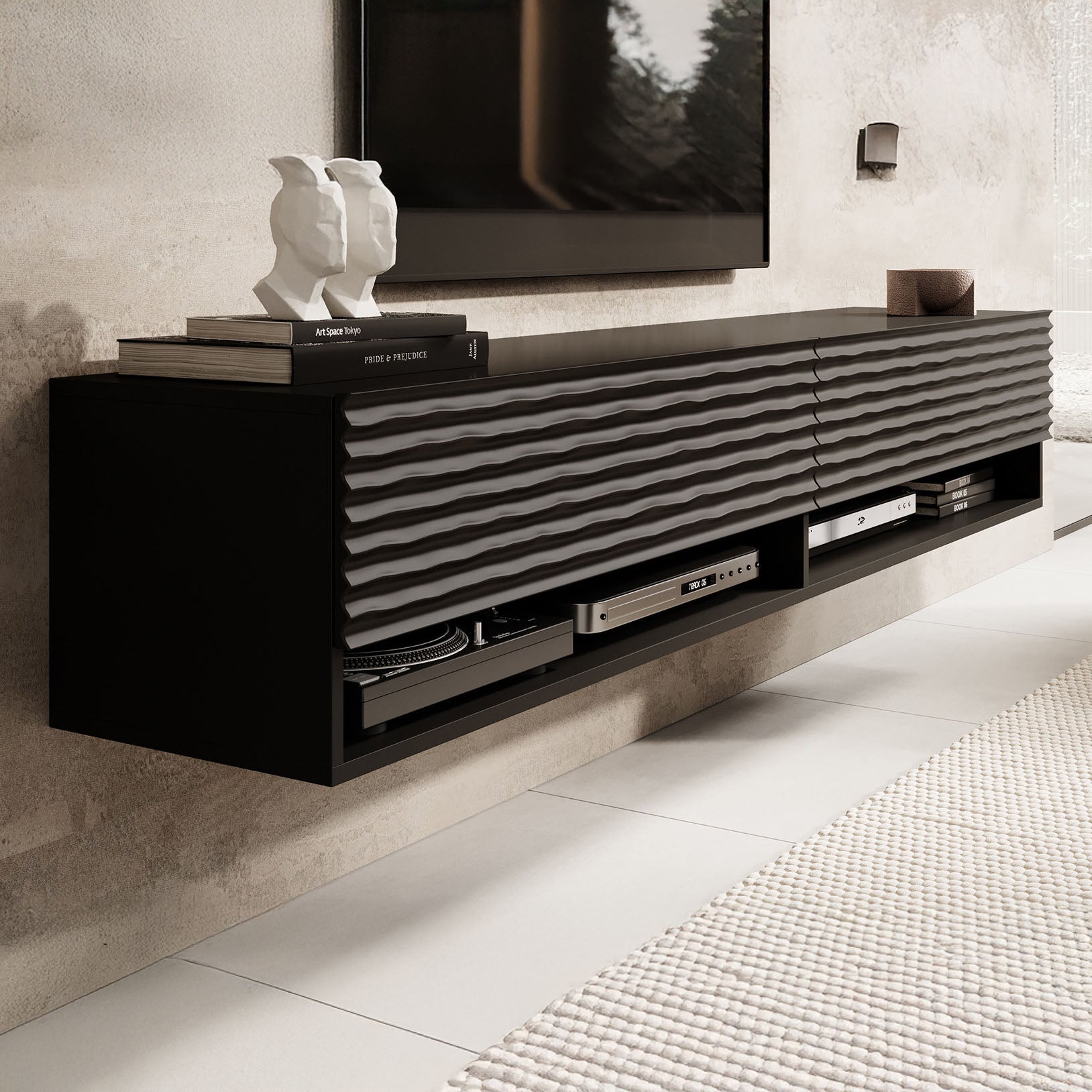 Meubella - TV-Meubel Asino - Wave - Mat zwart - 180 cm