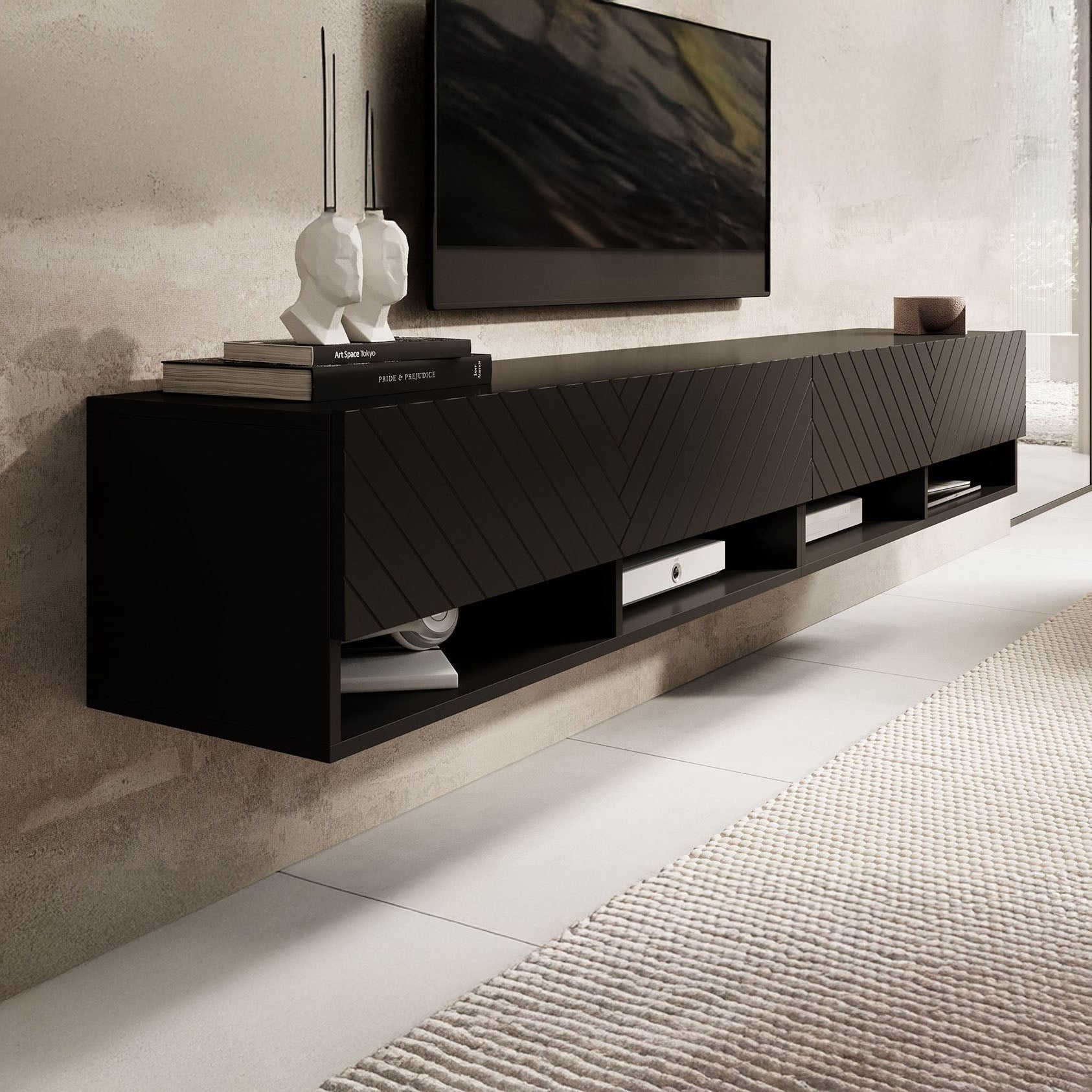 Meubella - TV-Meubel Asino - Zwart Visgraat - 200 cm