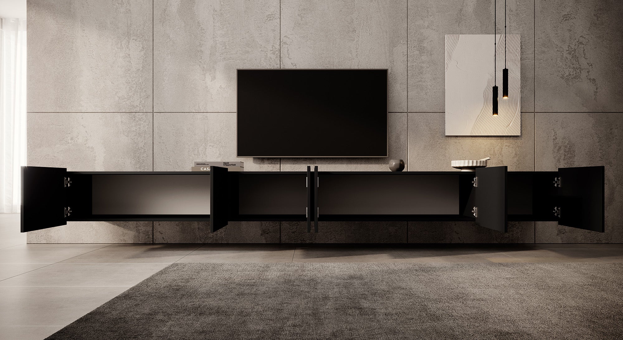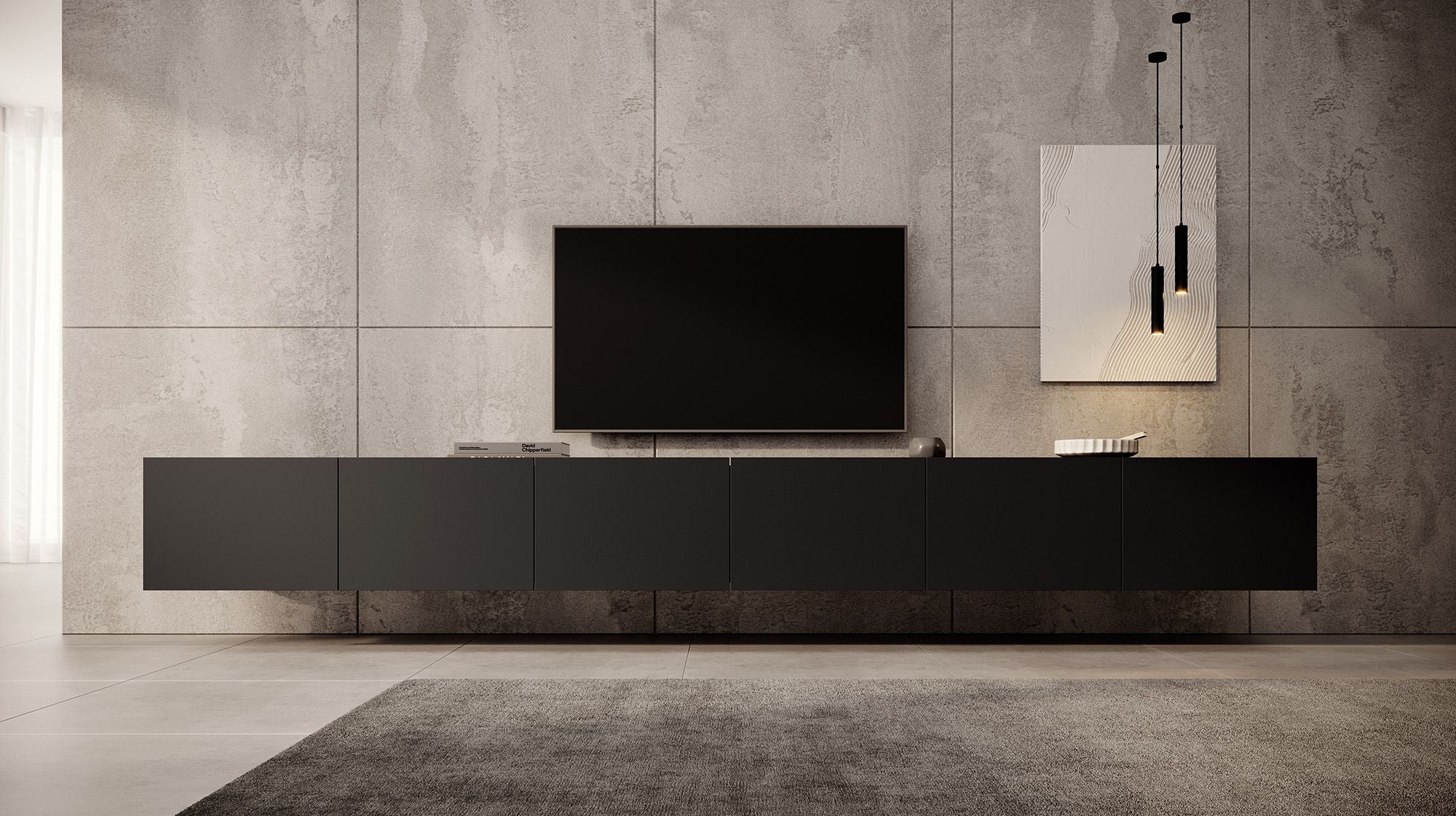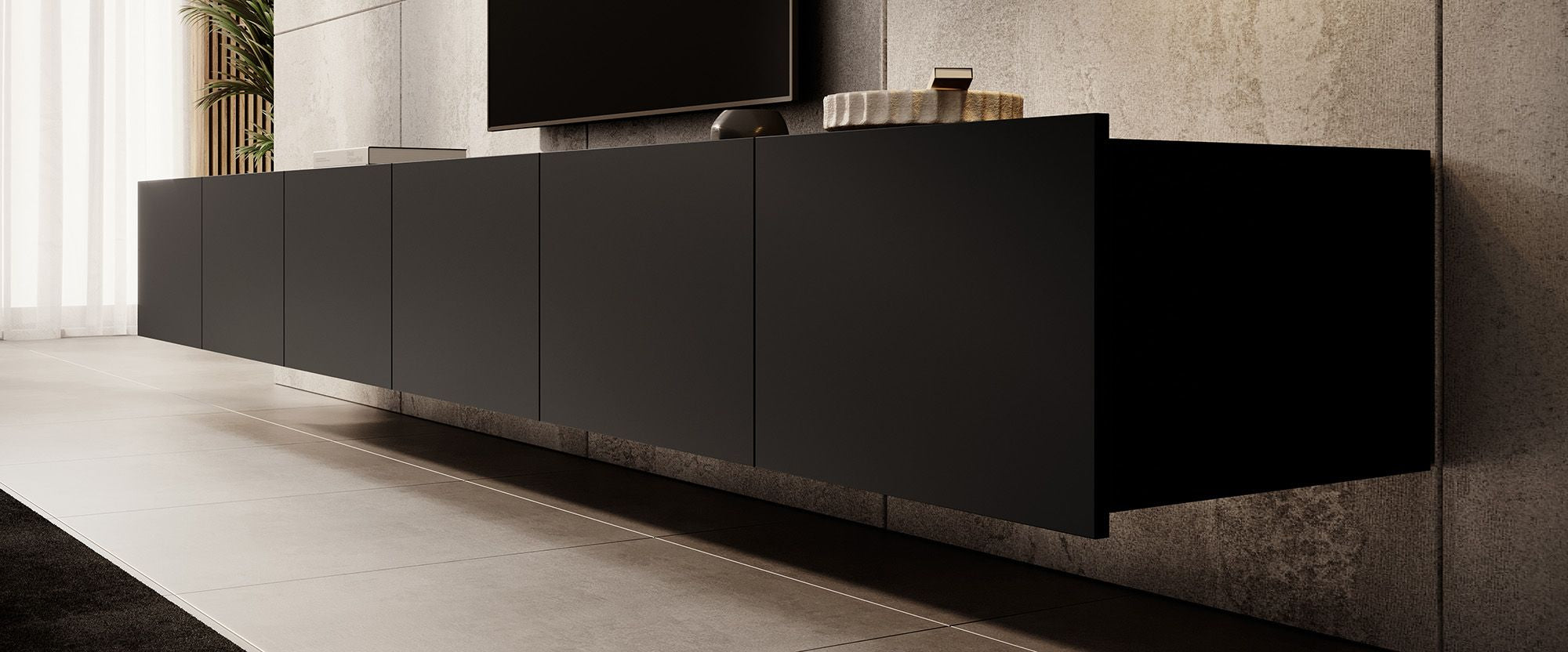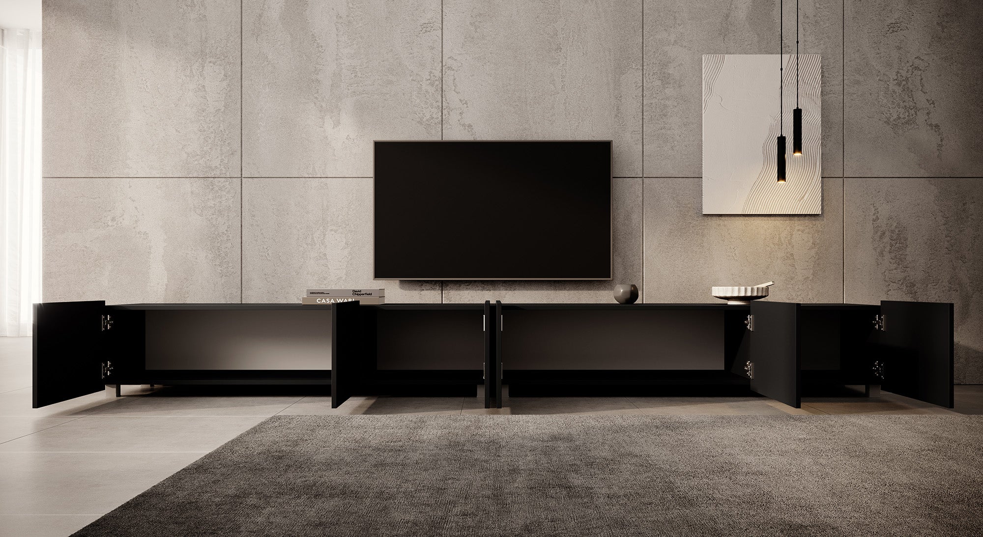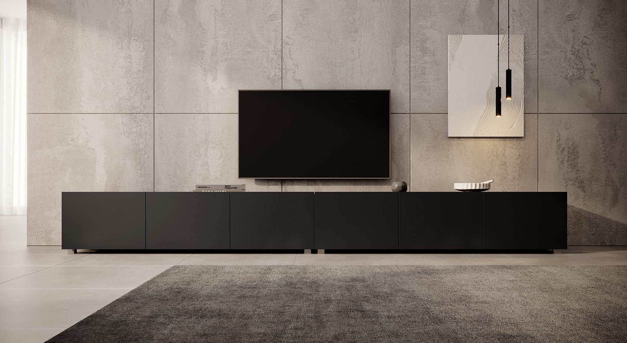 Meubella TV-Meubel Calabas - Mat Zwart - 300 cm