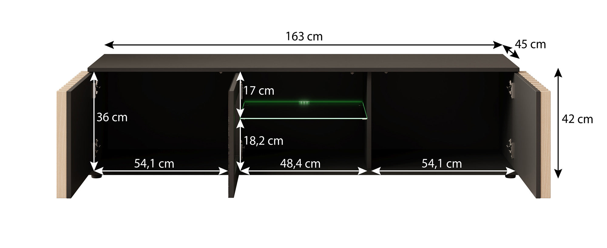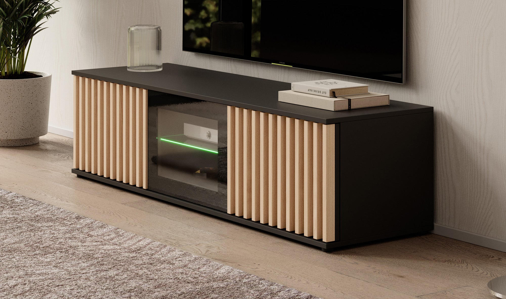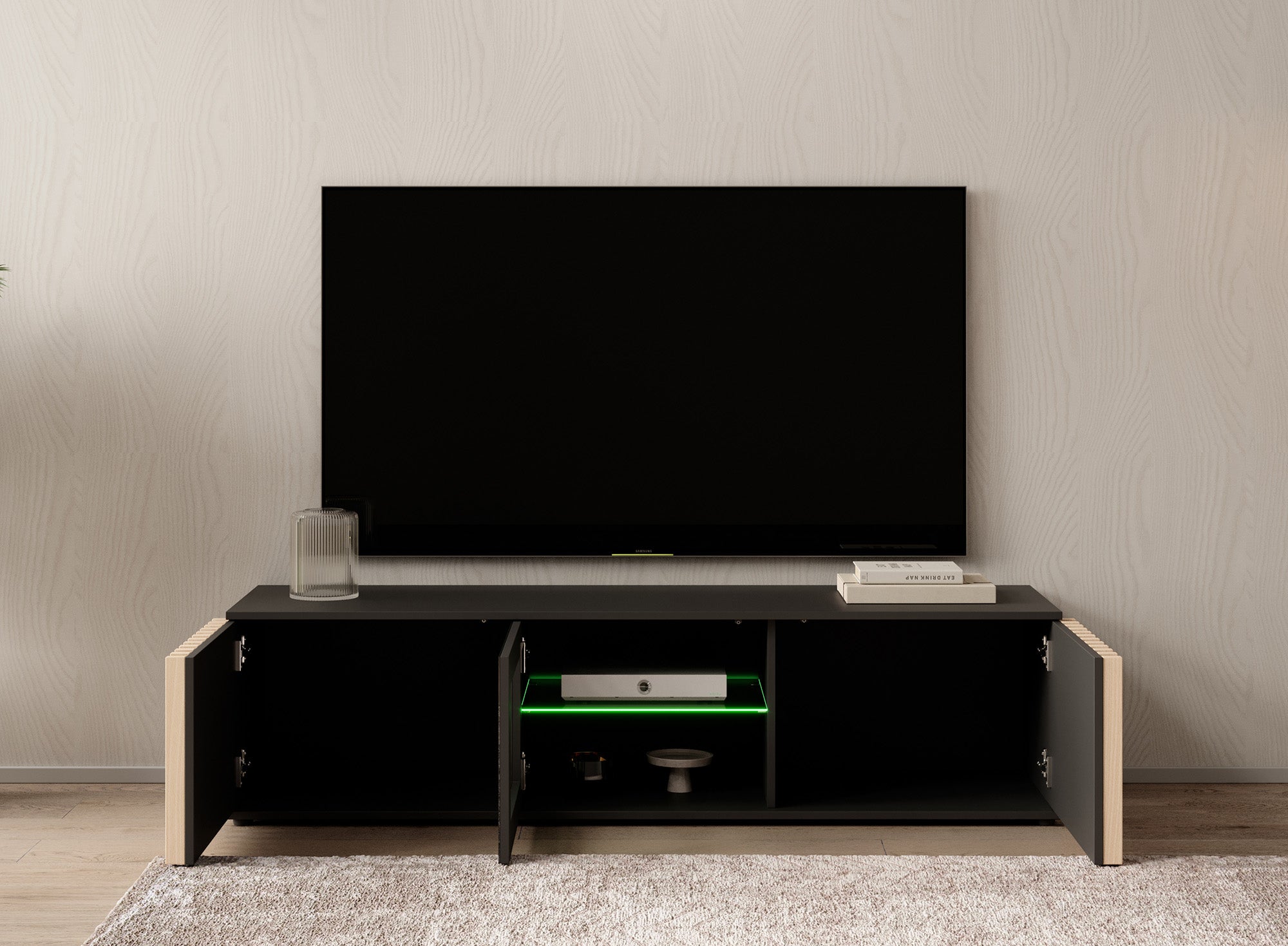 Meubella TV-Meubel Corluka - Zwart - Eiken - 160 cm